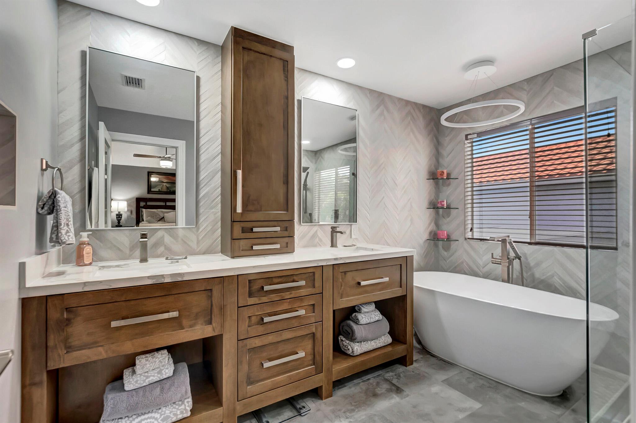 **MOTIVATED SELLER** COMPLETELY RENOVATED! BEAUTIFUL, SECURITY-GATED-ACCESS, 4 BEDROOM, SINGLE FAMILY HOME, FEATURES LARGE ENCLOSED POOL ON A COVETED OVERSIZED CORNER LOT. KITCHEN AND BATHROOMS, BOAST QUARTZITE COUNTERTOPS, NEW CABINETS, HARDWARE & APPLIANCES; AND NEW FLOORING THROUGHOUT - NO CARPETS. ROOF WAS REPLACED IN 2021. OPEN FLOOR-PLAN HAS HIGH VAULTED CEILINGS AND SPACIOUS LIVING, DINING, AND FAMILY ROOMS. HOA INCLUDES, ACTIVE CLUB HOUSE WITH RESORT-STYLE AMENITIES SUCH AS: LARGE HEATED SALTWATER POOL; KIDDIE POOL; SPA; NEWLY REMODELED BASKETBALL COURT; 12-COURT TOP-NOTCH TENNIS FACILITY AND PRO-SHOP; FULL SERVICE FITNESS CENTER WITH A WIDE VARIETY OF DAILY CLASSES; SAUNA & STEAM ROOM; LOCKER ROOMS; SOCIAL CLUB; CHILDREN'S PLAY AREA; GAME ROOM; BUSINESS CENTER AND MUCH. Cont...