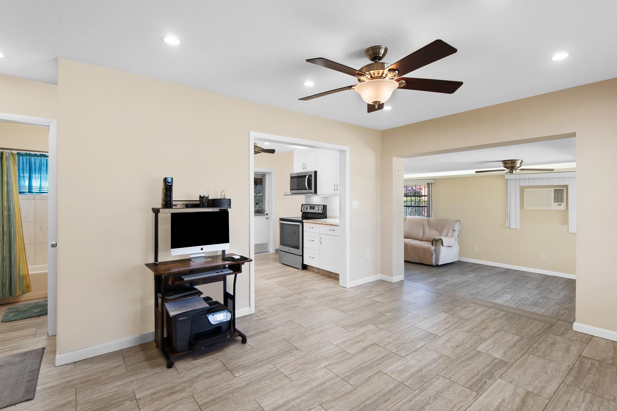 Updated and spotless home in desirable Welwyn Park area with new roof in 2021! Light and bright with newer white kitchen cabinets with soft close doors/drawers. Stainless steel appliances and a front load washer & dryer. Remote water filtration for kitchen. Newer water heater. Beautiful porcelain tile flooring throughout the home. Updated 150amp electrical panel that is generator ready. Updated bathroom with a cast iron tub with safety grab bars. Recessed lighting and hunter fans throughout the home. Relax in your screened patio overlooking a spacious and green fenced yard. 10x10 storage shed with electric. Large concrete driveway can fit 4 cars. Whole house surge protection. Recent City hookup to water and sewer lines. Landscape lighting in front yard and back yard gazebo.