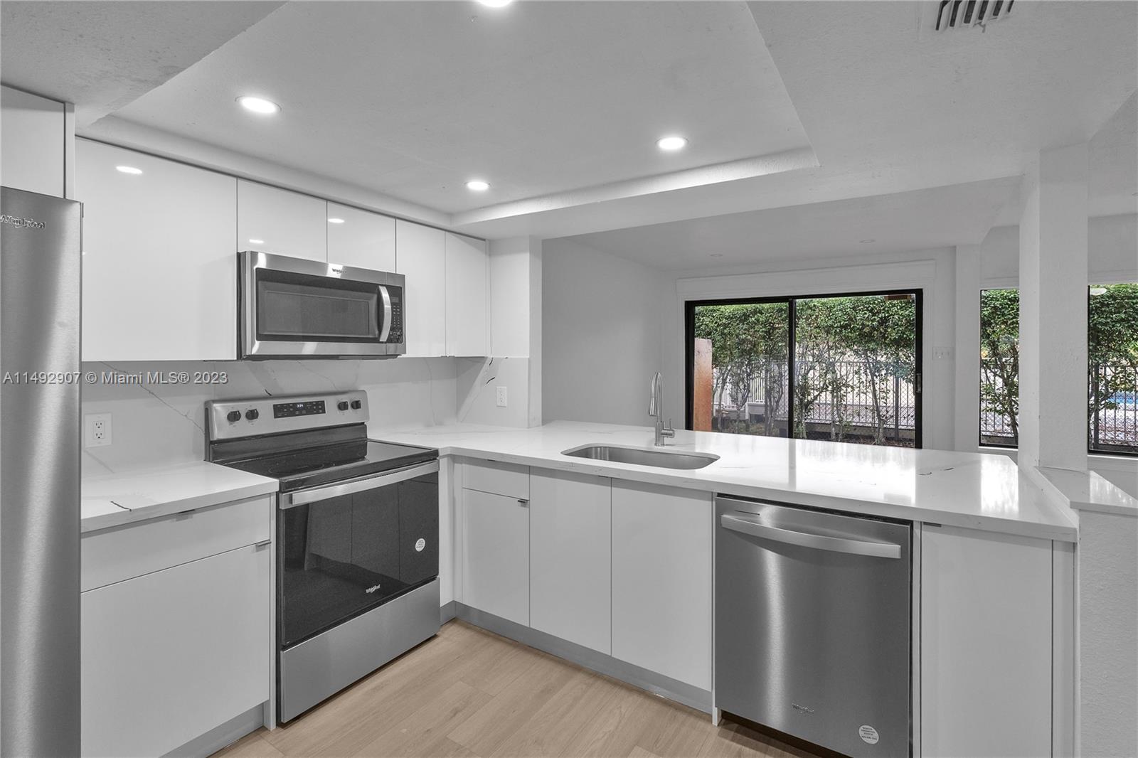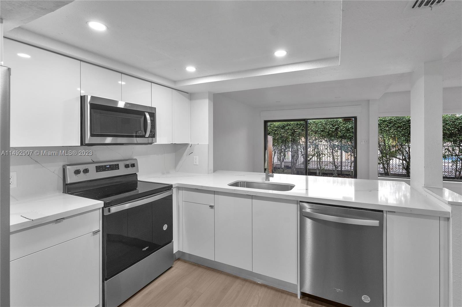 This entire home has been revamped from the kitchen to the bathrooms to the floors! This rarely available townhome in Colonial Lakes Villas of Stirling Pointe features: 2 ample bedrooms with newly remodeled bathrooms ensuite, a den that can be used as a 3rd bedroom, 1 car garage, half bath downstairs, sleek neutral flooring with refinished staircase, beautiful open kitchen with modern cabinetry, quartz countertops and stainless steel appliances. Outdoors, enjoy the cozy open patio and views of the pool. Low association fees! Great location!