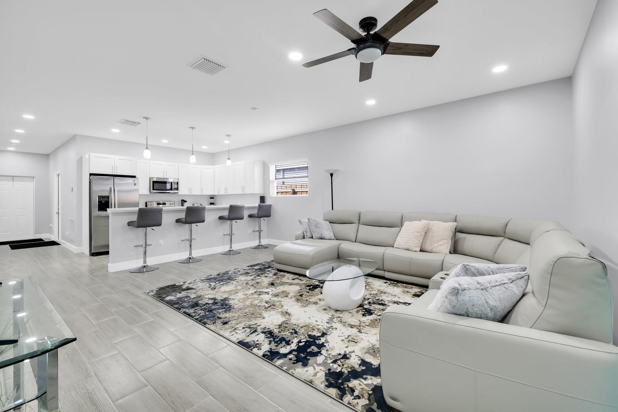 NEW CONSTRUCTION!! Beautiful 3 bedroom 2 bath home and 1 car garage with 9 foot volume ceilings.. Builders upgrades throughout. Features tile flooring throughout, custom all wood cabinets throughout, quartz counters, Architectural impact windows, upgrade lighting and plumbing fixtures, completely fenced yard, Paver driveway and much more. Excellent floorplan with split bedroom design, great room, beautiful kitchen w/stainless appliances, Kitchen ''bartop'' seating for at least 5, recessed lighting. Primary bedroom with private ensuite bathroom and walk in closet with built in cabinetry. Close to Beaches, shopping and restaurant's. Home is located in an Opportunity Zone as well for additional tax benefits.