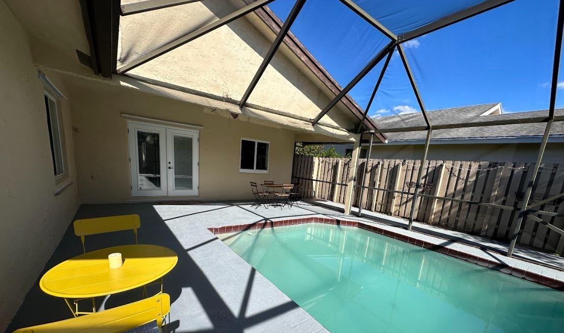 Priced below the market, experience the full renovation of this exquisite gem. Updates abound, including brand-new flooring, renovated bathrooms, new pool pump and plumbing and newer appliances such as a washer and dryer. The home has been freshly painted both inside and outside. Its remarkable floor plan boasts an abundance of windows and vaulted ceilings, along with an updated kitchen featuring a built-in wine cooler. Step outside to enjoy the stunning in-ground pool, enclosed with a screen for your comfort. This home is conveniently located within walking distance of the renowned "Walk of Coral Springs," which features a variety of restaurants, doctor's offices, and retail shops. There are no restrictions!