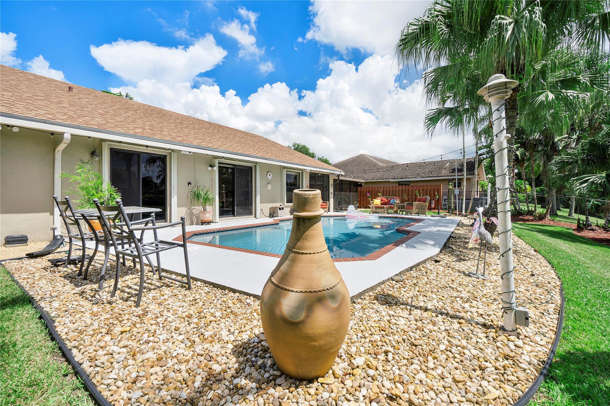 Impeccable 4 bedroom 3 full bathroom home in beloved Country Address - the heart of Cooper City. Home features include a new roof and AC, heated saltwater pool just resurfaced and installed new tiles, serene lake view, lush landscaping, accordion shutters, rich Spanish tile, bright kitchen with stainless appliances and granite counters, and a large, screened patio that allows you to relax or entertain with ease. Ideal location by the park and A+ schools, you can easily walk to Pioneer Middle or the JCC/Posnack, surrounded by abundant dining and shopping options. No HOA. Don’t miss your chance to call this beautiful property home
