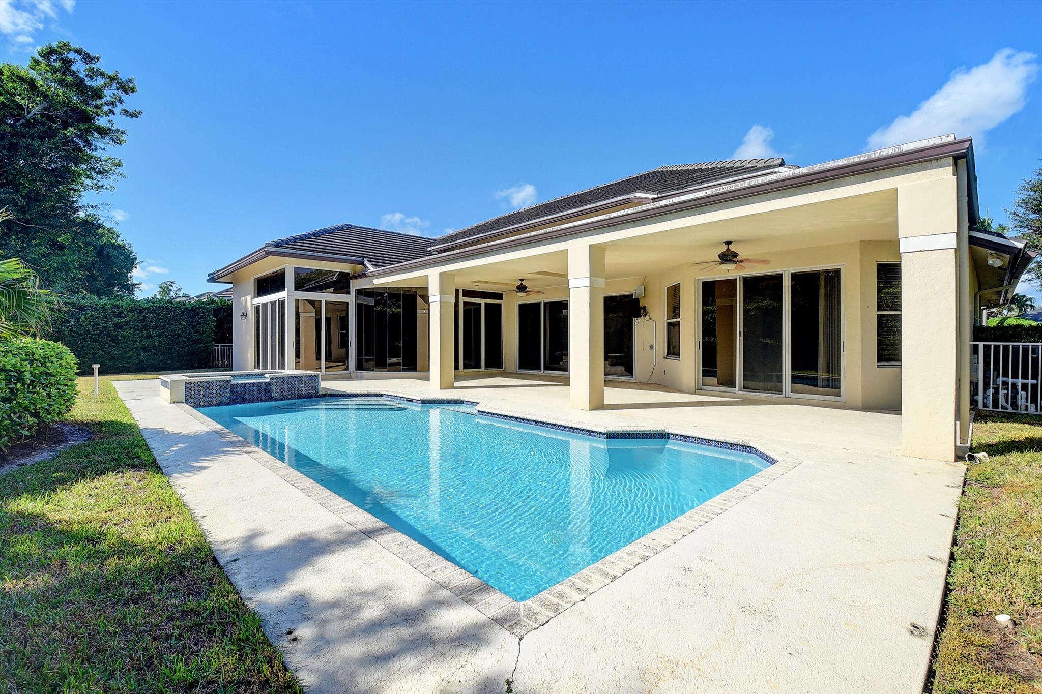 Amazing opportunity to create your own private oasis in popular Woodfield Country Club! Fantastic 5 bedroom layout in this single-story, open floorplan property. The 3900 sq ft design includes a formal living/dining area, huge kitchen with breakfast bar, eat-in dining, and family room which overlooks the private heated pool/spa. New roof 2016 & new AC unit 2023. The amenities at Woodfield Country Club are second to none including world-class golf, swimming oasis, tennis, fine & casual dining, state-of-the art wellness facilities, social activities, kids' club, & much, much more! The Club membership is mandatory. This house is ready for your personal touches and is sold as-is.