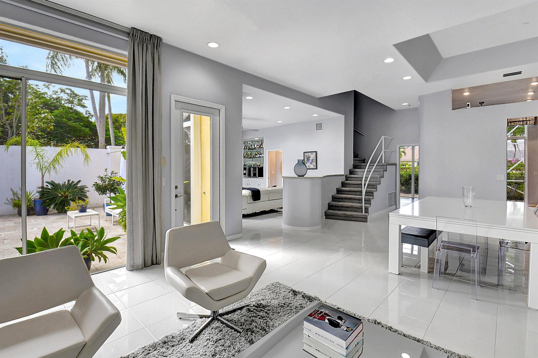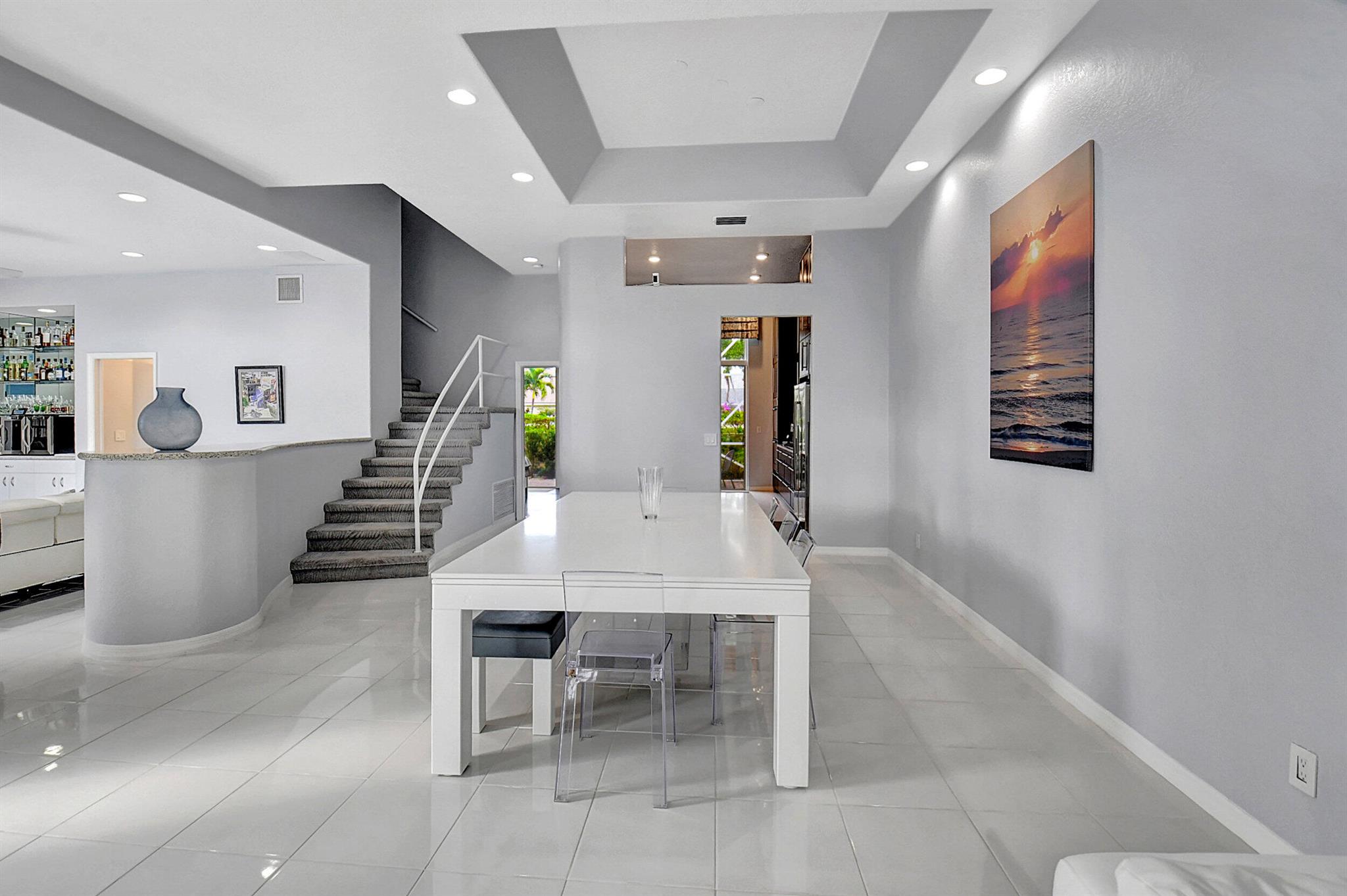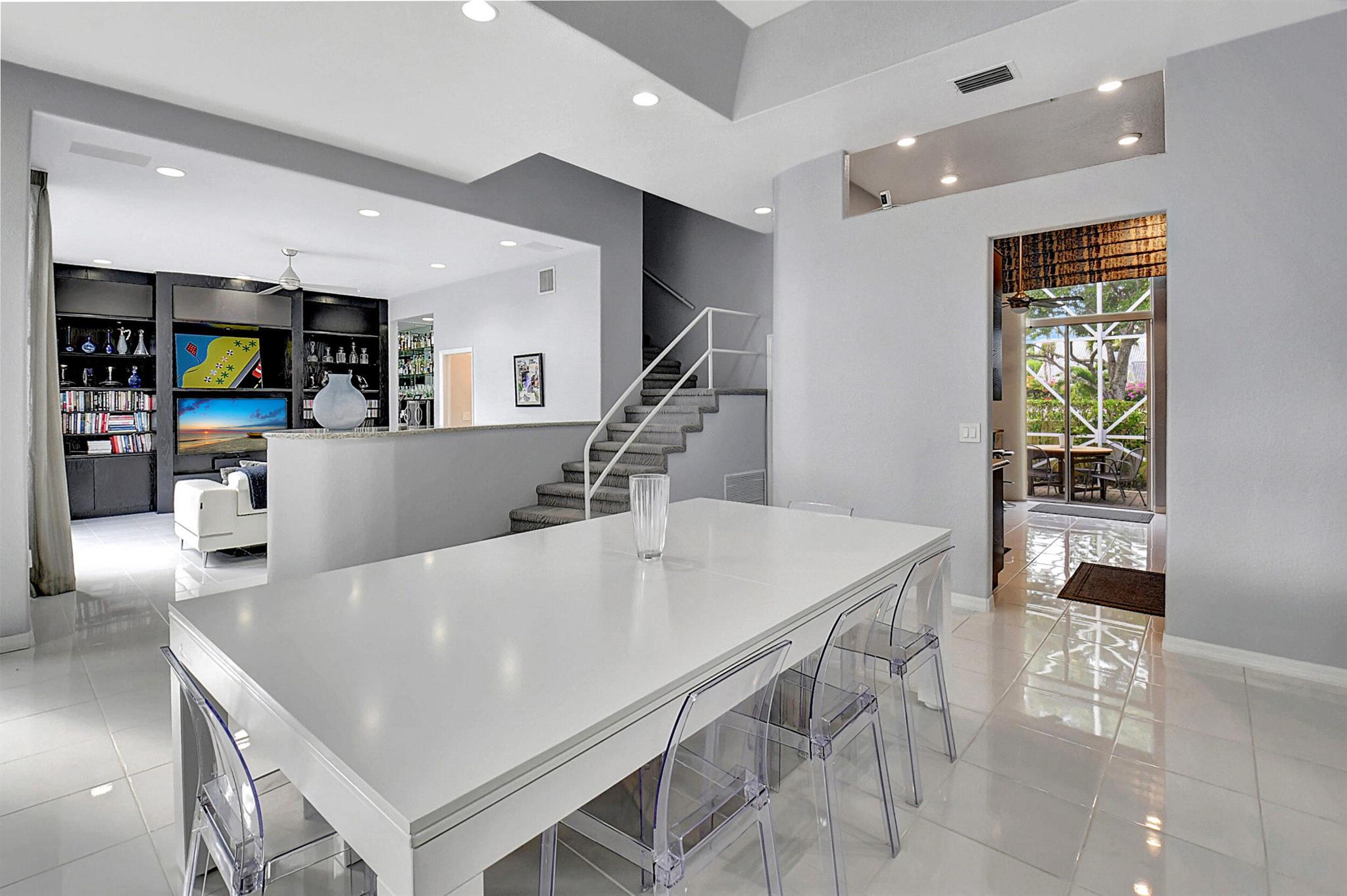 Updated contemporary courtyard home with private pool and end unit location. Very bright living, dining and family room overlooking your pool and patio. Has a gourmet eat in kitchen with Bosch appliances; access to an outdoor screened patio for easy outside dining and grilling. Downstairs bedroom with private bath for guests. Master bedroom is a private second floor suite with a custom closet and large master bath. This is a 2/2.5 unit but can be converted back to a full 3/2.5. Family room can be converted to a bedroom if desired. A customized garage, with new washer, dryer, pull down stairs. Full hurricane shutters for all openings. Pool and spa are salt with automatic cleaner. This home can be sold partially furnished. Beautifully maintained and ready for occupancy. Roof 2007