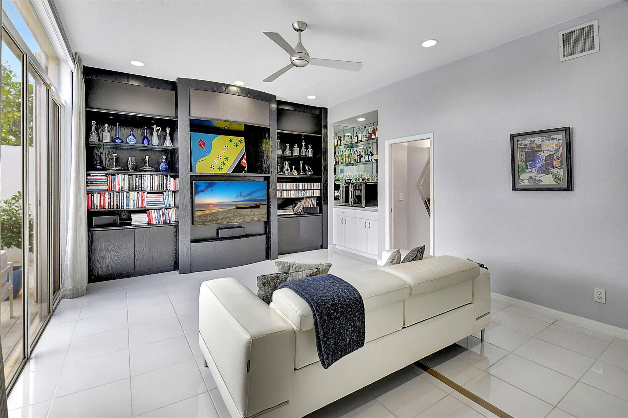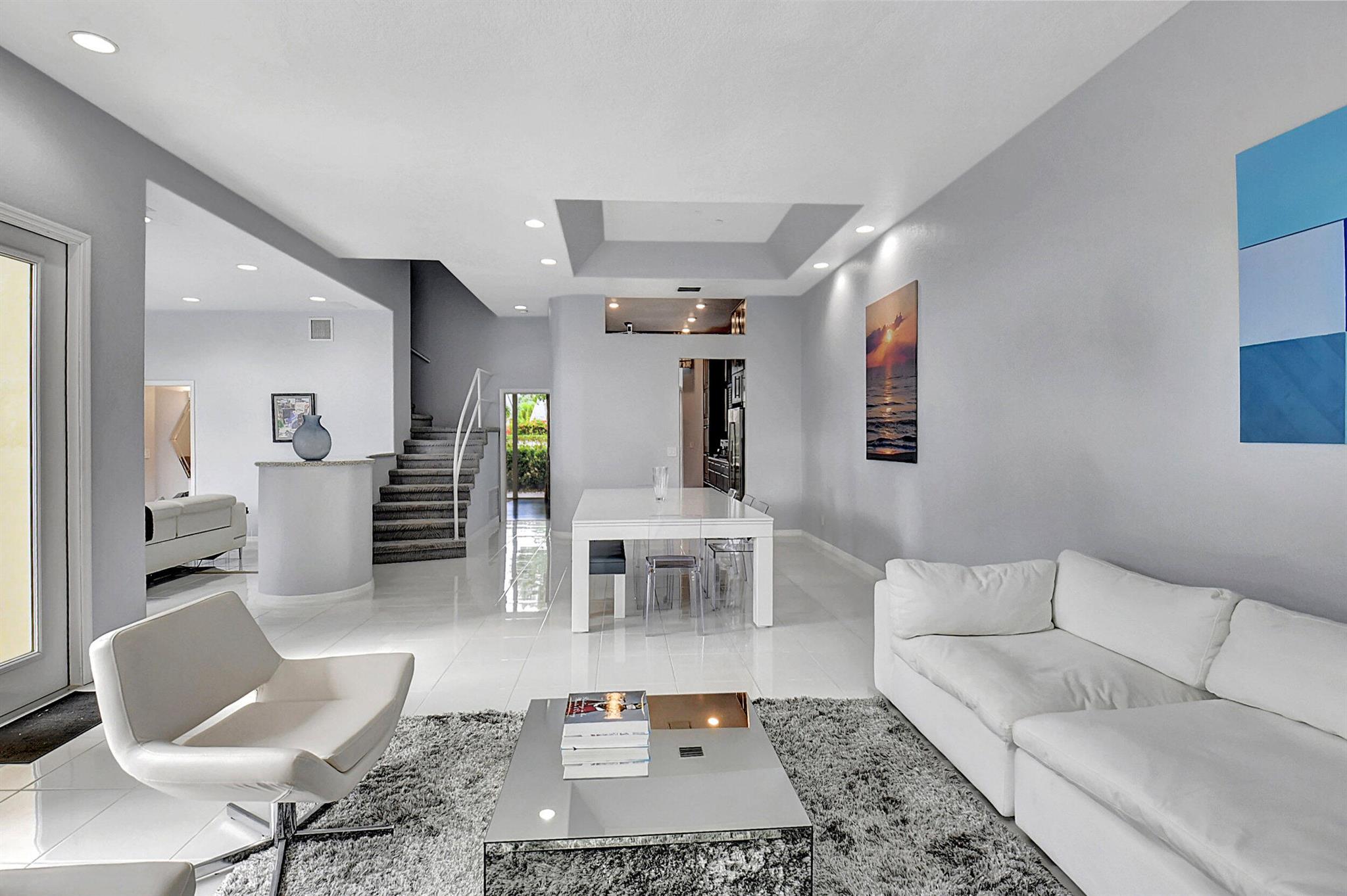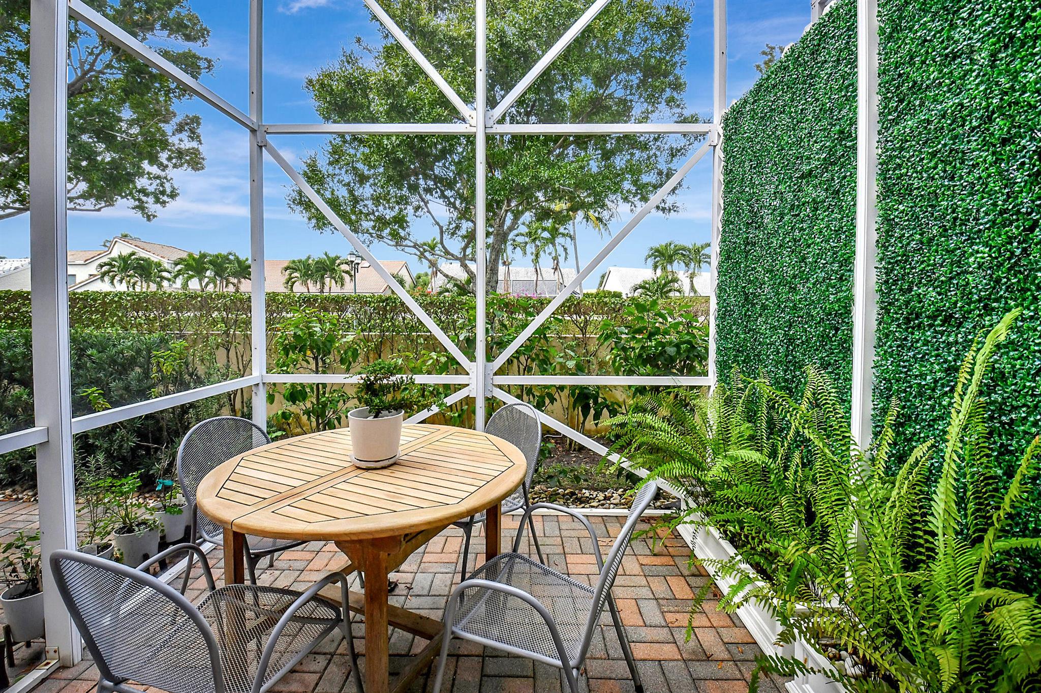Updated contemporary courtyard home with private pool and end unit location. Very bright living, dining and family room overlooking your pool and patio. Has a gourmet eat in kitchen with Bosch appliances; access to an outdoor screened patio for easy outside dining and grilling. Downstairs bedroom with private bath for guests. Master bedroom is a private second floor suite with a custom closet and large master bath. This is a 2/2.5 unit but can be converted back to a full 3/2.5. Family room can be converted to a bedroom if desired. A customized garage, with new washer, dryer, pull down stairs. Full hurricane shutters for all openings. Pool and spa are salt with automatic cleaner. This home can be sold partially furnished. Beautifully maintained and ready for occupancy. Roof 2007