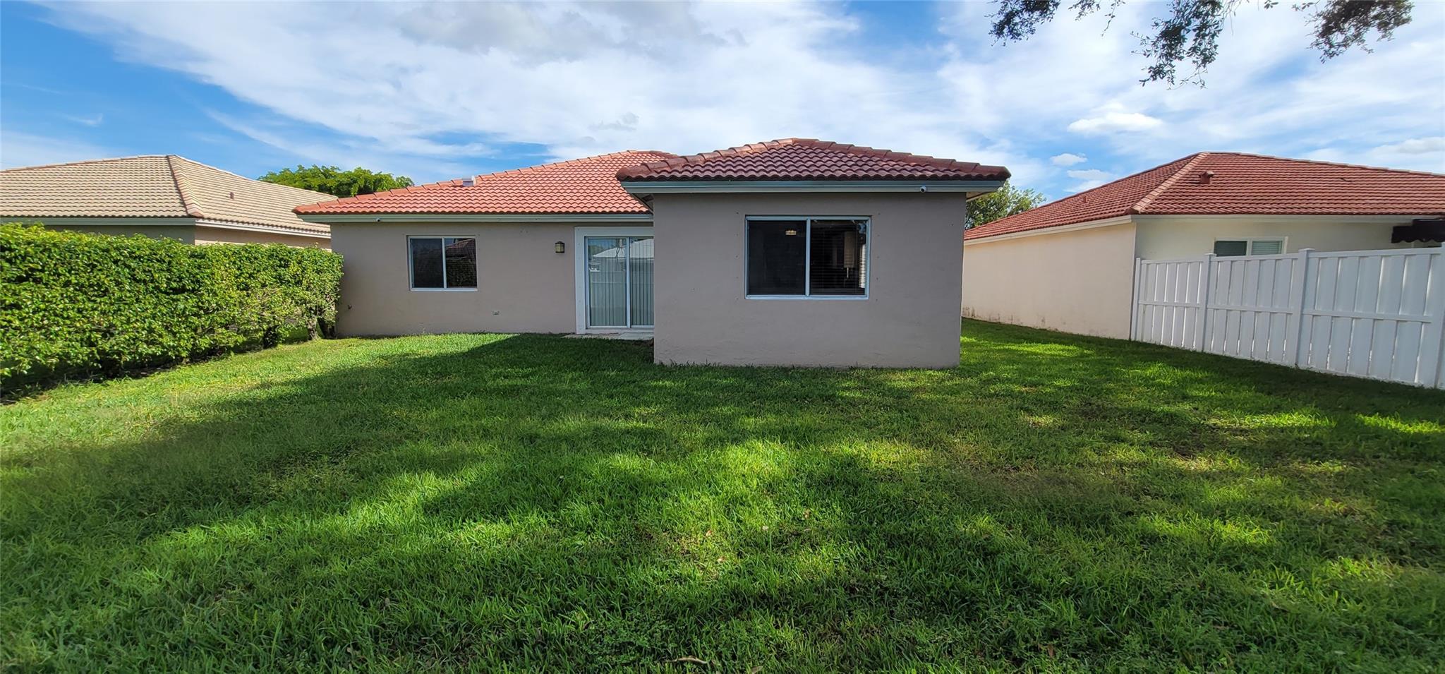 COME, SEE an immaculate, turnkey 3/2 split floor plan built in 1996, gem in the desirable Villages of Renaissance gated community: access to a children’s playground, swimming pool, and tennis courts. This cozy home has a new roof (Nov. 2023), a new modern kitchen (2022) with a quartz countertop and stainless steel appliances, and hurricane shutters on all windows. The den and living room areas lead to a large fenced-in backyard for a future pool or for family entertainment. Also, conveniently located within minutes of Memorial West Hospital, Pembroke Gardens Shopping and Restaurants, Pembroke Pines Mall, Places of Worship, Public, Private, or Charter Schools, and easy access to I-595, I-75, FL-Turnpike, and minutes away from Miami-Dade County. HOA FEE $94.81 Monthly