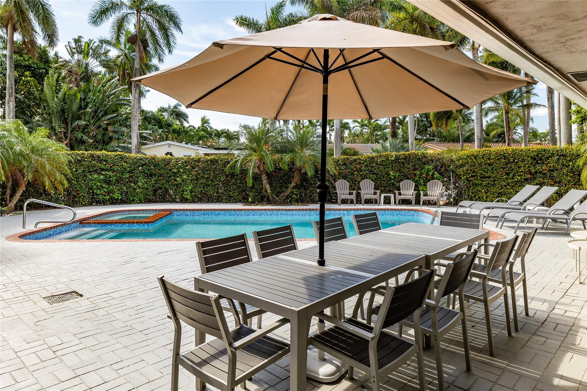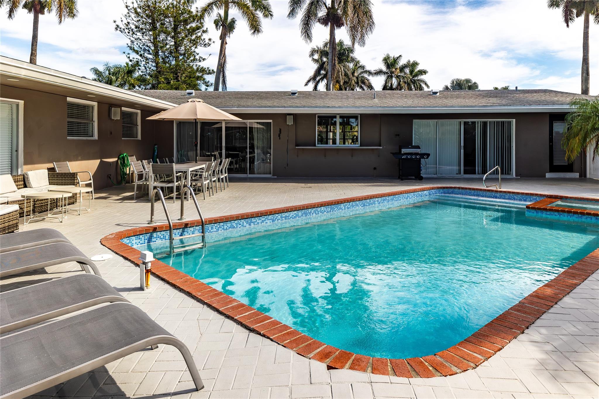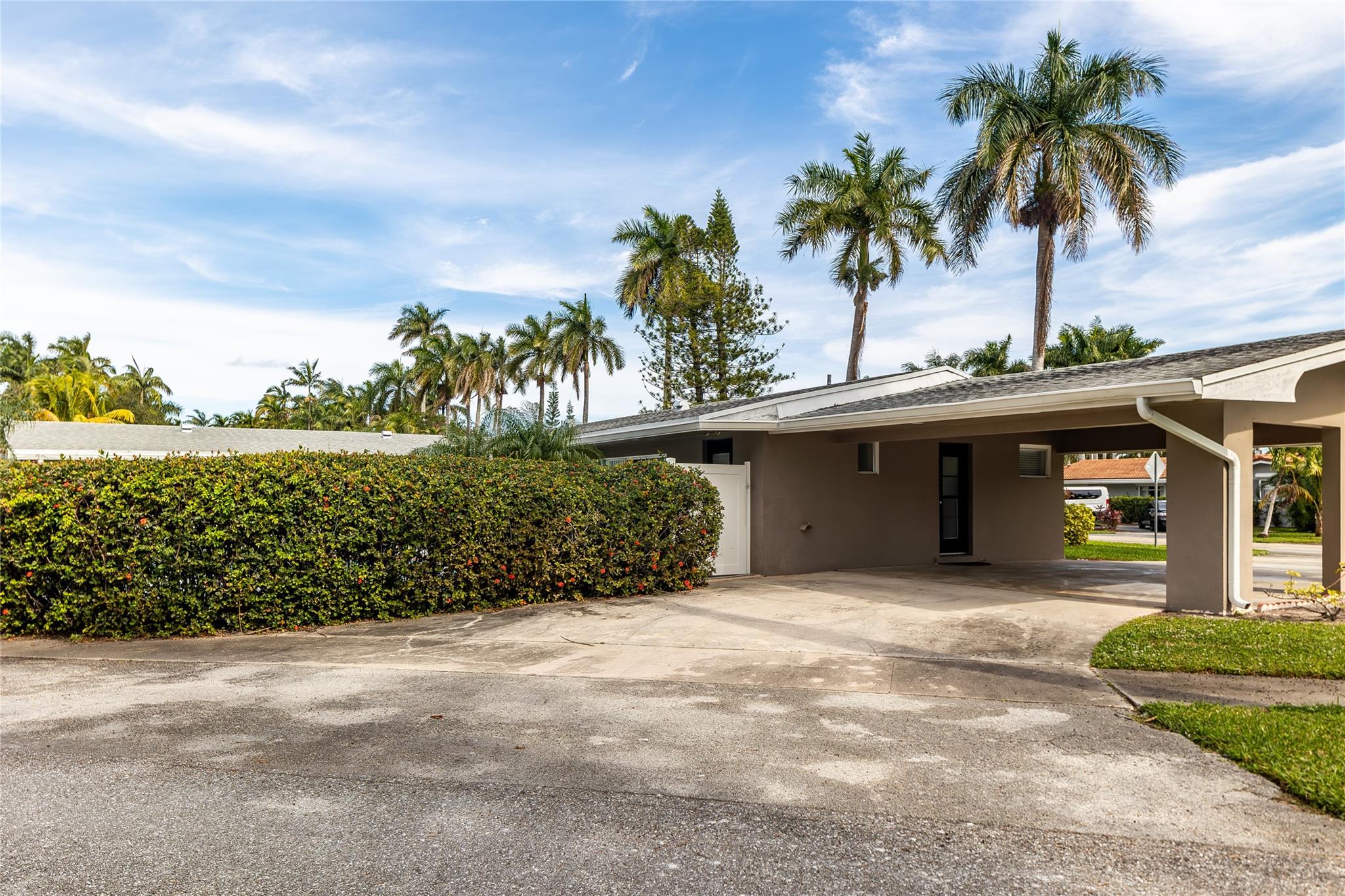 Embrace the essence of Scandinavian design in this inviting corner lot pool home. Clean lines and an open airy ambiance greets you upon arrival. All bedrooms in this home boasts ample space, ensuring a comfortable retreat. Two of them are thoughtfully designed as en suite, which adds a nice privacy. Kitchen is bright with a pass thru window overlooking the large pool. The pool is also accentuated by an expansive deck with plenty of room to entertain your friends and family. This is a perfect blend of style and comfort. Roof is also just a couple of years old. From here walk to golf and parks and you are just minutes away from beach, downtown and airport.