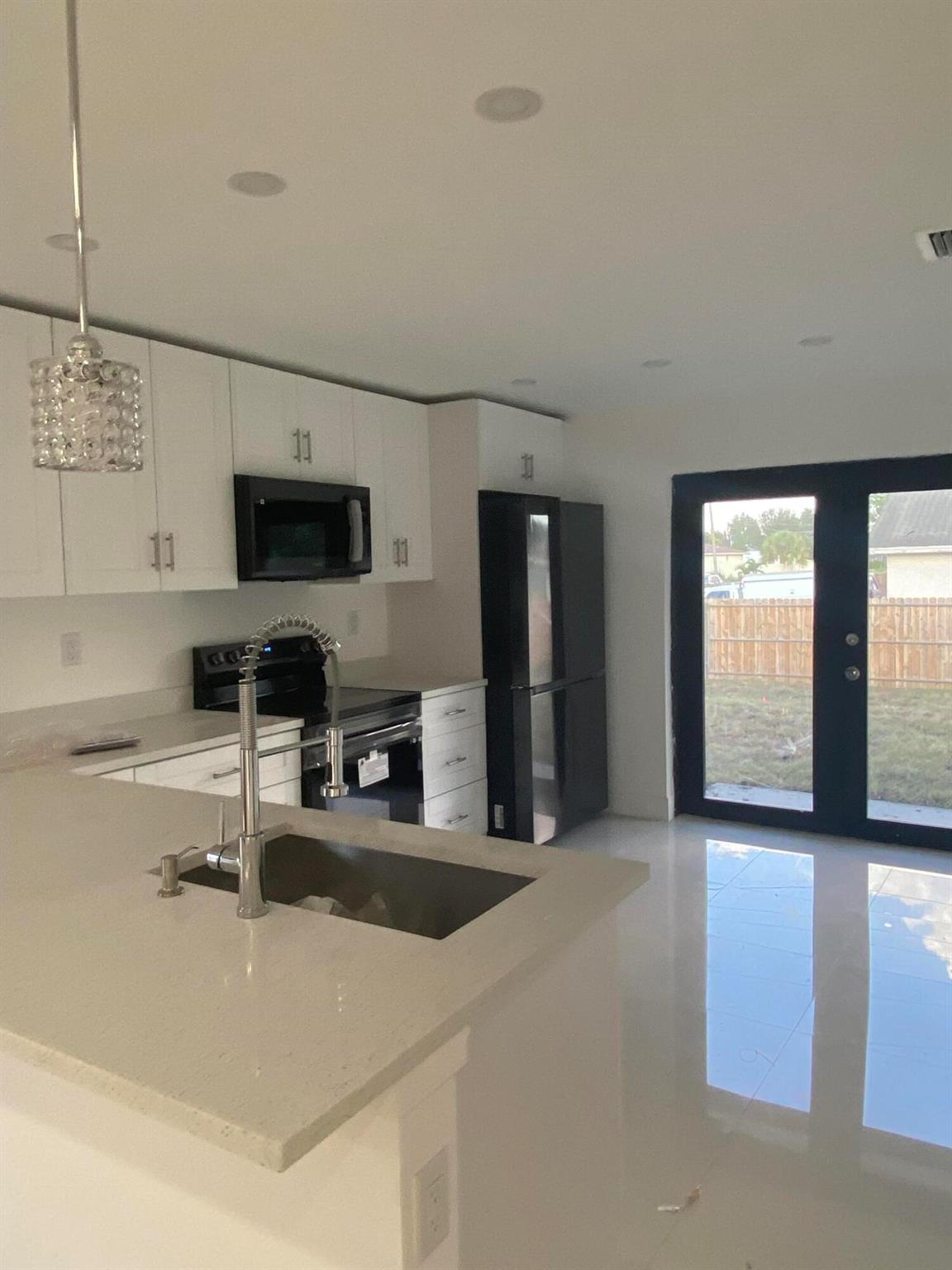 New Construction 3 spacious bedrooms with 2 full bath ceramic tile, granite counters in kitchen and bathrooms, Impact windows and doors, spacious garage with title ready to be set up for extra income. coffered Ceilings, driveway, sprinkle system. be the first one to enjoy this beautiful modern style home.