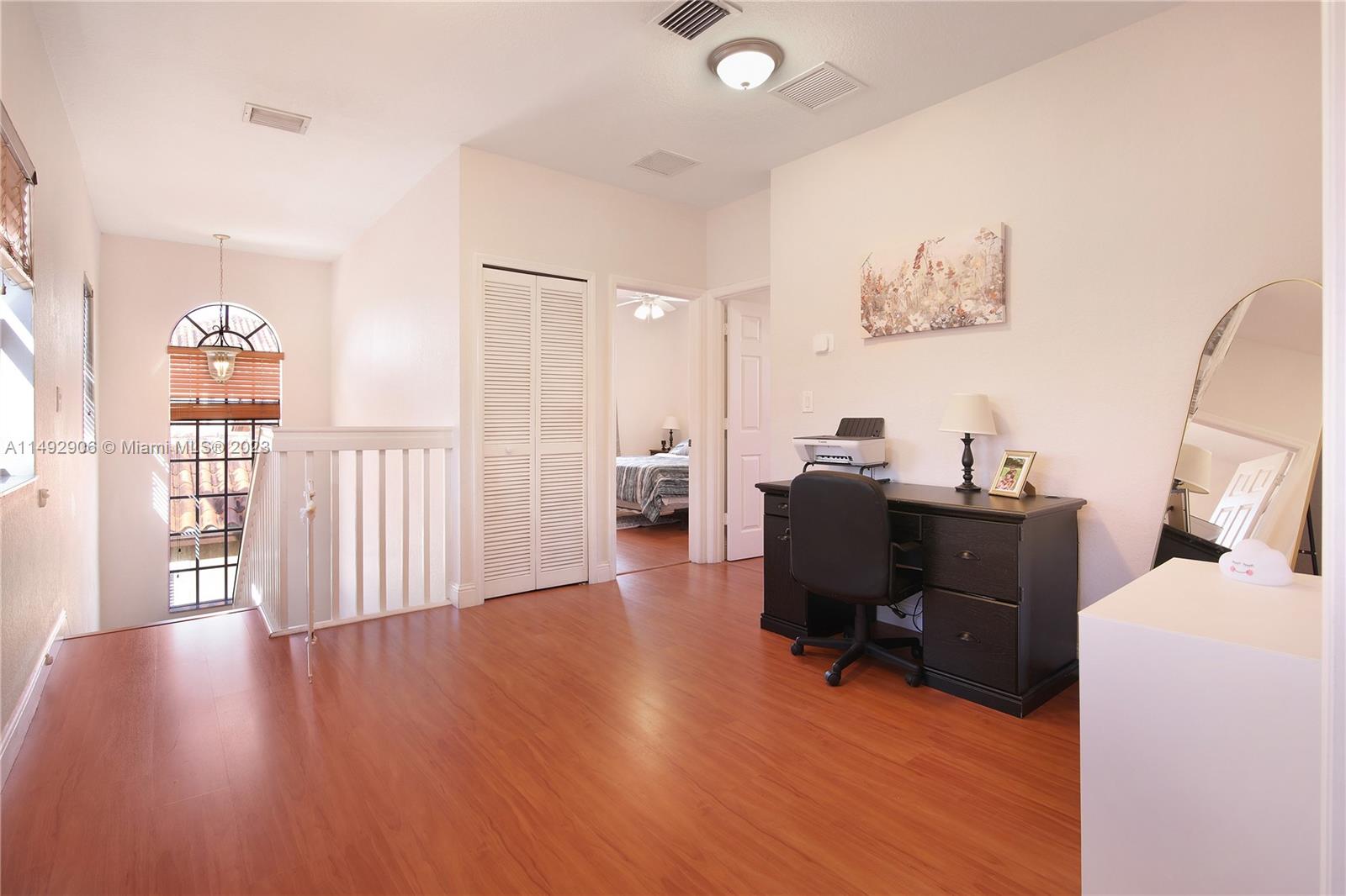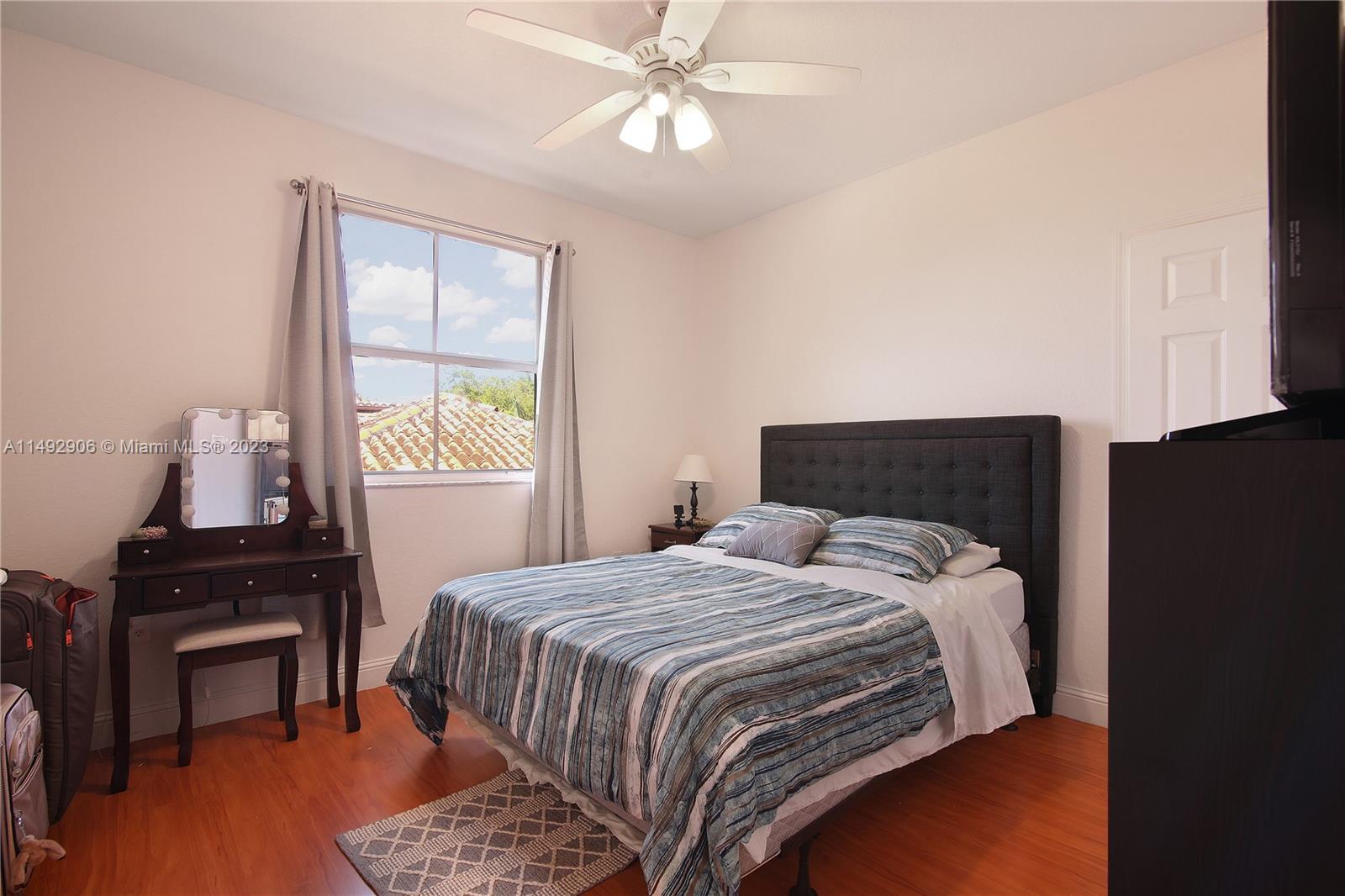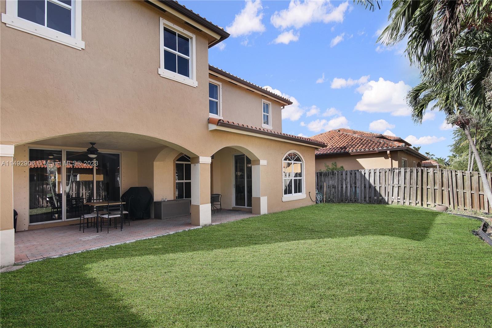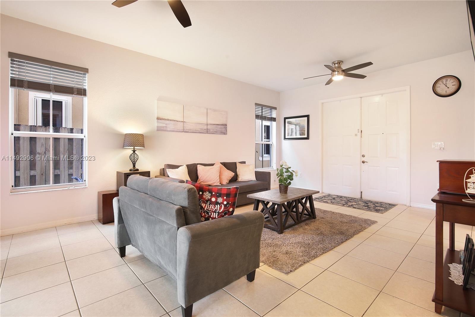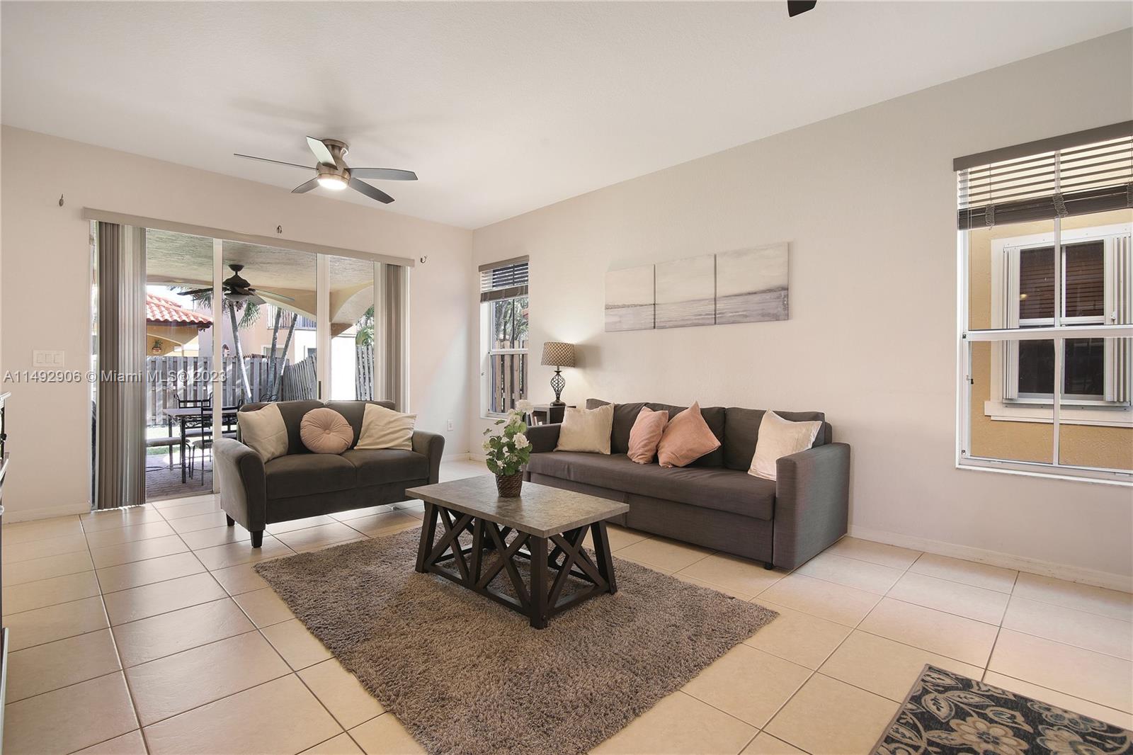 Welcome to a beautifully maintained unit home nestled in the gated community. Enjoy this spacious two-story home featuring 3 bed/2 1/2 baths. Enjoy the tile flooring throughout the 1st floor, open kitchen with stainless steal appliances and granite counter top, dining/living room with high ceilings and large windows welcome plenty of natural light. The primary bedroom is conveniently located on the 2nd floor with a beautiful open balcony, main bathroom is equipped with a shower and a separate tub. This house has plenty of space for the entire family. A two-car attached garage is also included, along with hurricane shutters for added security. Come see it for yourself and schedule a showing today!