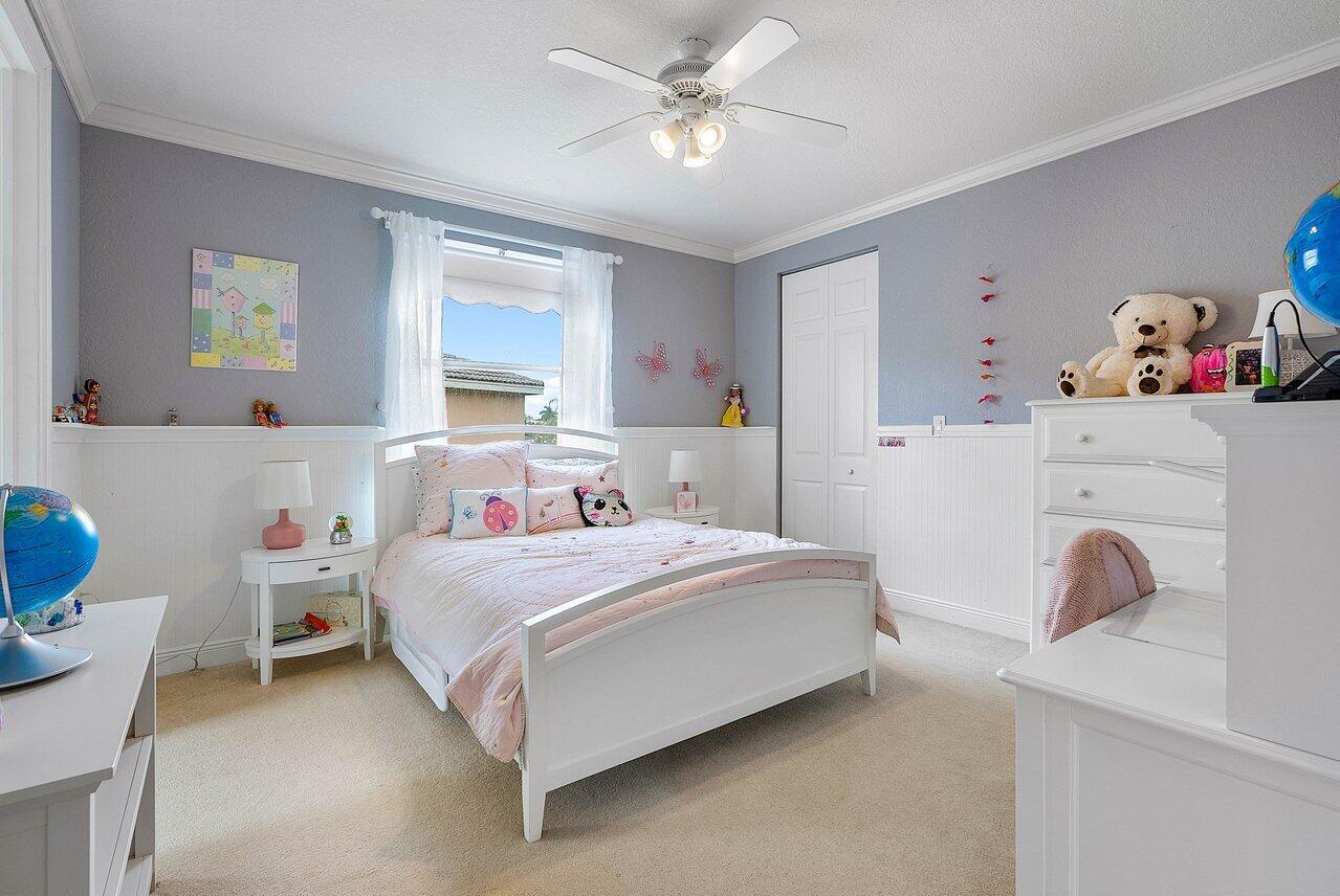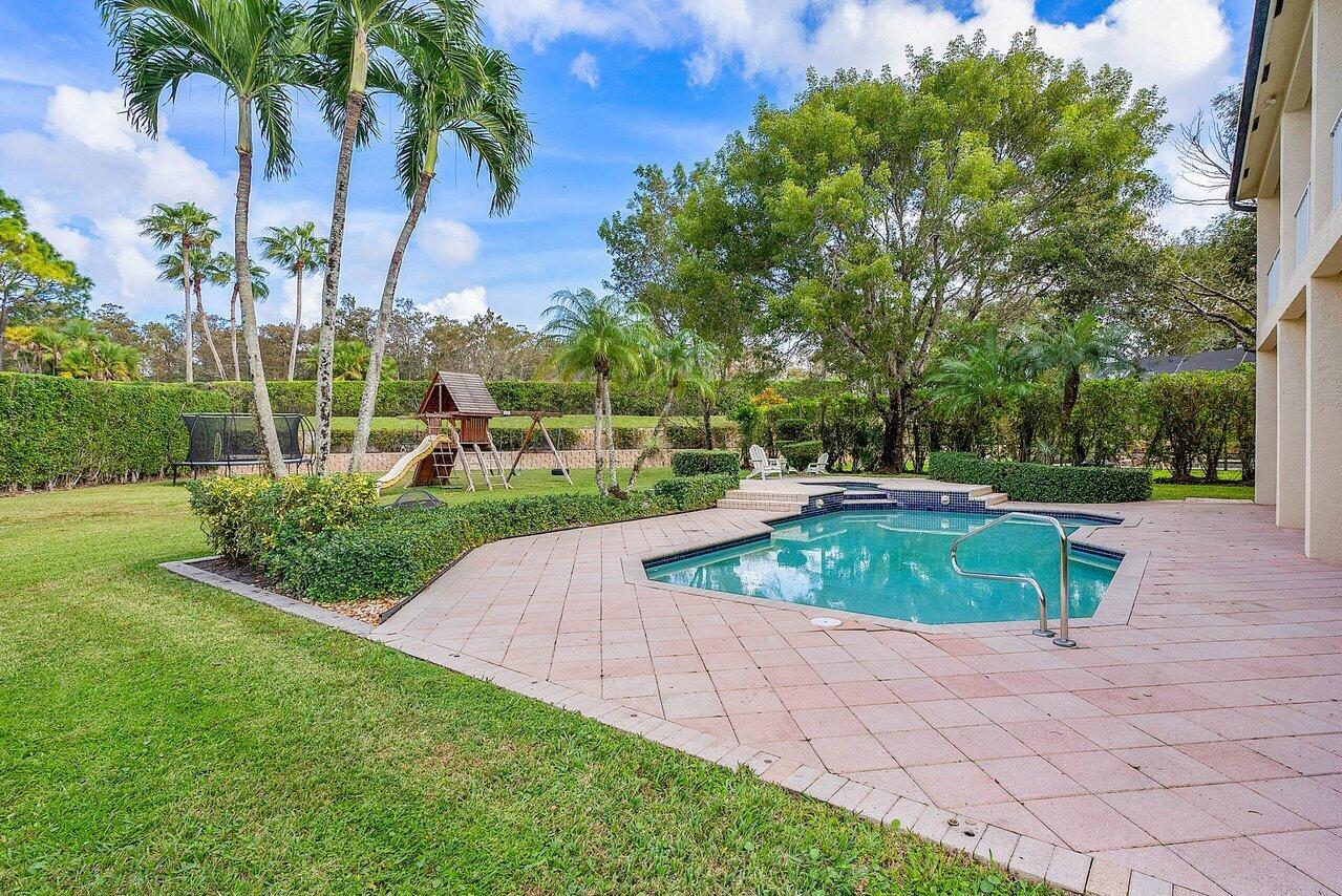 This palatial 5 BR/4BTH pool home with a 3 car garage is on one of the largest(1/3+ acre) and best pie shaped lots in Saturnia. Residence has an open living concept, pristine marble floors and a large gourmet kitchen with stainless steel appliances, granite countertops and backsplash, under counter lighting, custom hardware and a whole house water purifying system. The sweeping staircase of wood ascends to a landing where the Primary and 3 BR are located. The Primary has a spacious bath & separate marble shower. First floor features a guest BR. An open pool with raised spa and waterfall, 10 x 50 covered porch with brick pavers and expansive yard highlight the potential for outdoor entertaining. Close to Boca's best parks and A rated schools.