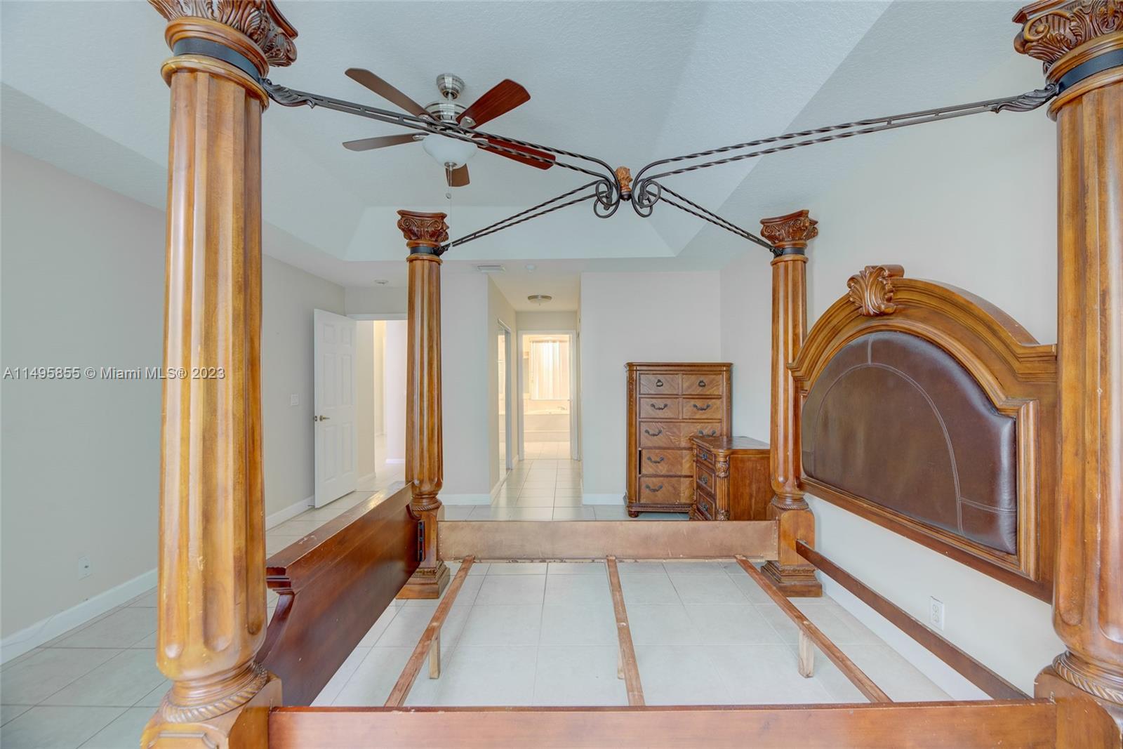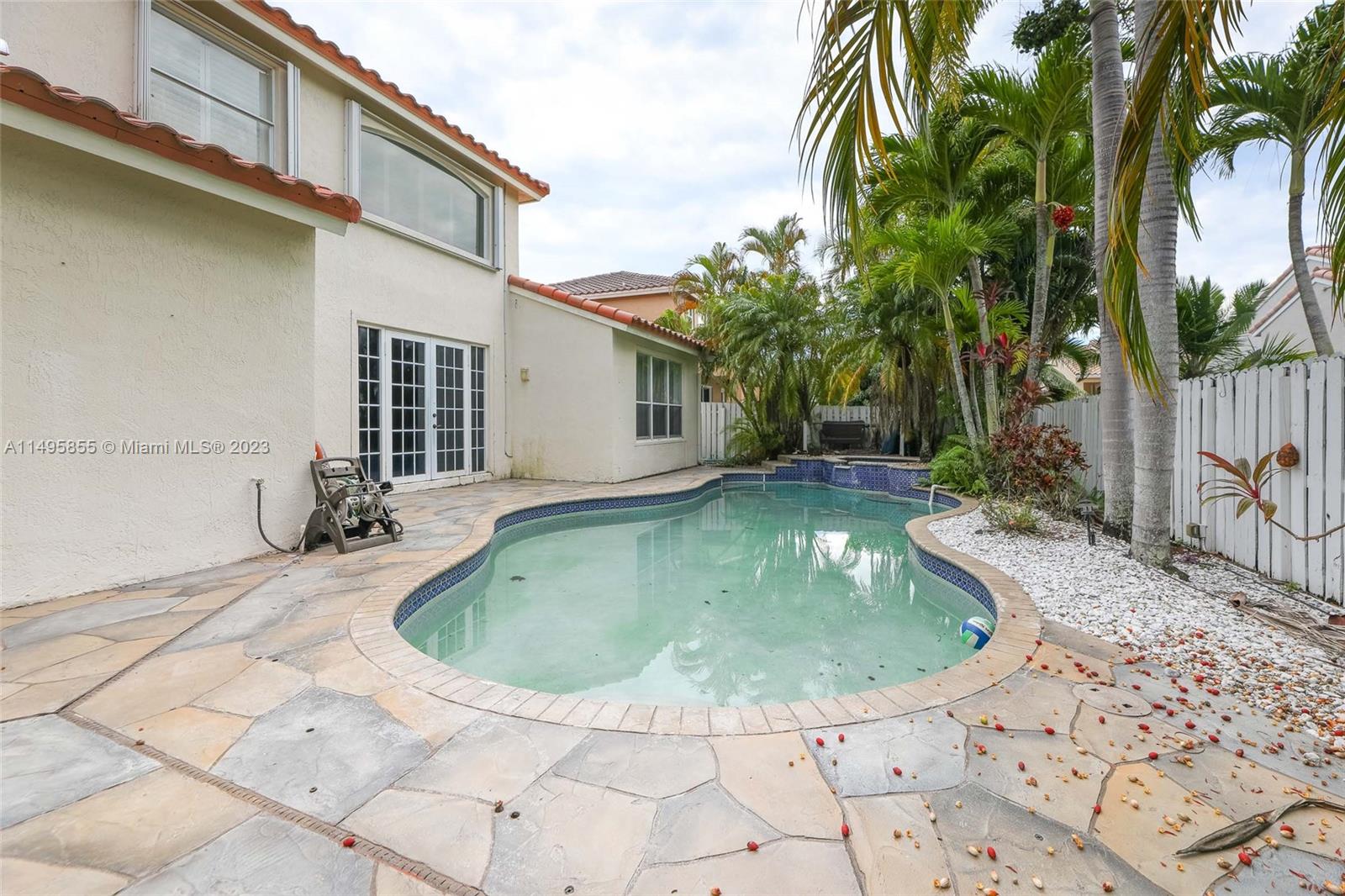 Priced to Sell!! Step into unparalleled luxury with this exquisite 5 Bedroom 4.5 Bath residence featuring two master bedrooms, an expansive family room, and a gourmet kitchen adorned with granite countertops and an island. The allure extends outdoors to a private pool and jacuzzi, creating the perfect setting for relaxation. Enhanced security is ensured with accordion shutters on the second floor. Located in a gated community offering a pool, tennis court, exercise room, and clubhouse, this home isn't just a residence—it's a lifestyle. Nestled in a sought-after area with top-notch schools, it epitomizes the perfect blend of sophistication and functionality. Your dream home awaits!