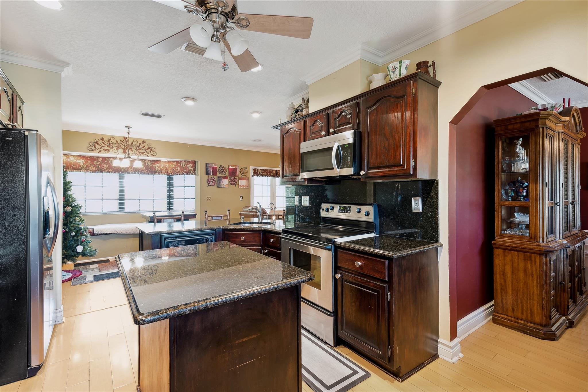 One of a kind estate nestled on a builders acre in the heart of West Davie. As you pull up to the home you see the pride of ownership. This home will take your breath away. Brick covers the front of the home, the front porch & the breeze way between the garage & the home. You have a 3 way split, primary suite on 1st floor, 2 walk-in closets large bathrm & sitting area. Other side of home could be in-law quarters w/brand new bathrm. Wood burning fireplace. First floor & stairs laminated wood. Kitchen has wood cabinets, granite counters & island w/ample cabinets. Two new A/C units, roof 4yrs new, & new well pump & water system. Impact windows upstairs & metal slats downstairs. Upstairs has 2 large bedrms, 22X14 w/bathrm between. Bring your RV & boat. All A schools. Close to all major hwys.