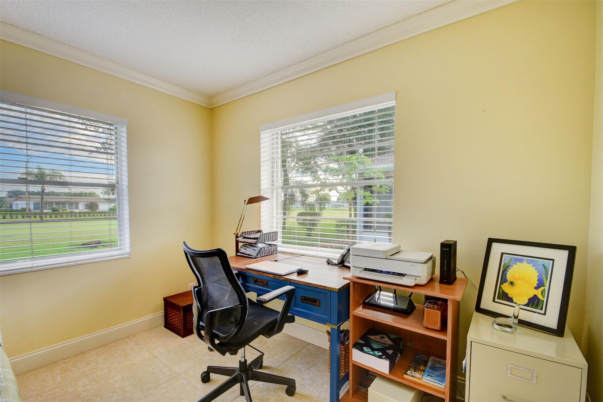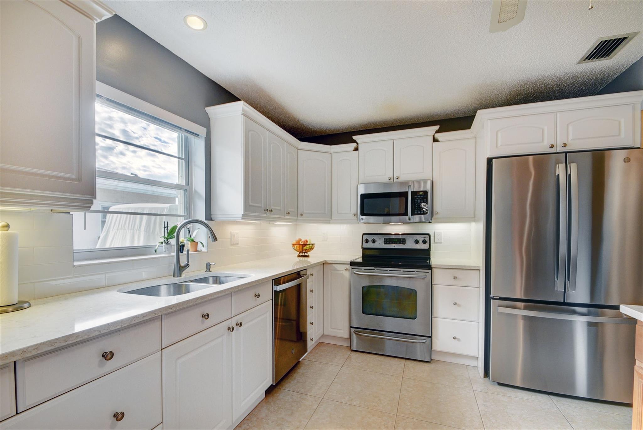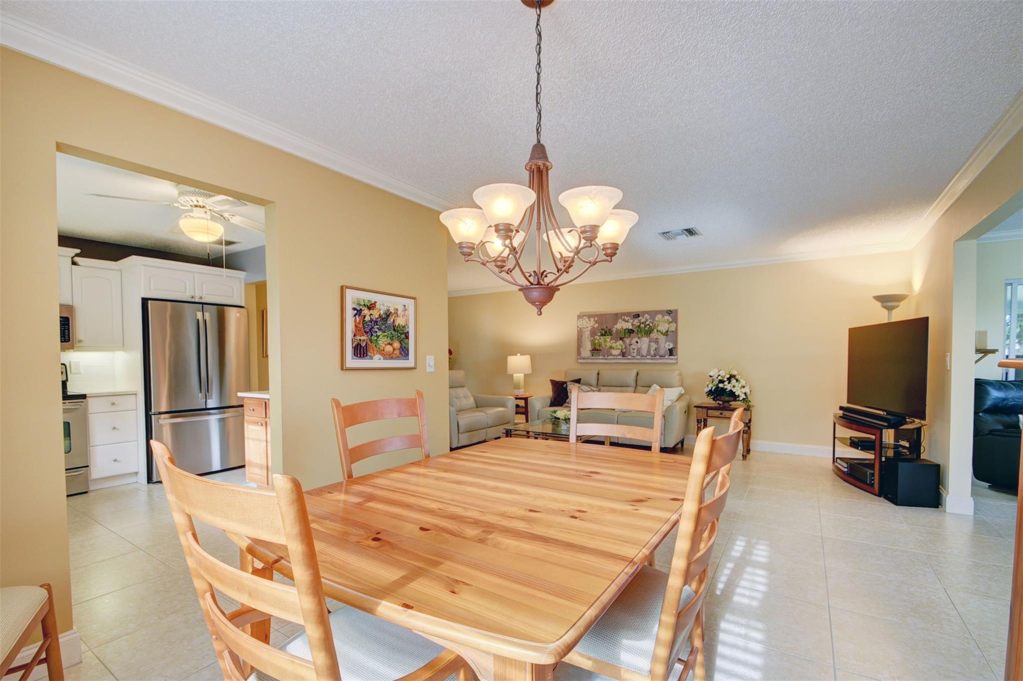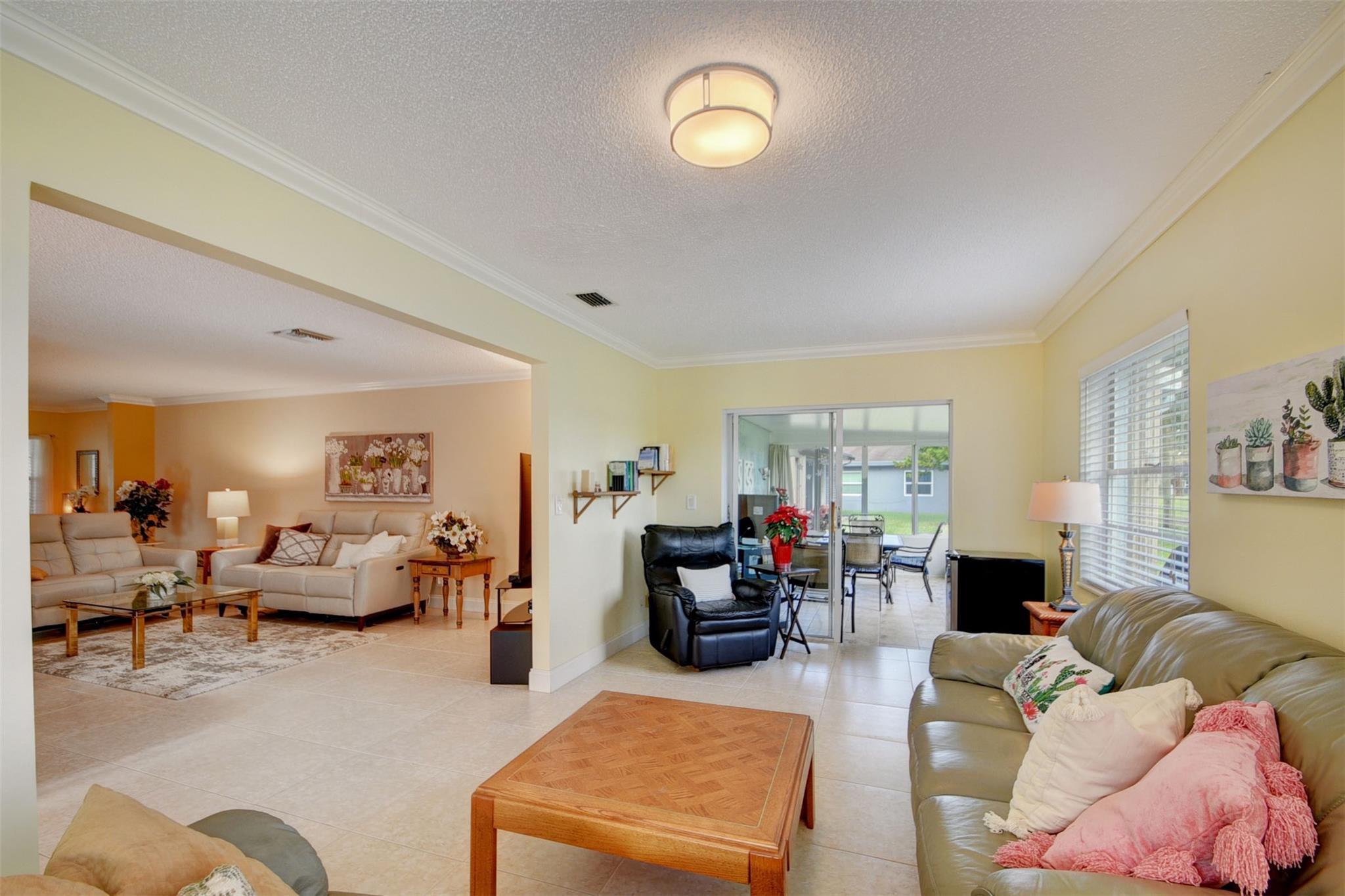 Charming 2 beds, 2 baths 1 car garage house on the Golf. Updated kitchen. White cabinets, tile backsplash, stainless appliances. quartz counter tops. Lots of cabinets & pantry for extra storage. Spacious open floor plan. Bright with lots of natural light. Tile flooring & wood in master bedroom. Spacious mater bedroom w/ lots of closet & updated bathroom w/ tiled shower. Large enclosed Florida room overlook a relaxing & entertaining Golf views. Sold furnished. NEW roof coming in 2024. A/C 2023. Water heater 2021. Accordion Shutters. Active 55+ community, offer many activities & Amenities. Fitness center, heated pool, Clubhouse, Billiard & more. PLAY GOLD FOR FREE! Ride your Golf Cart throughout the community. Gated w/ security patrol. Great location minutes to shopping & restaurants.