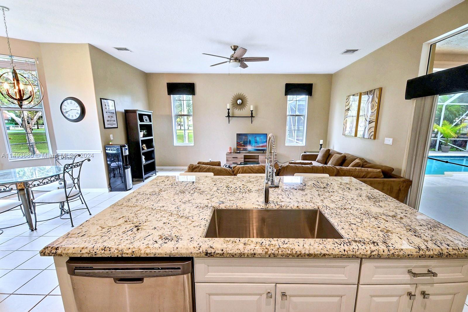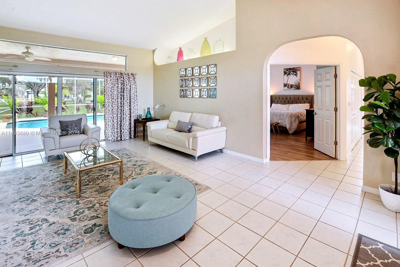 SET AMID A SPRAWLING 35,149 SQ FT LOT IN COVETED COOPER CITY, SITS THIS LOVELY POOL HOME W SERENE POND. ELONGATED DRIVEWAY LEADS TO THE ELEGANT DOUBLE DOOR ENTRY WHICH WELCOMES TO OPEN LIVING AREAS ACCENTUATED BY VAULTED CEILINGS. GORGEOUS KITCHEN FEATURES GRANITE COUNTERS, WINE FRIDGE & STAINLESS STEEL APPLIANCES. WONDERFUL LAYOUT FOR ENTERTAINING, ALL SOCIAL AREAS OPEN TO THE PATIO, POOL, AND BEAUTIFUL GROUNDS. A SPACIOUS PRIMARY SUITE OFFERS PRIVATE ACCESS TO THE POOL & PATIO AND LARGE WALK-IN CLOSET. EN-SUITE CABANA BATH HAS A DOUBLE VANITY & SEPARATE TUB & SHOWER. RELAX POOLSIDE & ENJOY A LEISURELY STROLL DOWN TO THE POND THROUGH THE WELL MAINTAINED GROUNDS. NEW ROOF 2023. ENJOY THE CONVENIENCE OF LARGE DEDICATED LAUNDRY ROOM W ADDITIONAL STORAGE. ZONED COOPER CITY SCHOOLS, NO HOA