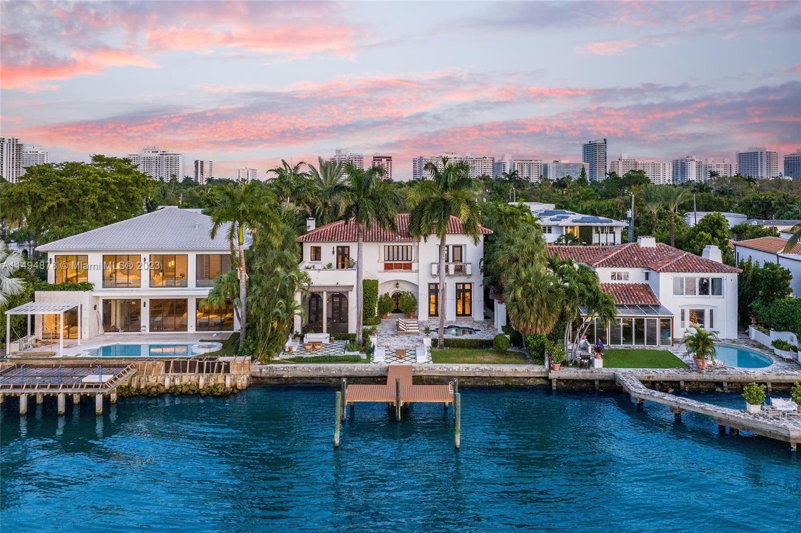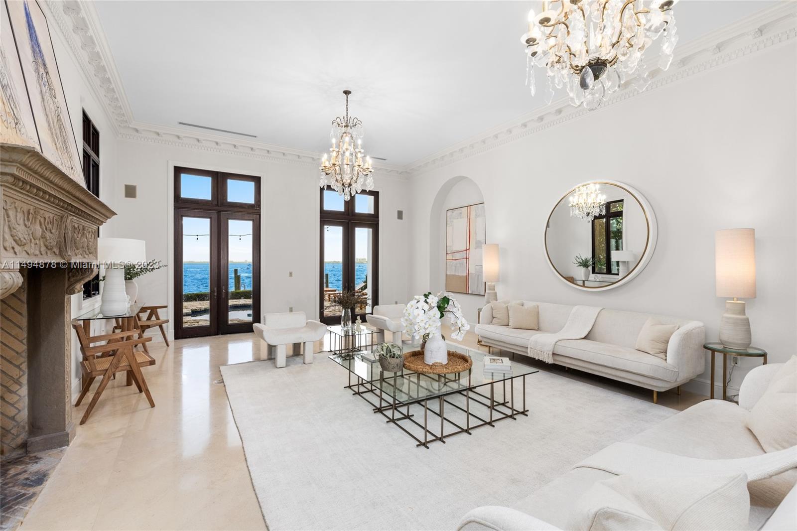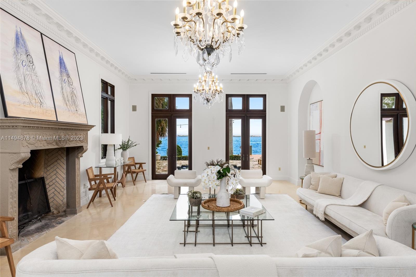 Enjoy living in this exquisite waterfront estate on prestigious N Bay Rd. A picturesque courtyard greets you as you enter this captivating residence. Large stained-glass windows bring in an abundance of natural light with high ceilings and sparkling views of the bay. Exuding charm with its classic architectural elements, surrounded by the serenity of the water's edge the home boasts 75 ft of prime waterfrontage, beautiful stone and wood floors, an architecturally stunning Victorian spiral staircase with soaring ceilings and a spacious primary suite overlooking the water. The outdoors feature a plunge pool and elegant loggia, the perfect setting for Miami’s best sunsets. A separate guest house with two bedrooms overlooks the stunning courtyard.