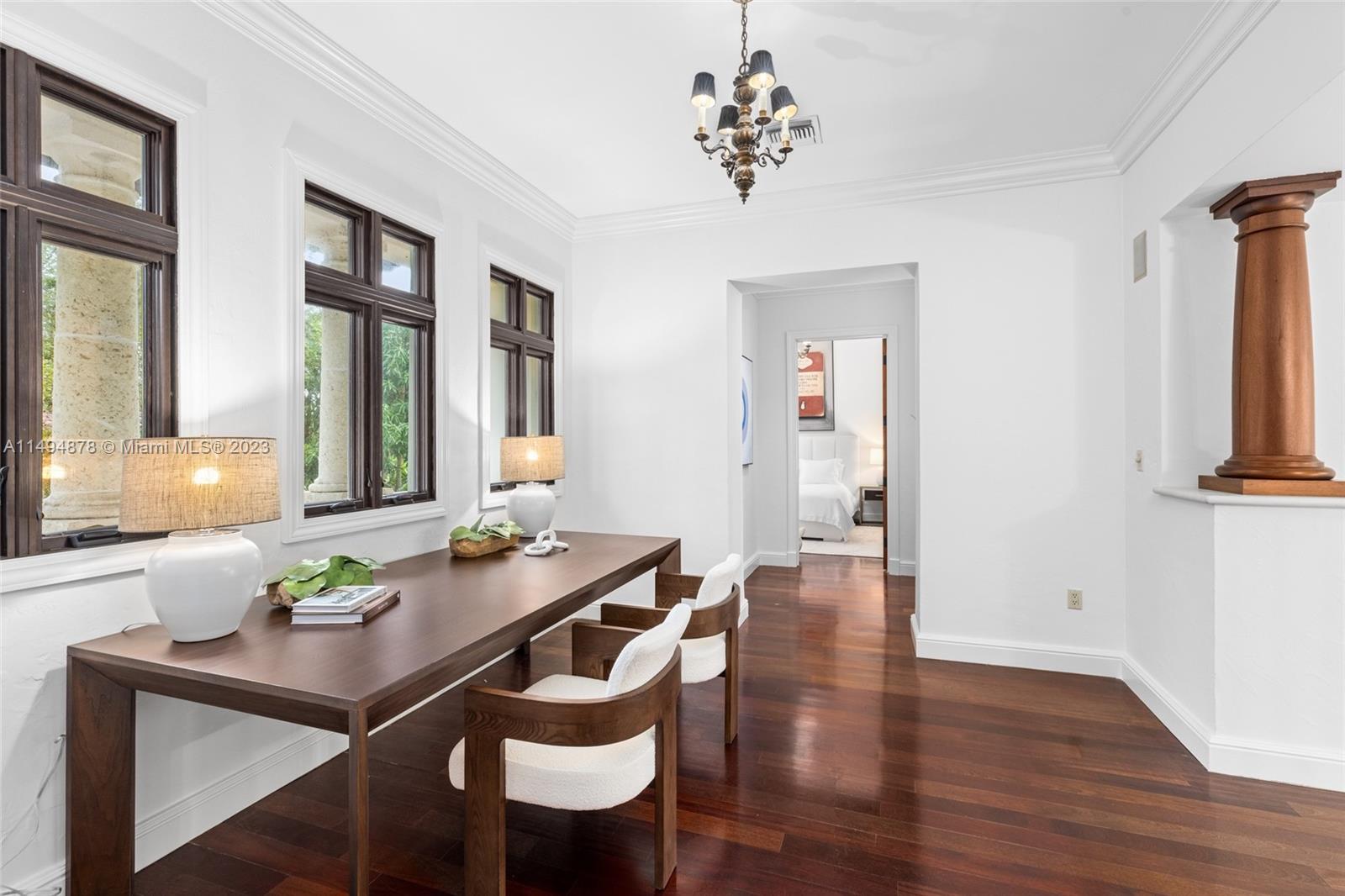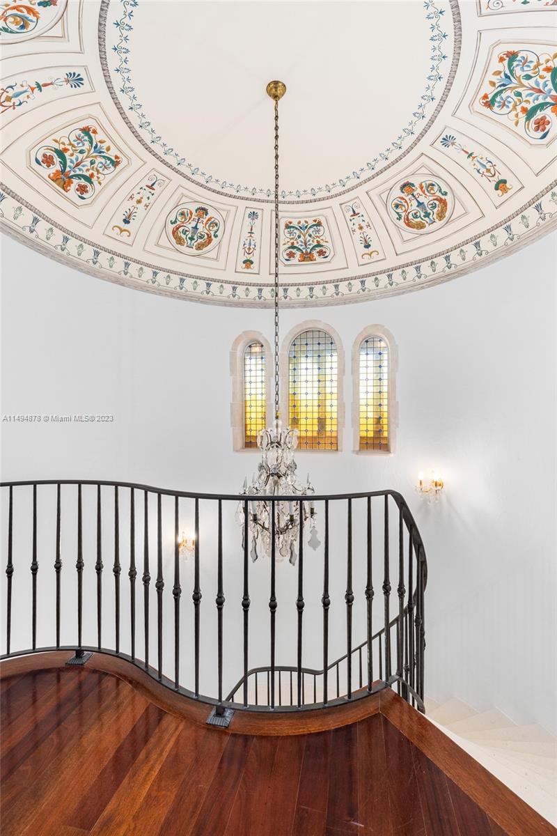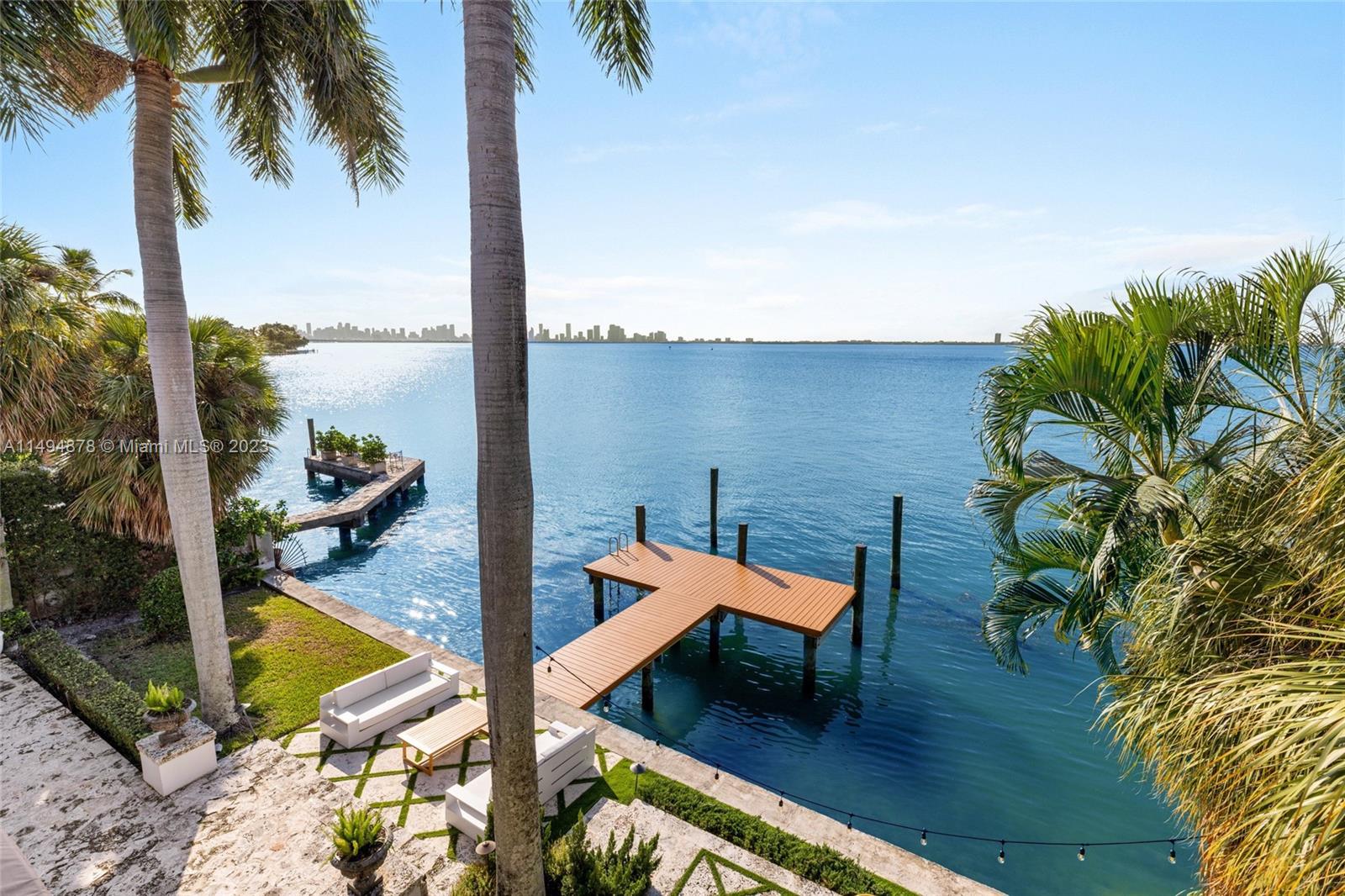 Enjoy living in this exquisite waterfront estate on prestigious N Bay Rd. A picturesque courtyard greets you as you enter this captivating residence. Large stained-glass windows bring in an abundance of natural light with high ceilings and sparkling views of the bay. Exuding charm with its classic architectural elements, surrounded by the serenity of the water's edge the home boasts 75 ft of prime waterfrontage, beautiful stone and wood floors, an architecturally stunning Victorian spiral staircase with soaring ceilings and a spacious primary suite overlooking the water. The outdoors feature a plunge pool and elegant loggia, the perfect setting for Miami’s best sunsets. A separate guest house with two bedrooms overlooks the stunning courtyard.