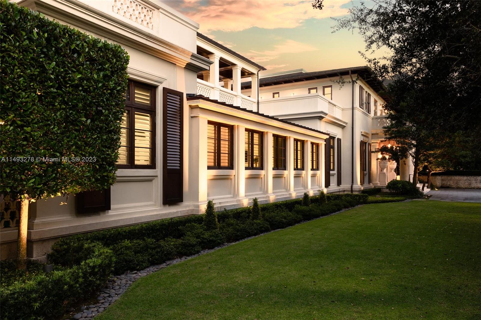 Masterful design & luxury are showcased in this 6BD, 7BA, 4HB custom-built waterfront home in highly-sought after Coral Gables. Enjoy the epitome of WF living w/ 200’ on the water, views of manatees & a refreshing ocean breeze. The outdoors captivate w/ an architectural sculpture garden, 60’ infinity pool, covered terraces & summer kitchen. Every detail of this remarkable 12,173 SF home was quality crafted. Residence features an expansive layout, volume ceilings, 2 elevators & a whole house generator. Chef's eat-in kitchen showcases elegant emerald quartz countertops, top-of-the-line appliances, oversized island w/ seating & separate breakfast area. Enjoy sunrises & sunsets from a spacious rooftop veranda. Additional features: wine cellar, service quarters, 3-car garage & dual-gated entry.
