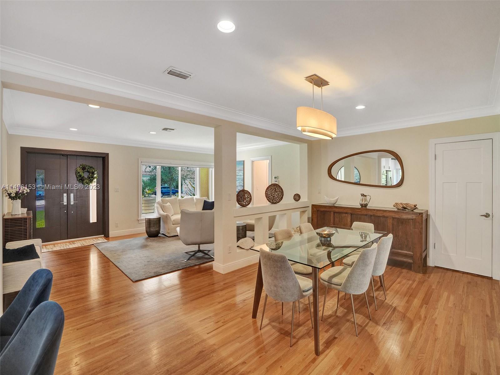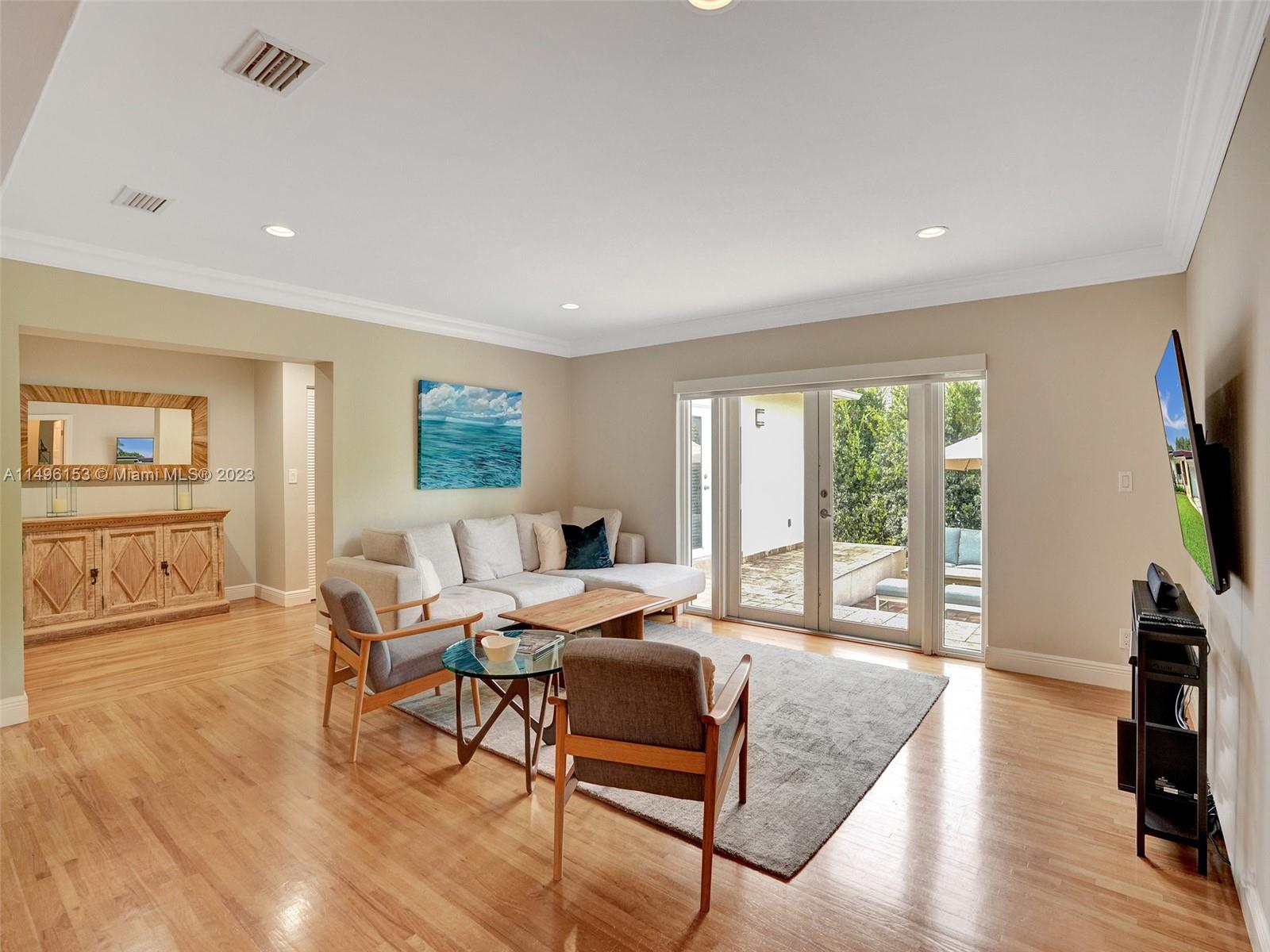 Experience Coral Gables luxury in this meticulously maintained four-bedroom, three-bath home nestled on a tranquil, tree-lined street. Revel in the allure of a 2023 kitchen and appliance upgrade, along with a new roof, exterior paint, newer driveway, AC, and impact windows/doors. This turnkey gem ensures a hassle-free living experience for you in its updated open floor plan. The expansive primary suite features two walk-in closets and a modern en suite bathroom, while the three additional bedrooms offer generous space with built-in closets. Golden oak floors throughout provide a touch of warmth. Private backyard oasis, enclosed by a mature hedge, offering potential for a pool or outdoor kitchen. Conveniently situated between South Miami, Downtown Coral Gables, and Coconut Grove.