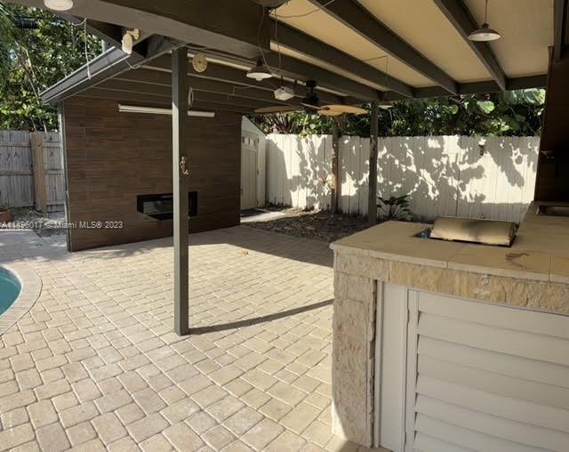 PRICED TO SELL! Desirable location in Hollywood East of US 1, short distance from Hollywood Beach, Downtown Hollywood, Holland Park, Golf Course and Ft. Lauderdale airport. Just renovated 3BR/2BA with sliders opening out to a beautiful pool and patio with Palm Trees to relax and entertain under. A tropical paradise, this home features an outdoor built-in kitchen/bar, heated pool, shed and fenced backyard. This single family house offers porcelain tile floors, Quartz countertops in the kitchen with brand new stainless steel appliances, new Impact Windows with Plantation Shutters, 2 year old tile roof and new water heater. This property has a circular driveway that fits 4 cars. No homeowners association. Make it your primary or vacation home.