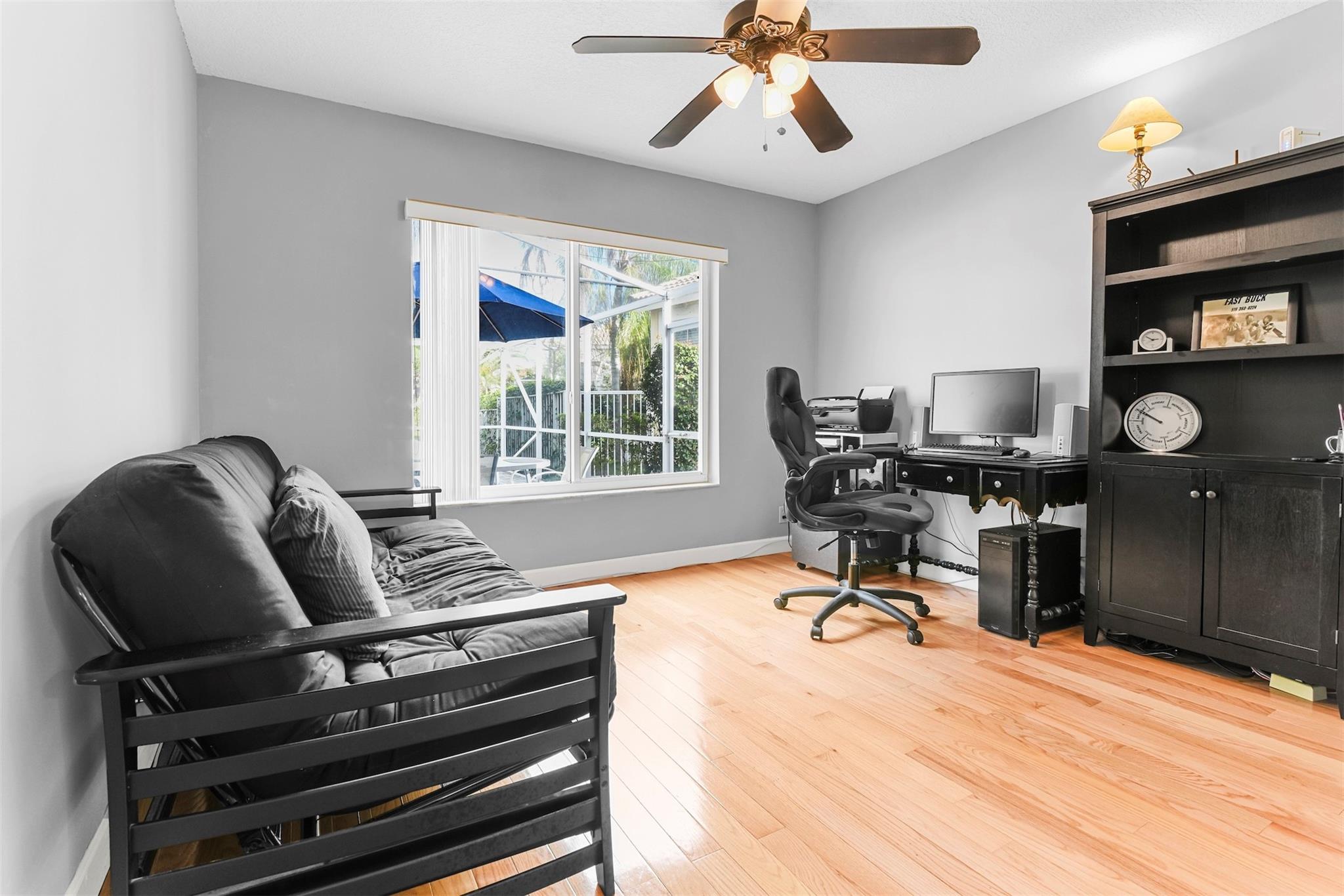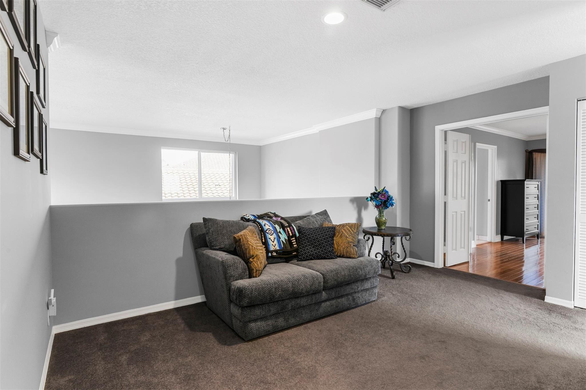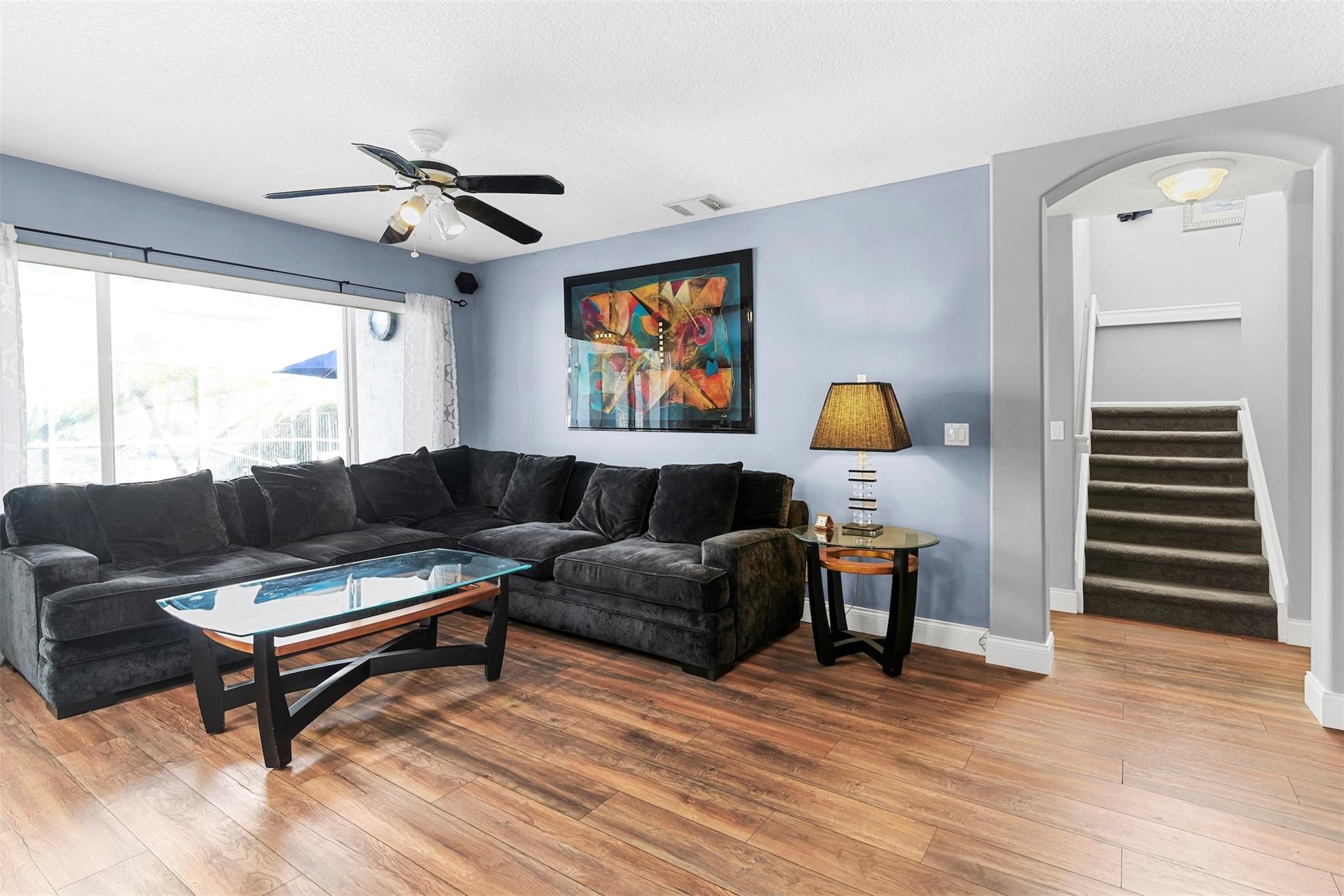 Look no more & call this "HOME". This BEAUTIFUL 4 BEDROOM & 3 BATH HOME has lots to offer. HOME FEATURES private backyard w/ a pool over looking the LAKE. HOA ONLY $164 per month. Kitchen features tons of storage space, Island & granite countertops. REFRIGERATOR just 4 MONTHS old. Kitchen was remodeled just 7 years ago & ac units replaced aprx 6-7 yrs ago. Downstairs flooring presents durable laminate flooring that will work with any DECOR. Home has 1 bedroom downstairs with FULL bathroom next to it for guest privacy. Kids can have their own space upstairs in their private LOFT which can be used as play area or tv area. Laundry area is LARGE and w/ PRIVATE WORKSHOP. Lawn maint. included w/HOA. Live near GREAT SCHOOLS !! w/tons of shopping areas & close to the highways. Make an offer!