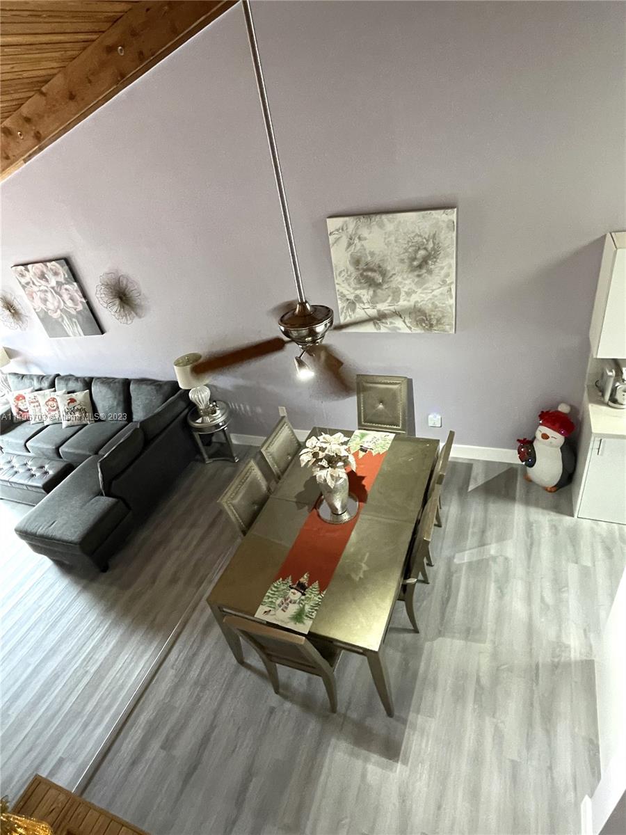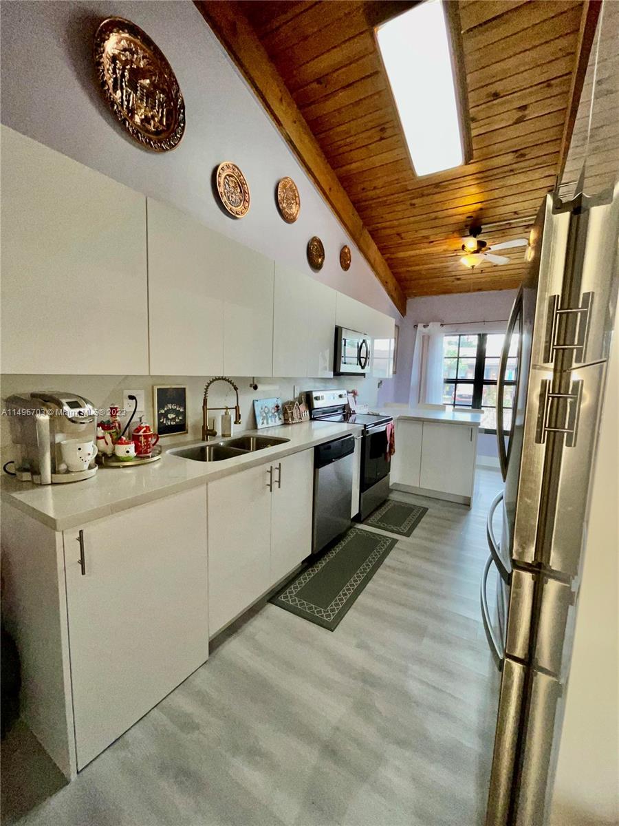 STOP!... LOOK NO FURTHER... THIS BEAUTIFUL CORNER UNIT TOWNHOME WITH NEW WASHER AND DRYER IS WAITING FOR YOU!.. IT HAS EVERYTHING YOU'VE BEEN LOOKING FOR... INCLUDING LOW HOA FEE!... THIS 2 BEDROOM 2 BATHROOM HOME HAS VAULTED CEILINGS A LOFT THAT CAN BE EASILY USED AS a 3rd BEDROOM... IT BOASTS AN OPEN FLOOR CONCEPT WITH EXPOSED WOOD BEEMS!... THIS HOME HAS BRAND NEW STAINLESS STEEL APPLICANCES WITH CUSTOM CABINETS..MODERN KITCHEN WITH QUARTZ COUNTERTOPS.. WASHER AND DRYER IS TASETFULLY ENCLOSED IN CUSTOM CABINETRY LUXURY VINYL FLOORING... IMPACT WINDOWS AND DOOR.. IT ALSO HAS HURRICANE SHUTTERS... NEW WATER HEATER...NEWER A/C AND ROOF!...LARGE PRIVATE PATIO FOR ENJOYMENT AND PLAYGROUND TO USE IF YOU HAVE KIDS.. JOGGING AND BIKE PATH IS SURROUND BY THE LARGE LAKE.. A RATED SCHOOL.
