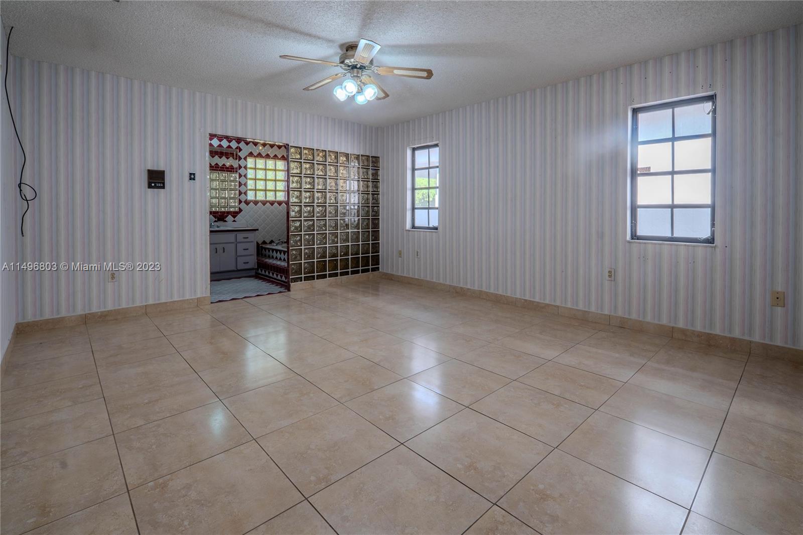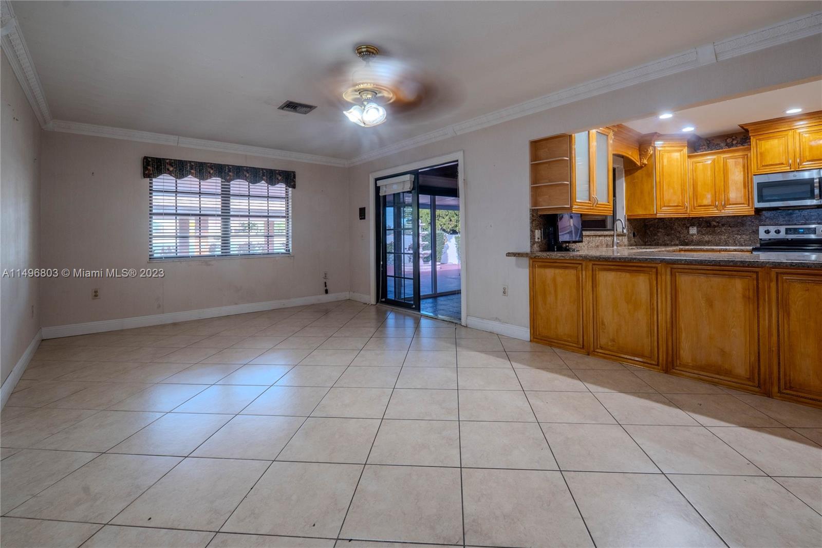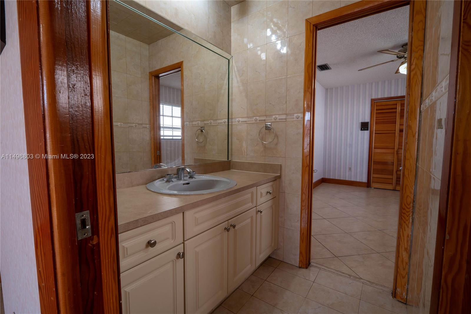 This spacious house is located in a unique pocket of homes in Hialeah built later than the surround neighborhood which offers larger lots and more modern design and appeal. Great floor plan with vaulted ceilings. Huge master bedroom and bath with walk in closet. Jack & Jill bathroom between 2 bedrooms for privacy with separate full bathroom for guests. Enclosed patio with impact windows across the back. Very large back patio with extended aluminum roof, a Gazebo and privacy wall on all sides. Oversized driveway to accommodate a lot of cars & covered parking for a single car and has a 2 car garage. Home is great for entertaining. Roof is 3 years old.