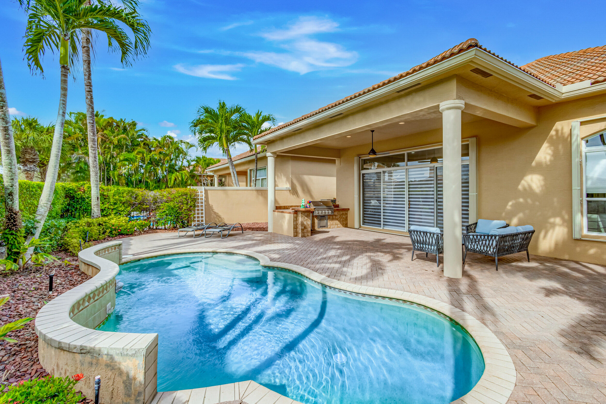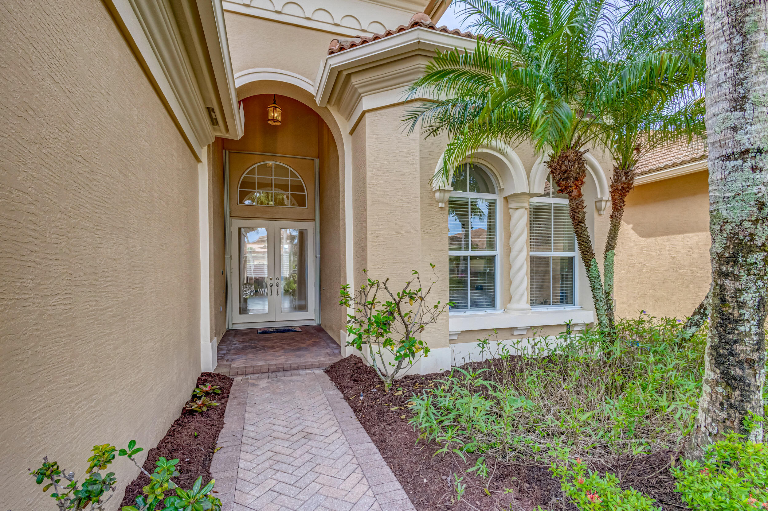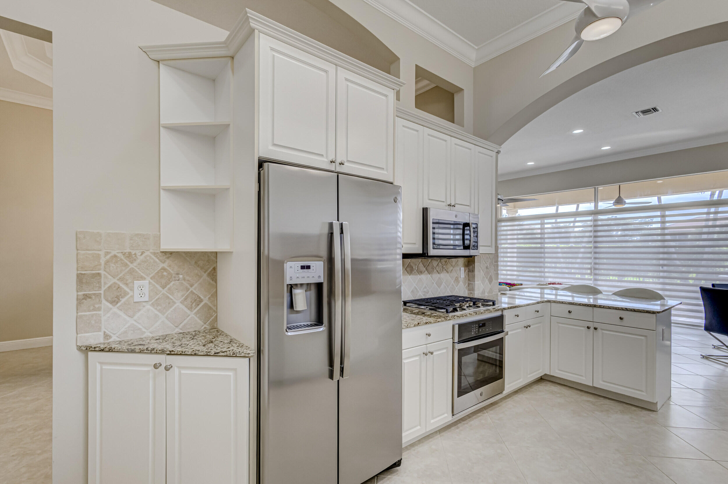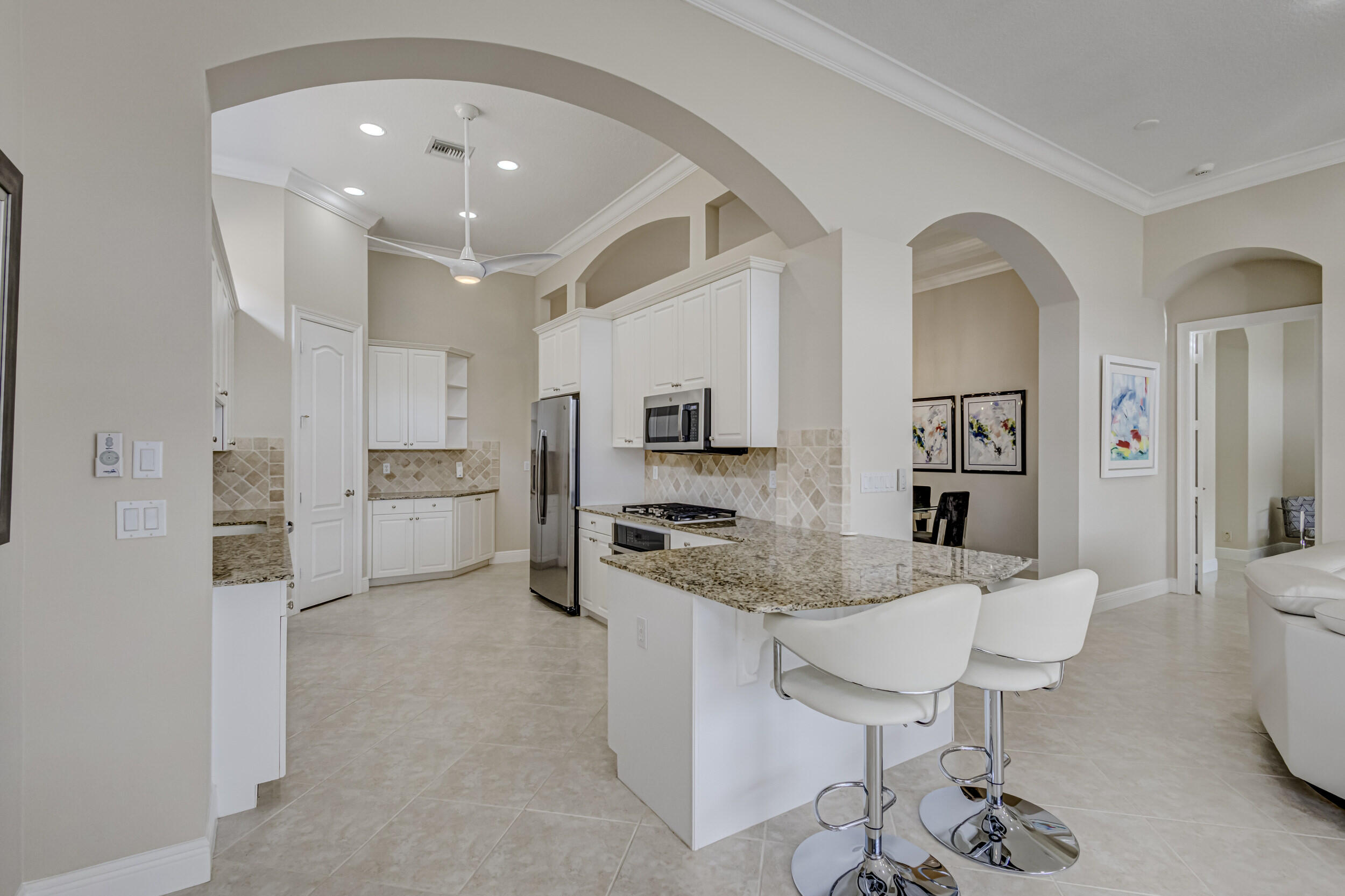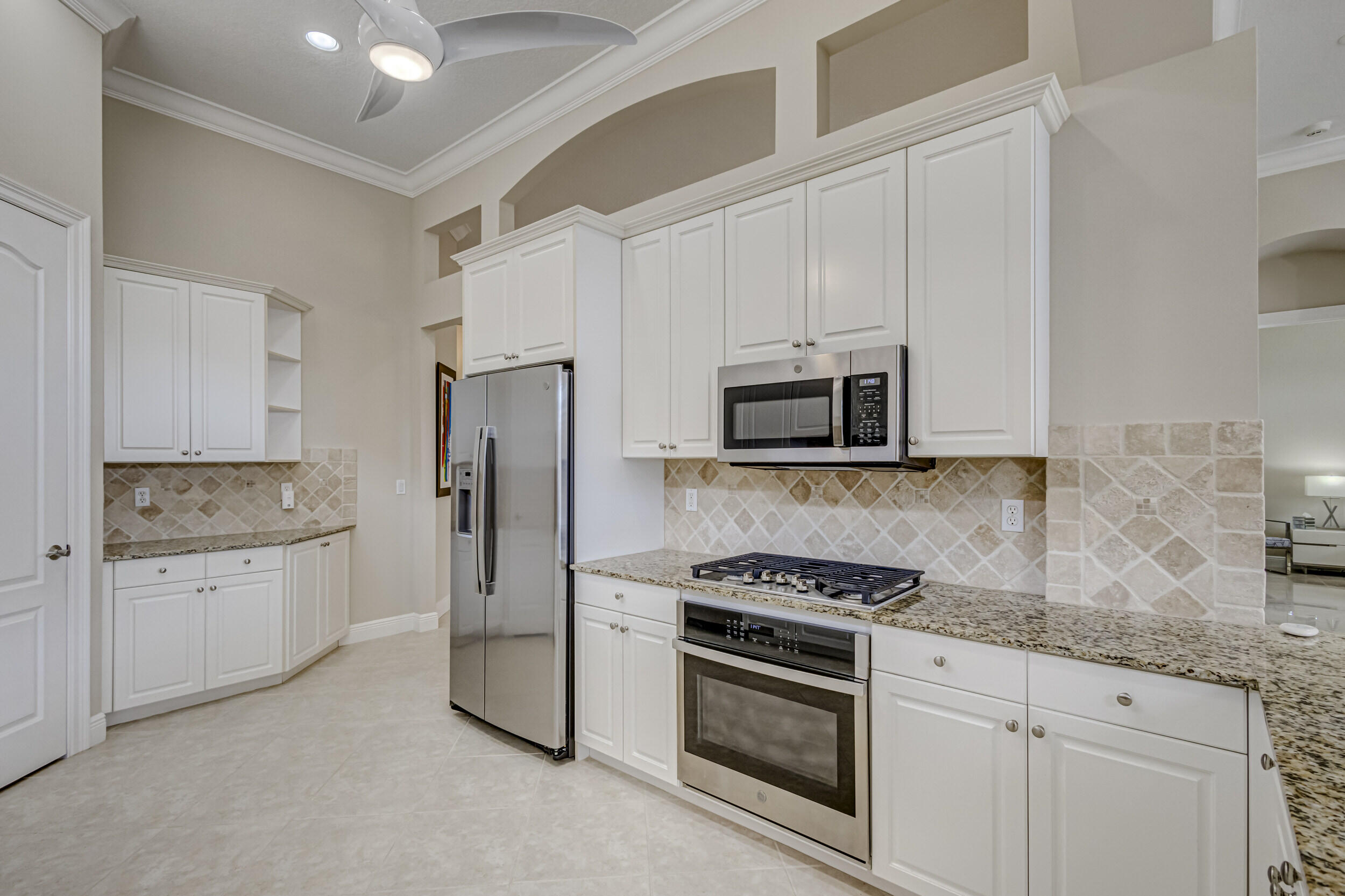 As you approach the property, the lush landscaping and manicured lawn set the stage for what awaits within. The Mediterranean-inspired architecture, complete with stucco finishes and a tile roof, adds a touch of elegance to the exterior. Inside offers a harmonious blend of contemporary design, upscale finishes, and unparalleled comfort. Step through the impressive double front doors into a grand foyer featuring high ceilings and beautiful tile flooring that extends throughout the main living areas. The open-concept design seamlessly connects the living spaces, creating an inviting and airy atmosphere. The gourmet kitchen is a chef's delight, boasting 2020 state-of-the-art stainless steel appliances, granite countertops and custom cabinetry. The adjacent formal dining area is (see MORE).