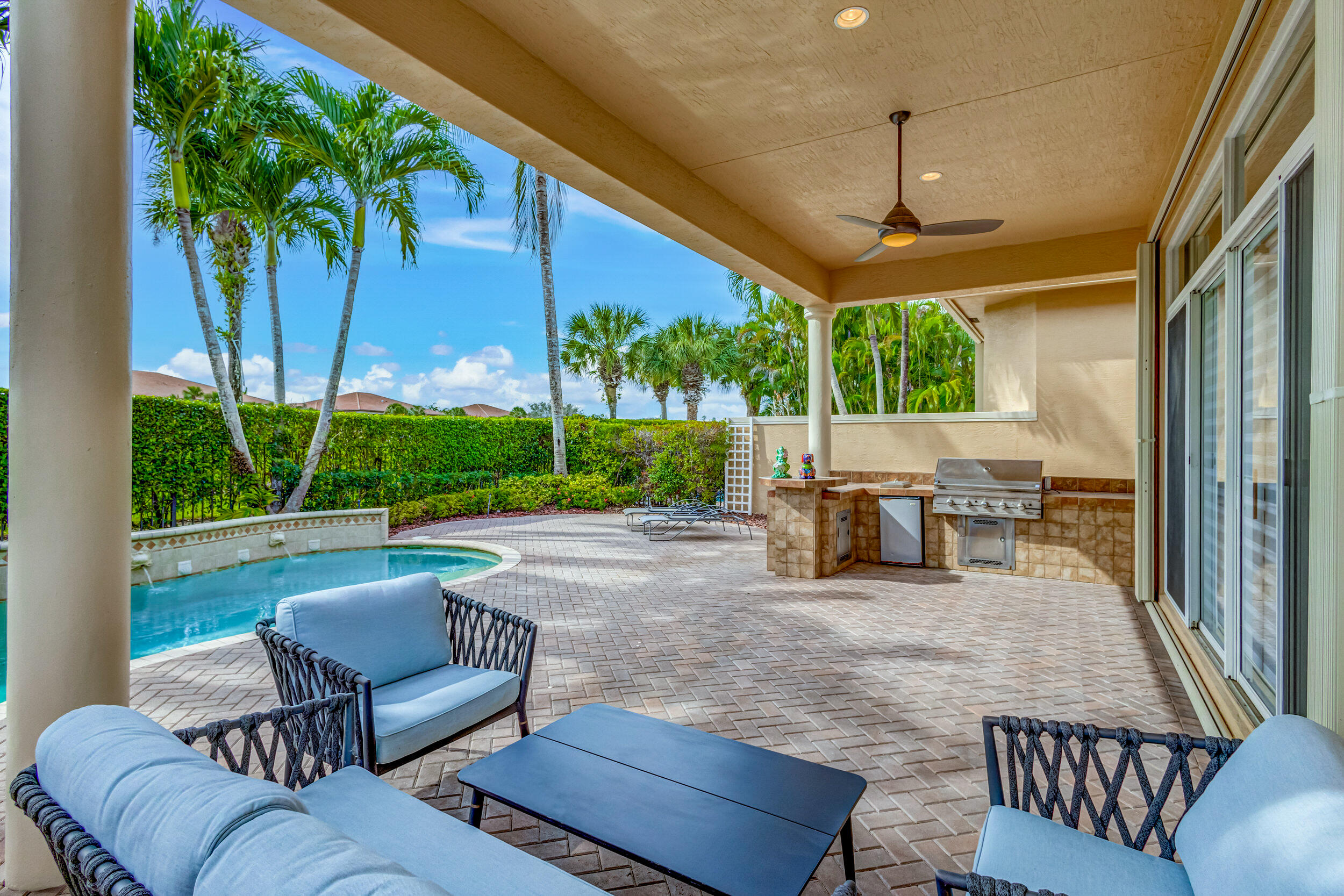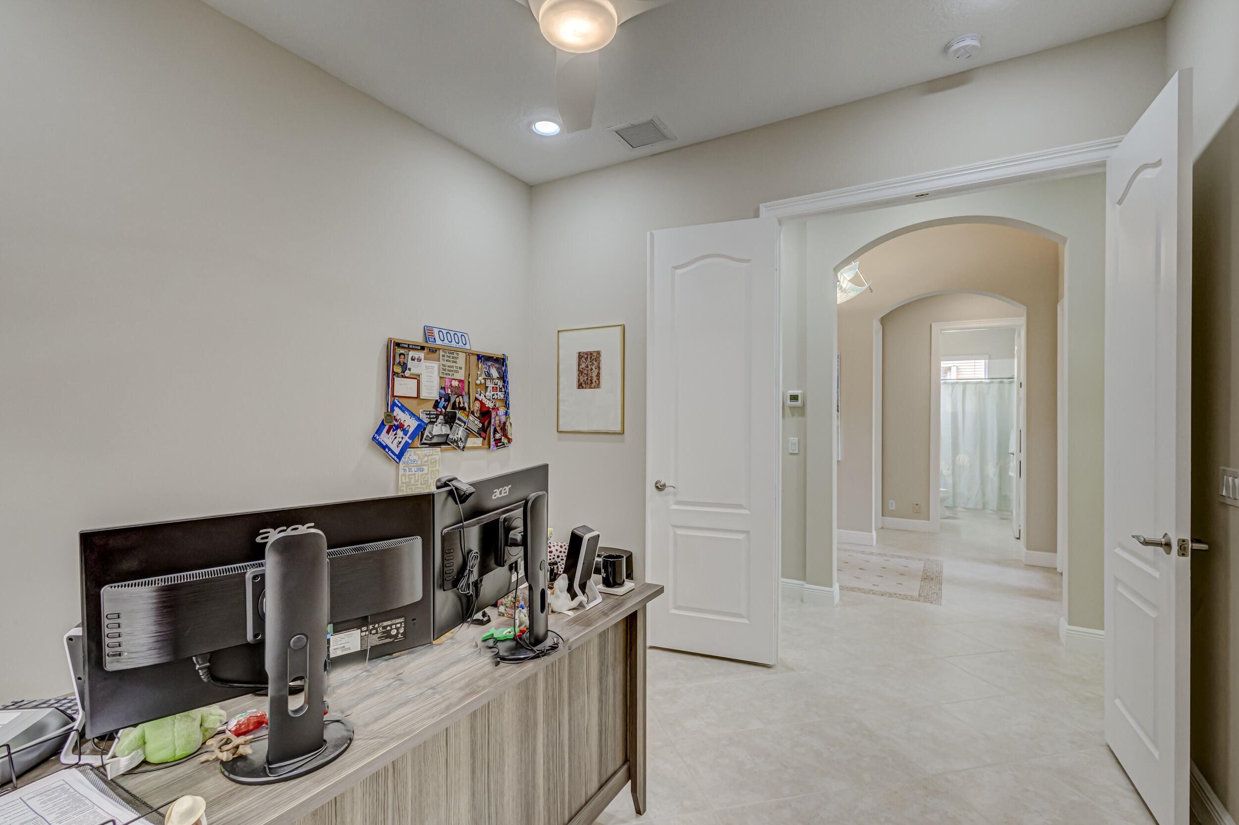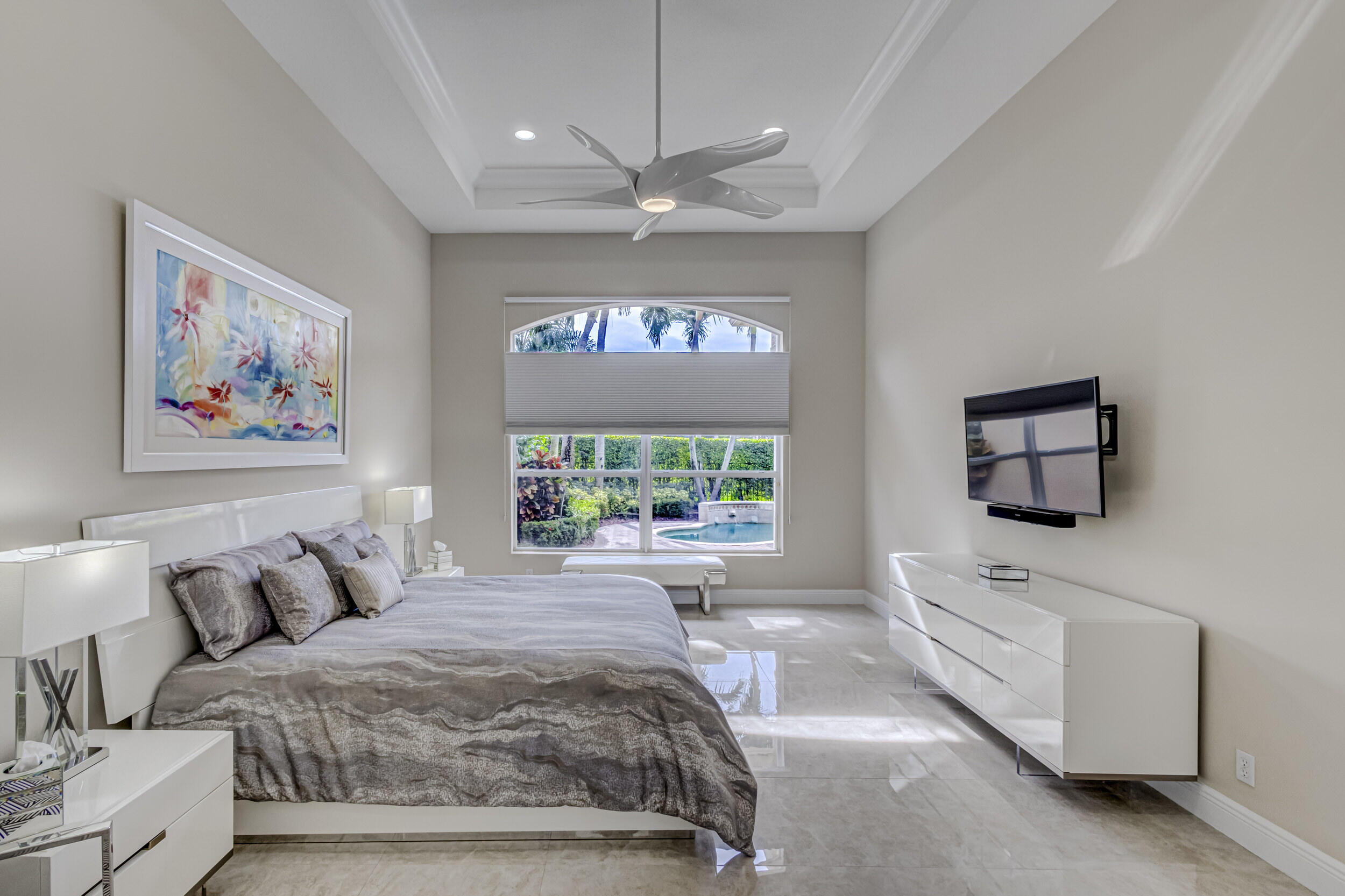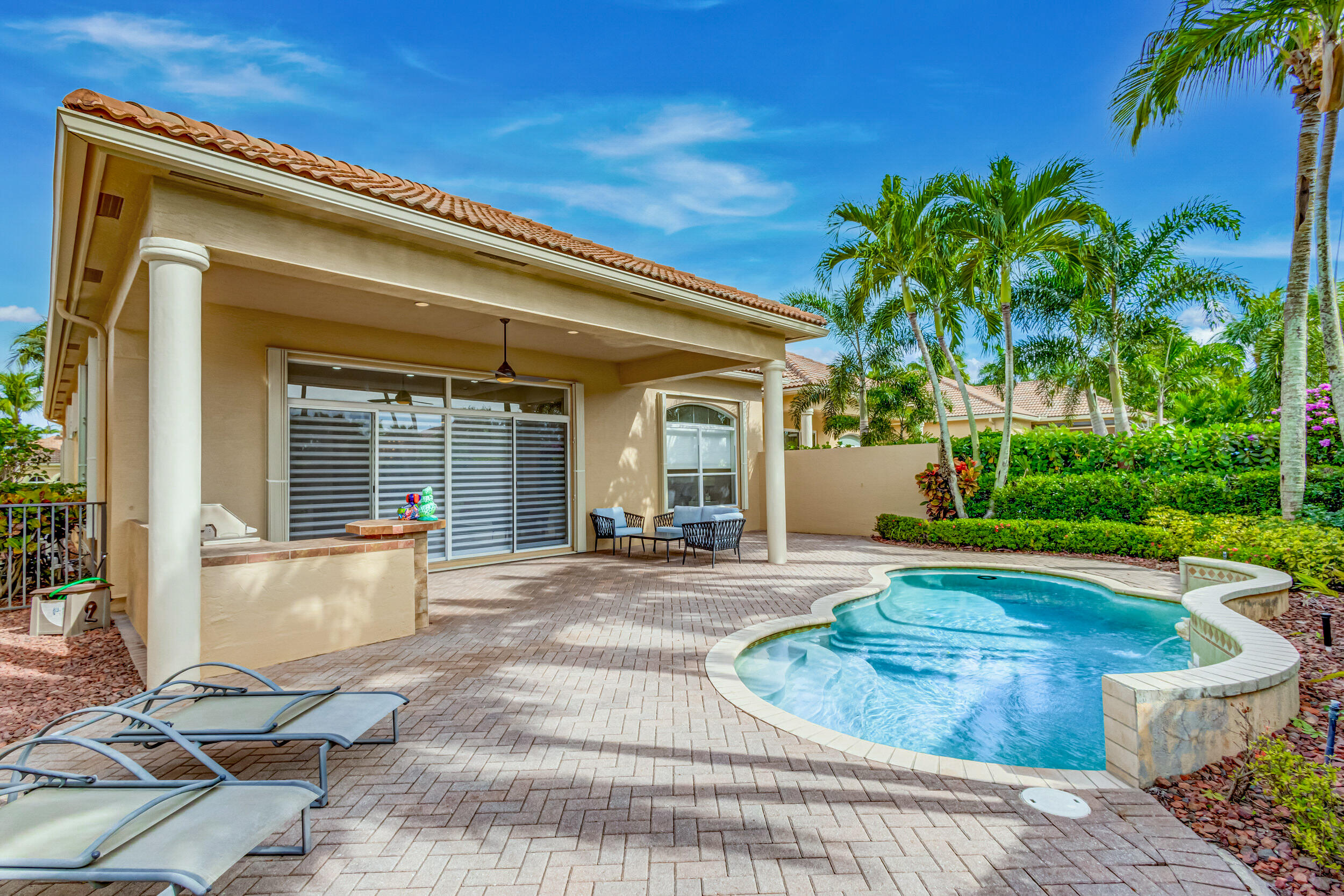 As you approach the property, the lush landscaping and manicured lawn set the stage for what awaits within. The Mediterranean-inspired architecture, complete with stucco finishes and a tile roof, adds a touch of elegance to the exterior. Inside offers a harmonious blend of contemporary design, upscale finishes, and unparalleled comfort. Step through the impressive double front doors into a grand foyer featuring high ceilings and beautiful tile flooring that extends throughout the main living areas. The open-concept design seamlessly connects the living spaces, creating an inviting and airy atmosphere. The gourmet kitchen is a chef's delight, boasting 2020 state-of-the-art stainless steel appliances, granite countertops and custom cabinetry. The adjacent formal dining area is (see MORE).
