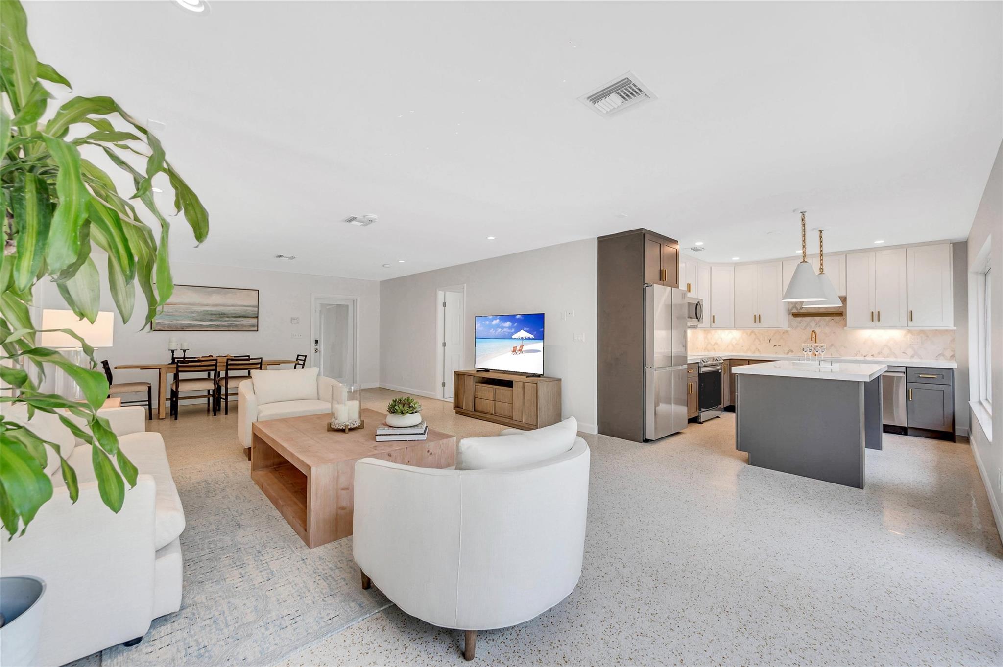 Stylish remodel just completed in November 2023 adding a third bedroom-bath suite, a complete new kitchen with all new appliances and center island, new master bath upgrades, new a/c, new laundry room with new washer and dryer and a restored 1-car garage. The thoughtfully-designed open kitchen has a wide, backyard-facing window. All three bedrooms have large closets and attached baths. This home features a spacious living and dining room with four sliding doors to a very private yard surrounding a sunny patio and pool with a wide sun shelf perfect for entertaining. A screened porch on the south side is perfect for evening cocktails and outdoor dining. This home is located in very walkable Victoria Highlands section of Victoria Park. Movies, parks and waterfront dining are close by.