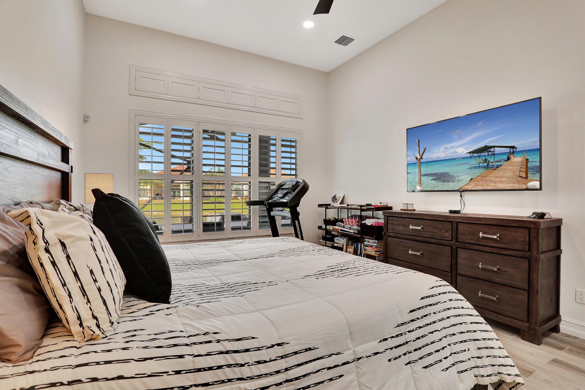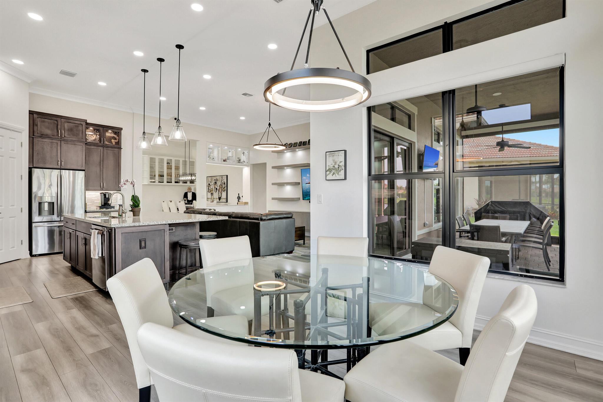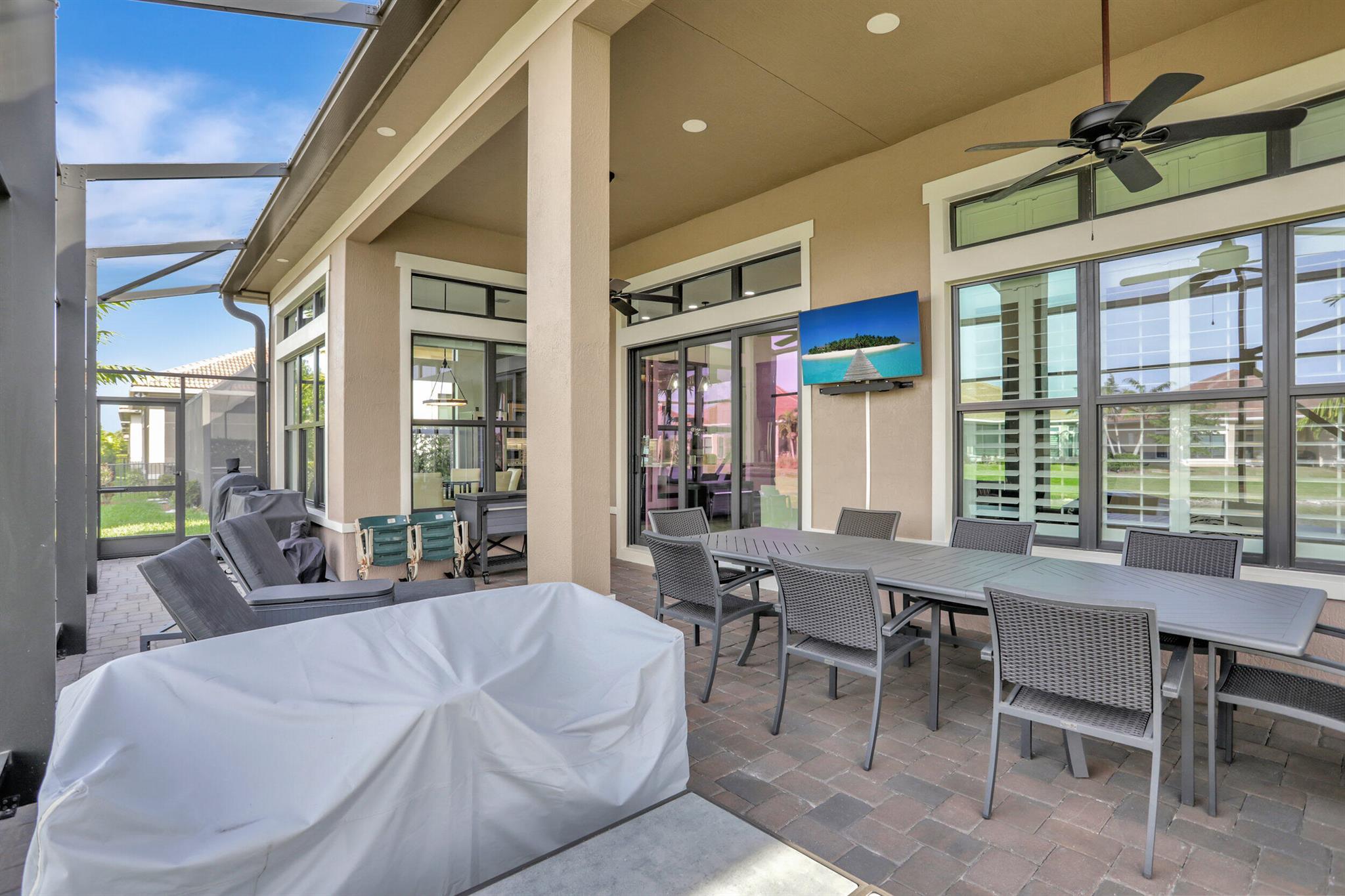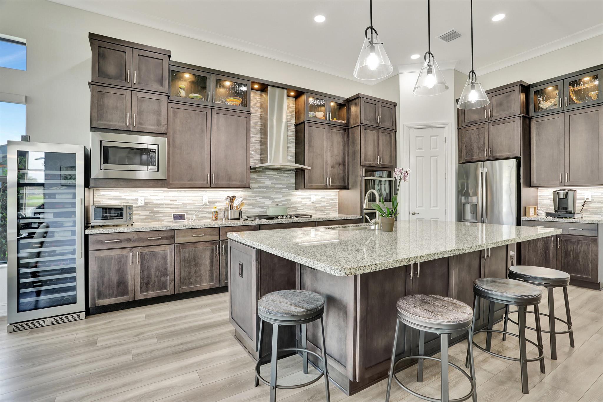 Fabulous Vera model situated on a cul-d-sac with long lake and fountain views, this 3 bedroom, 2 1/2 bath home has numerous upgrades, such as full house generator with natural gas, all hurricane glass windows, custom outdoor landscaping with spectacular lighting, incredible custom kitchen with large center island, up graded cabinets with soft closing drawers, tray dividers and double glass display cabinets with lighting. Stainless exhaust fan fully vented to the outdoors. New light fixtures and ceiling fans, and crown molding thru-out. The master bedroom has new flooring all custom closets. Plantation shutters as well as remote controlled shades. A wall of pocket sliding glass doors open to the patio for a huge, fabulous entertaining space. Screened in