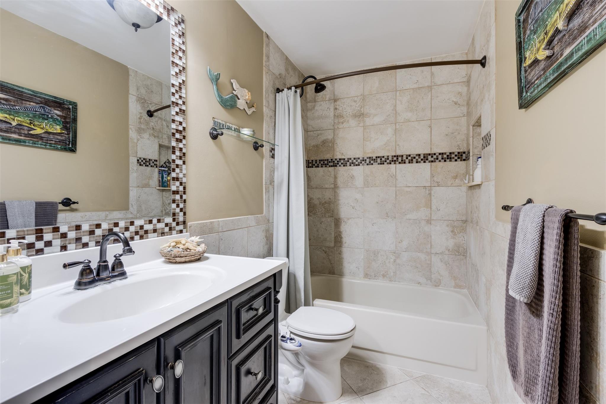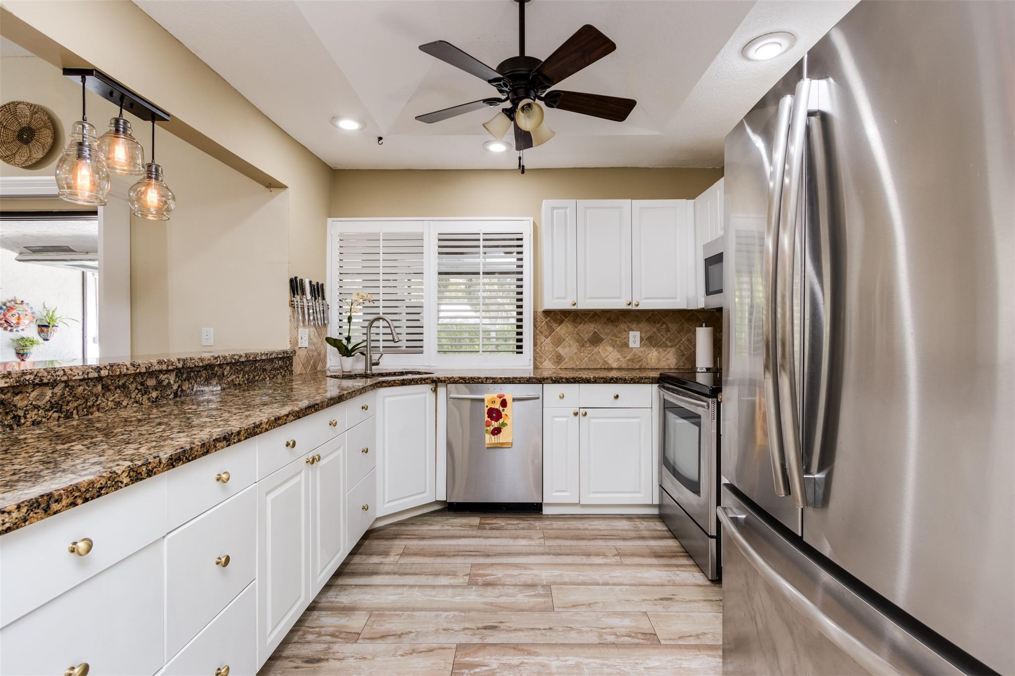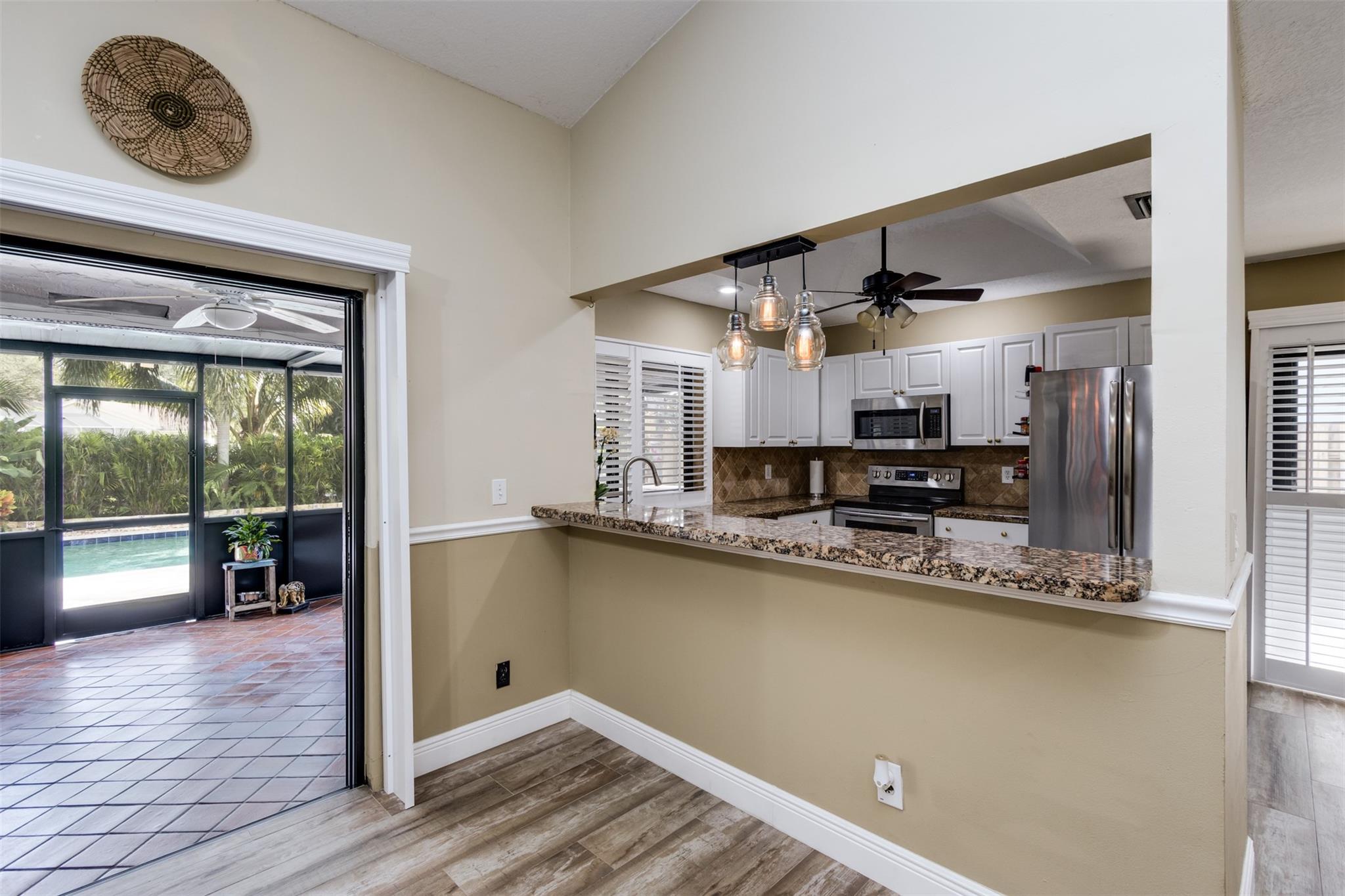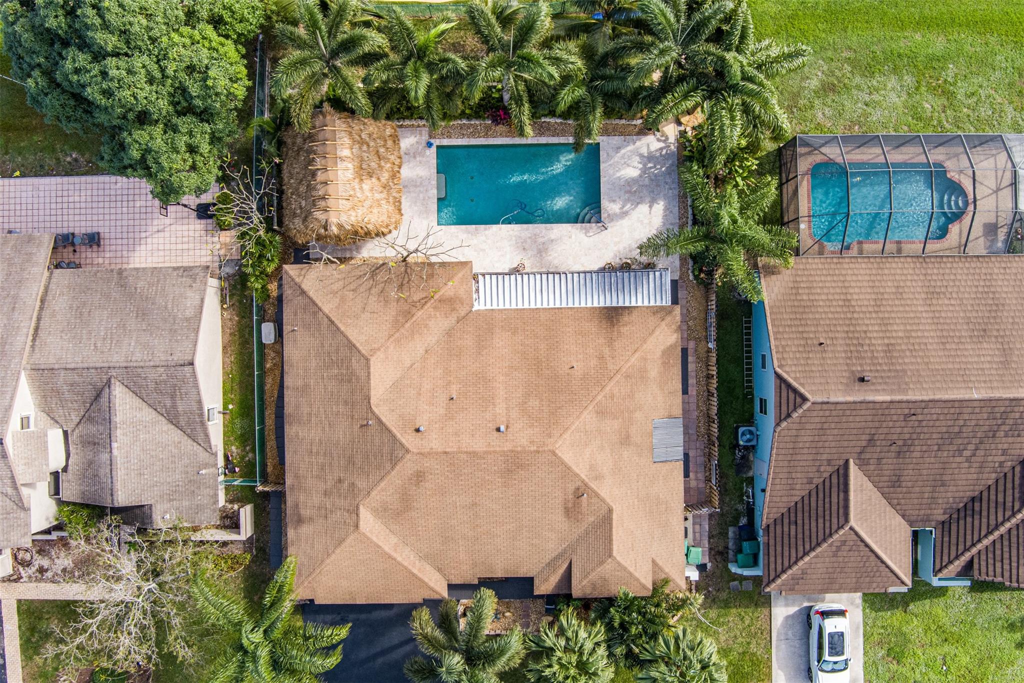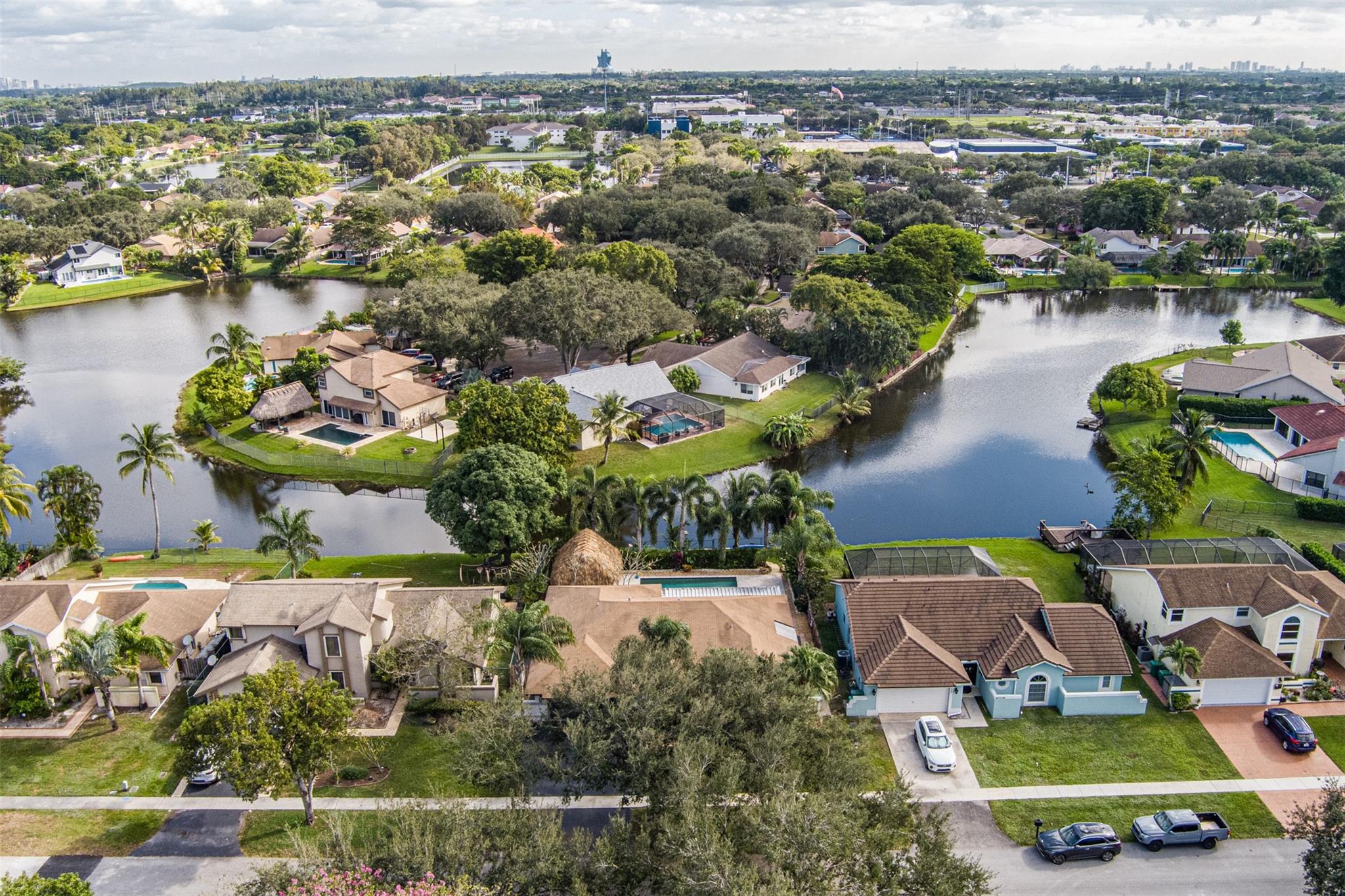 Welcome home to your Country Address tropical paradise in this beautifully updated 3/2 lakefront home. Open floor plan offers great room off the kitchen overlooking pool with plantation shutters, large family room, wet bar and pantry. Spacious master with updated ensuite & walk-in closet is appointed with plantation shutters. Enjoy island vibes with landscaped privacy, oversized pool patio, travertine pavers & freshly thatched tiki hut. Screened patio is great for outdoor dining and taking a dip in the hot tub. Solar outdoor shower, granite counters, SS appliances. This home is hurricane ready with impact glass throughout, impact garage door (full insurance credit). Freshly painted exterior, A+ Cooper City schools, .5 mile to Posnack JCC, .2 miles to park, abundant shopping & dining nearby