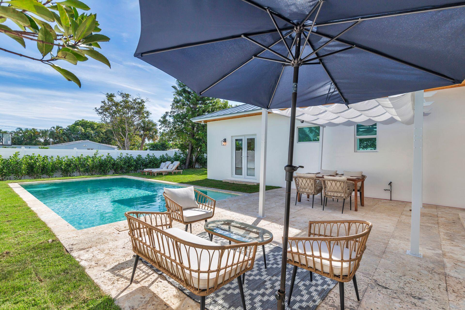 Gutted to the studs, added onto and completely reimagined, this stunning 4 bedroom, 3 bathroom home features NEW everything! New metal roof! New impact rated windows and doors! New kitchen! New HVAC system! New swimming pool! NEW NEW NEW! Thoughtfully and purposefully designed this home also has a new fabulous floor plan. With high ceilings throughout and a large eat-in kitchen that overlooks the family room and the outdoor gardens/ pool, this home is perfect for even the most discerning Buyer. Close to area beaches, Flagler Drive bike trail, I-95, Worth Avenue shopping, fine dining, fabulous elementary schools and much more!