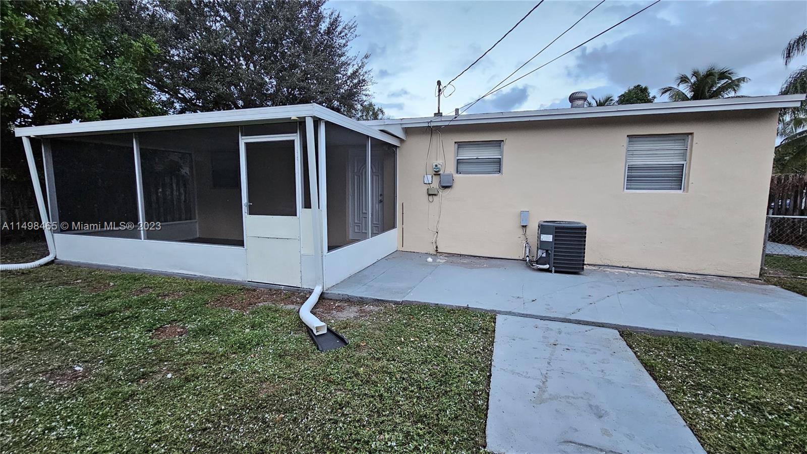 Great opportunity and Potential! Cozy 3 bedroom and 1 bath single family residence in the heart of Hollywood. Newer kitchen cabinets and appliances. Partially updated bathroom. Completely tiled. Newer air conditioner and water heater. Freshly painted interior and exterior. Fully screened and covered back yard terrace. Custom brick barbecue area. Large back yard with plenty of room for a swimming pool and or a future home addition. Side entrance with enough space to comfortably park a work truck or a boat. Quite fully established neighborhood. Centrally located within close proximity to Broward Community College.