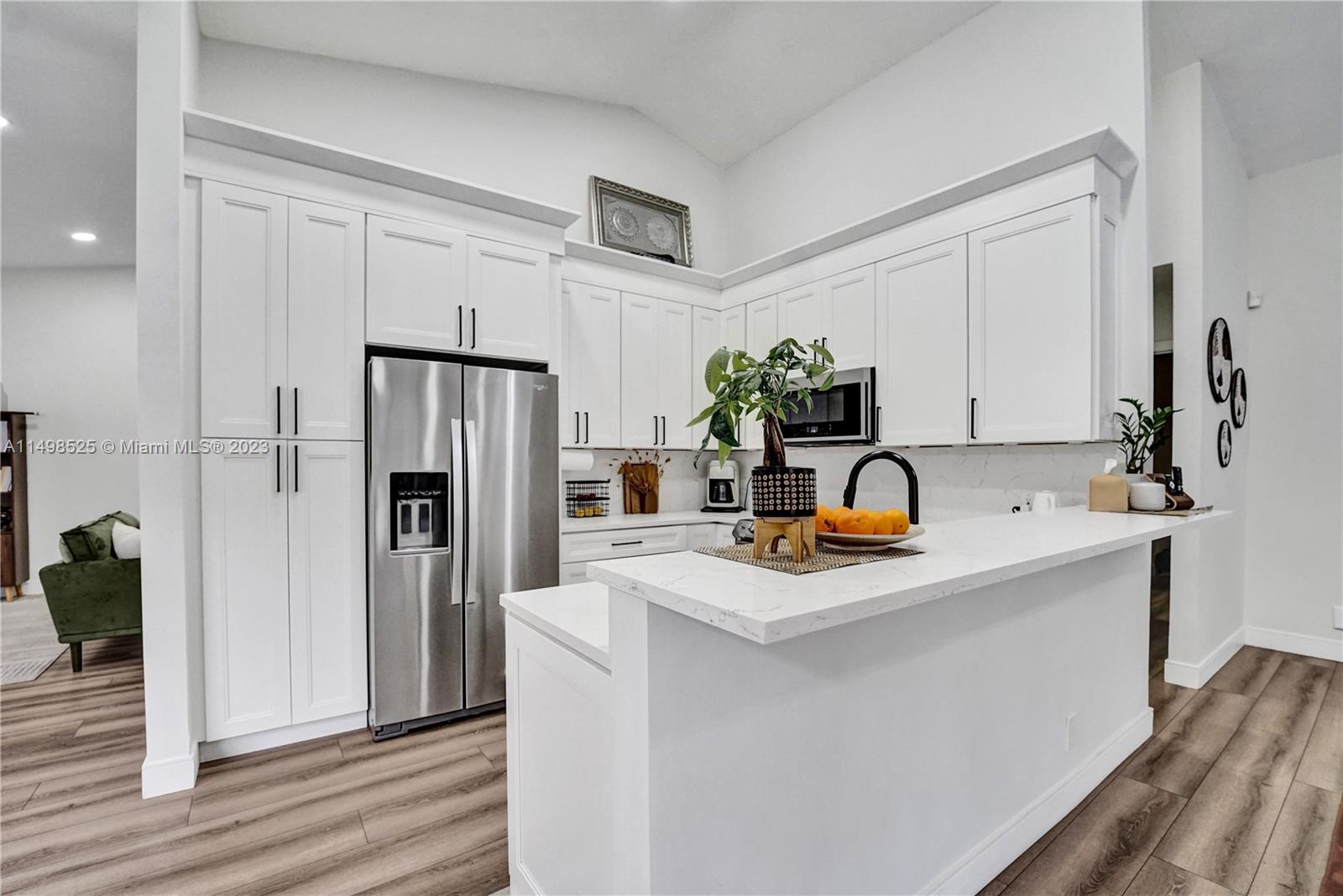 If your heart longs for a gorgeously remodeled move-in ready home, your search ends here. Enjoy an open concept floor plan with new vinyl plank flooring, a spacious kitchen w/quartz counters and soaring vaulted ceilings that provide natural light in abundance. The owner’s suite is complete with ample room for a desk, dream spa bath & large walk-in closet w/custom shelving. As you step outside to your fully fenced sanctuary, a screened porch and large travertine patio provide the serenity & space you've always envisioned. In addition, leisure & recreation are right at your doorstep with fabulous community amenities, including pool, tennis, basketball, volleyball & more! Accordion shutters for convenience. Front yard maintenance (mulch, sprinklers, pressure cleaning & lawn service) included!