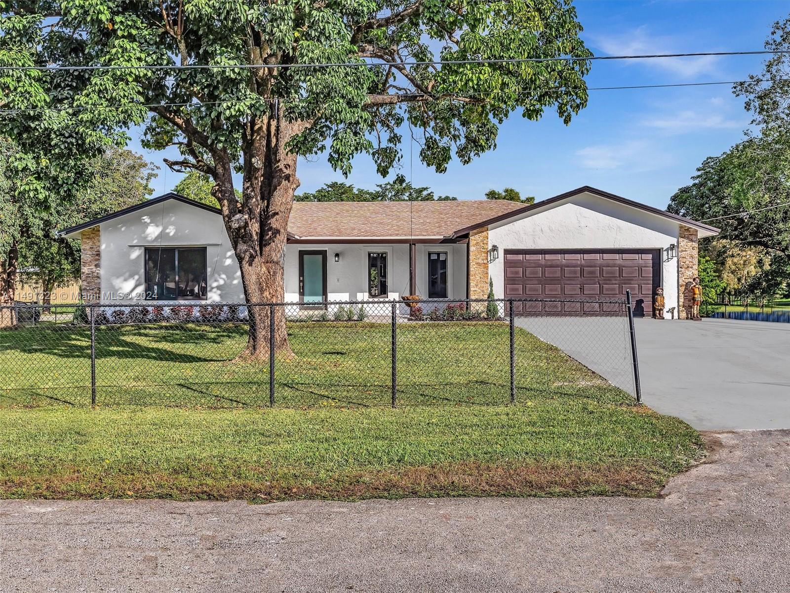 Beautiful house located in the heart of Davie ready for first owner quiet community of Hiatus Ranchettes. Completed renovated, lakefront 4 bedroom added 3 bathroom, 2 car garage, New laminated floors waterproof, new kitchen with quartz counter, wood cabinets, SS appliances, complete renovated bathrooms, and new 3er bathroom, Roof 2 years AC brands new, Impact windows, fresh painted outside and inside, pool home has views of the lake that will take your breath away! It sits on a sprawling builder's acre. Updated electric panel, tankless water heater, resurfaced pool, split ac units, oversized bedrooms, and a kitchen you can dance in. Move-in ready, just waiting for the right family to move. Easy to show, call the listing agent.