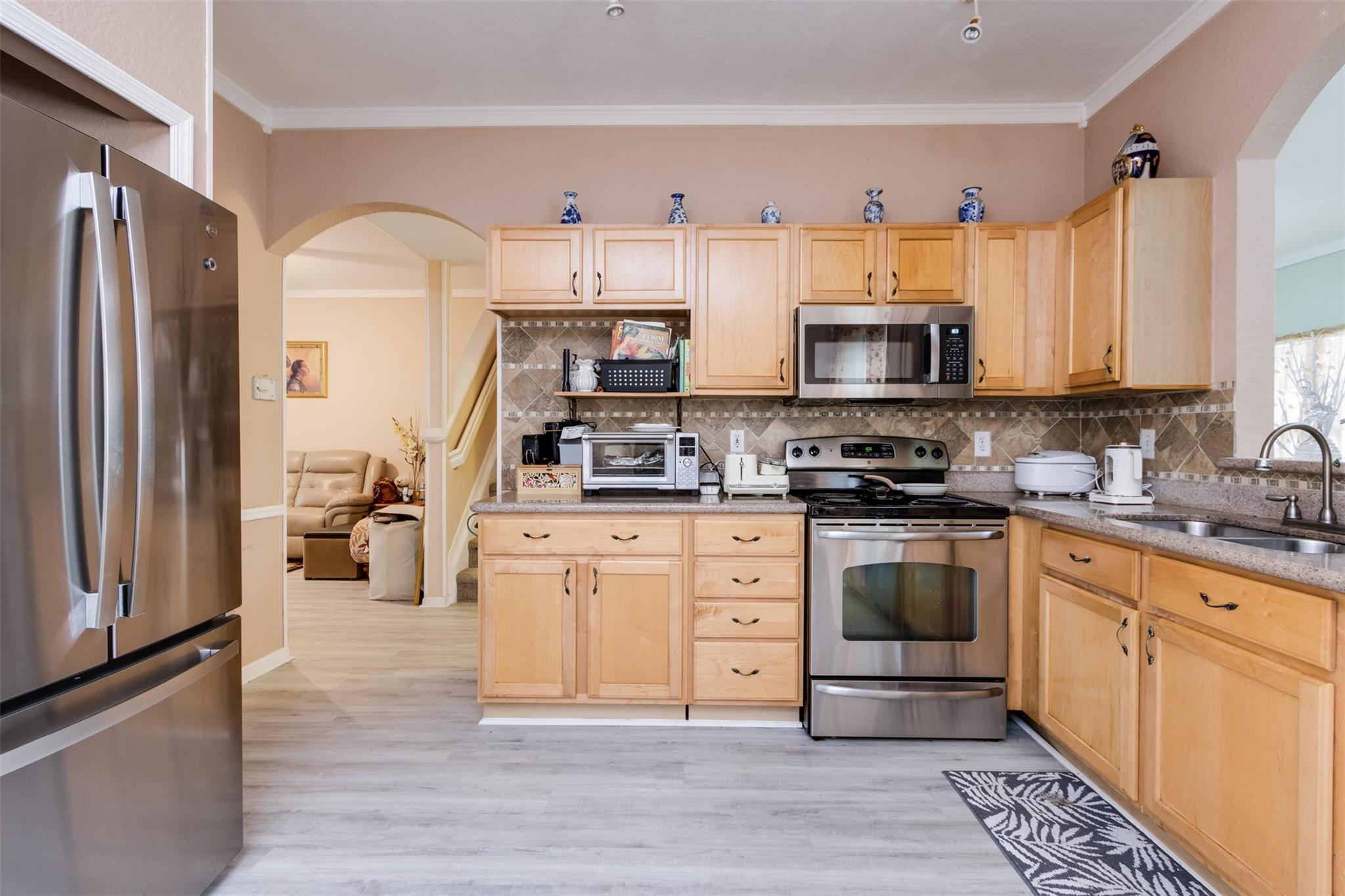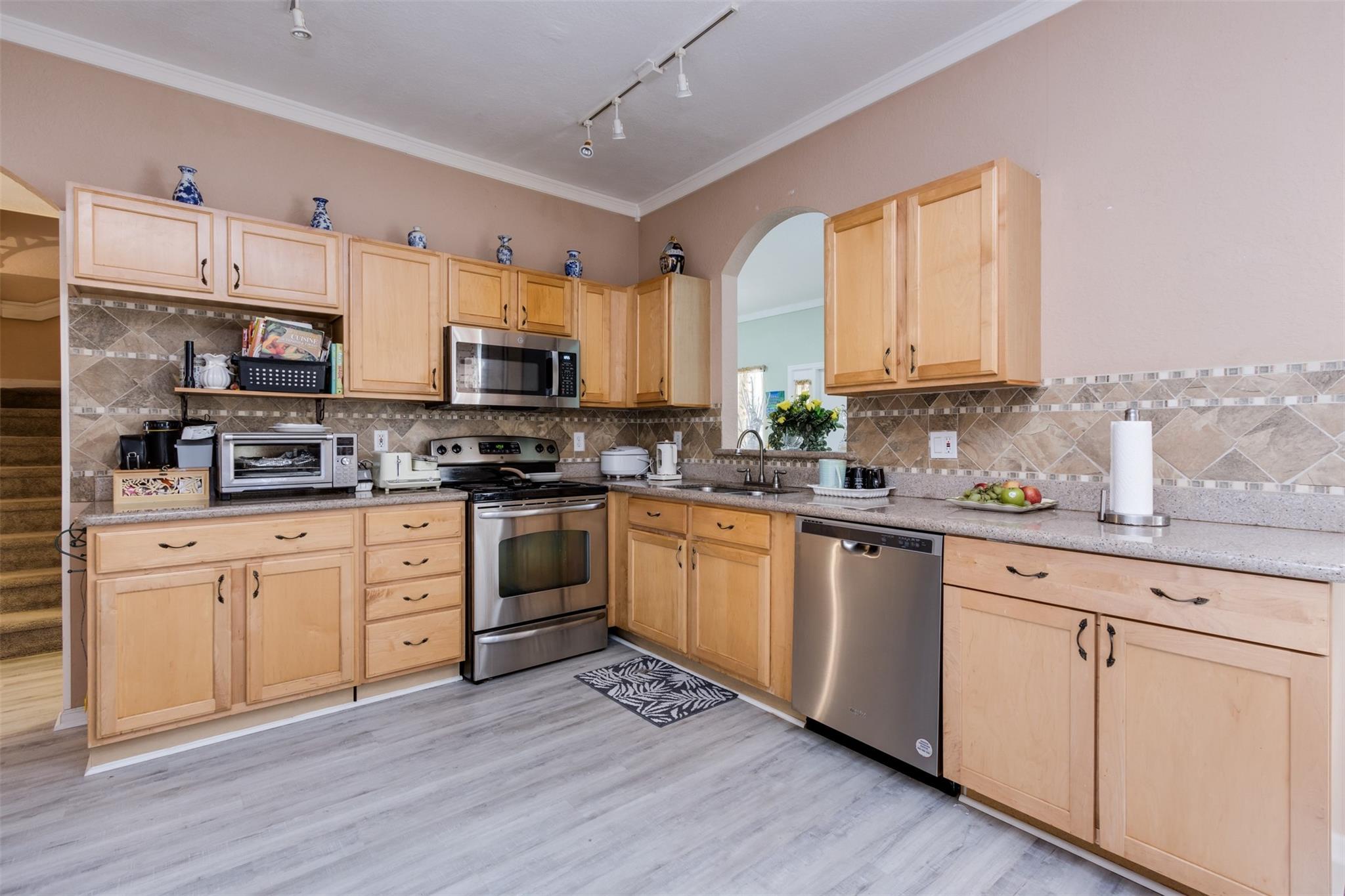 BEAUTIFUL KEY WEST STYLE TOWNHOME, 3 BEDROOM, 2.5 BATHROOMS PLUS LOFT IN A PARK LIKE SETTING WITH 2 CAR GARAGE. NEW FLOORING THOUGHOUT THE HOUSE. GORGEOUS KITCHEN WITH GRANITE COUNTER TOPS, STUNNING BACKSPLASH, NEW STAINLESS STEEL APPLIANCES & LARGE BREAKFAST AREA. ENTER PRIVATE SCREEN PORCH INTO LIVING & DINING AREA. BEDROOM & 2 BEDROOMS PLUS LOFT ARE ON THE SECOND FLOOR. CROWN MOLDING. ACCORDIAN SHUTTERS FOR THE 2ND FLOOR & SHUTTERS FOR THE 1ST. FRESHLY PAINTED ENTIRE COMMUNITY. A+SCHOOLS 1 BLOCK AWAY! CLOSE TO SHOPPING & PARKS!