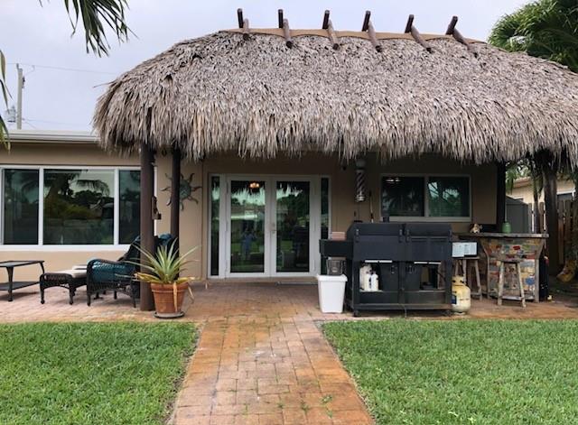JUST REDUCED!! OCEAN ACCESS, NO FIXED BRIDGES. Embrace the ultimate coastal lifestyle in this beautifully updated 3-bedroom, 2 bathroom home with ocean access and no fixed bridges. Relax under the charming tiki-hut, perfect for entertaining or unwinding while enjoying serene waterfront views. Modern updates, impact windows, bonus room, boat dock (w/ mooring whips), dry dock w/ electric davits and a floating dock, beautiful landscape with uplighting & 2 zone sprinkler system. This oasis offers the ideal blend of comfort and coastal allure. A short 20-25 minute boat ride to downtown. Includes front and rear camera. Furniture is negotiable with the sale. Easy access to all major highways. Downtown and beach are both just minutes away! Showing instructions in broker remarks.