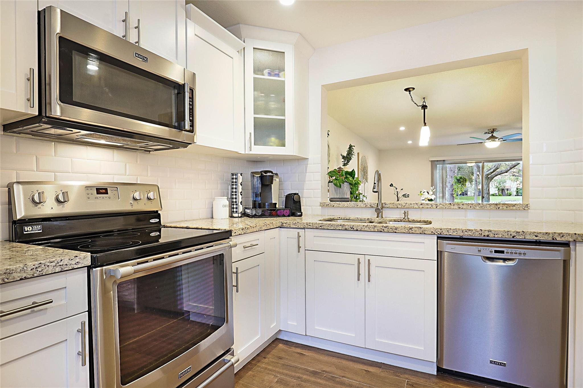 Completely upgraded 2 bedroom lake front Townhome in Boca Walk. Everything done including kitchen, bathrooms, floors, ceilings, recessed lighting & more. Contemporary touches everywhere. Two large master bedrooms upstairs with each one having its own private bathroom. Guest 1/2 bathroom downstairs. Elegant wood plank tile flooring throughout. Modern kitchen featuring new white shaker cabinetry, stainless steel May Tag appliances and granite counter tops. In unit washer/dryer. Storm shutters. Amazing lake views. Boca Walk is an all ages community with walking distance to places of worship, YMCA and close to I-95 and minutes to Boca Town Center, Mizner Park and beach. Leasing is allowed after one year of ownership. Insurance, internet & cable included with HOA fee.
