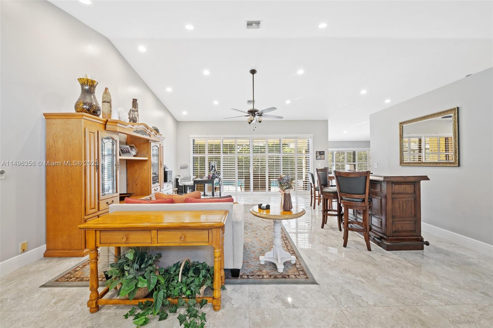 Discover this stunning Laurel Oaks home situated on a sprawling 1-acre lot! This 4-bedroom, 4-bath pool home boasts an enclosed patio, impact windows, & skylights for an abundance of natural light. The residence features a wood-burning fireplace in the family room, custom plantation shutters, California closets, and tile floors in the living areas & master bedroom. The master suite is a luxurious retreat, offering his & her baths and a sitting area with views of a private patio. One of the bedrooms has water-proof wood vinyl plank flooring. The kitchen is a chef's delight, equipped with custom cabinets, top-of-the-line appliances, granite countertops, a wet bar, & a separate breakfast room. This home combines elegance, comfort, & functionality for an exceptional living experience.