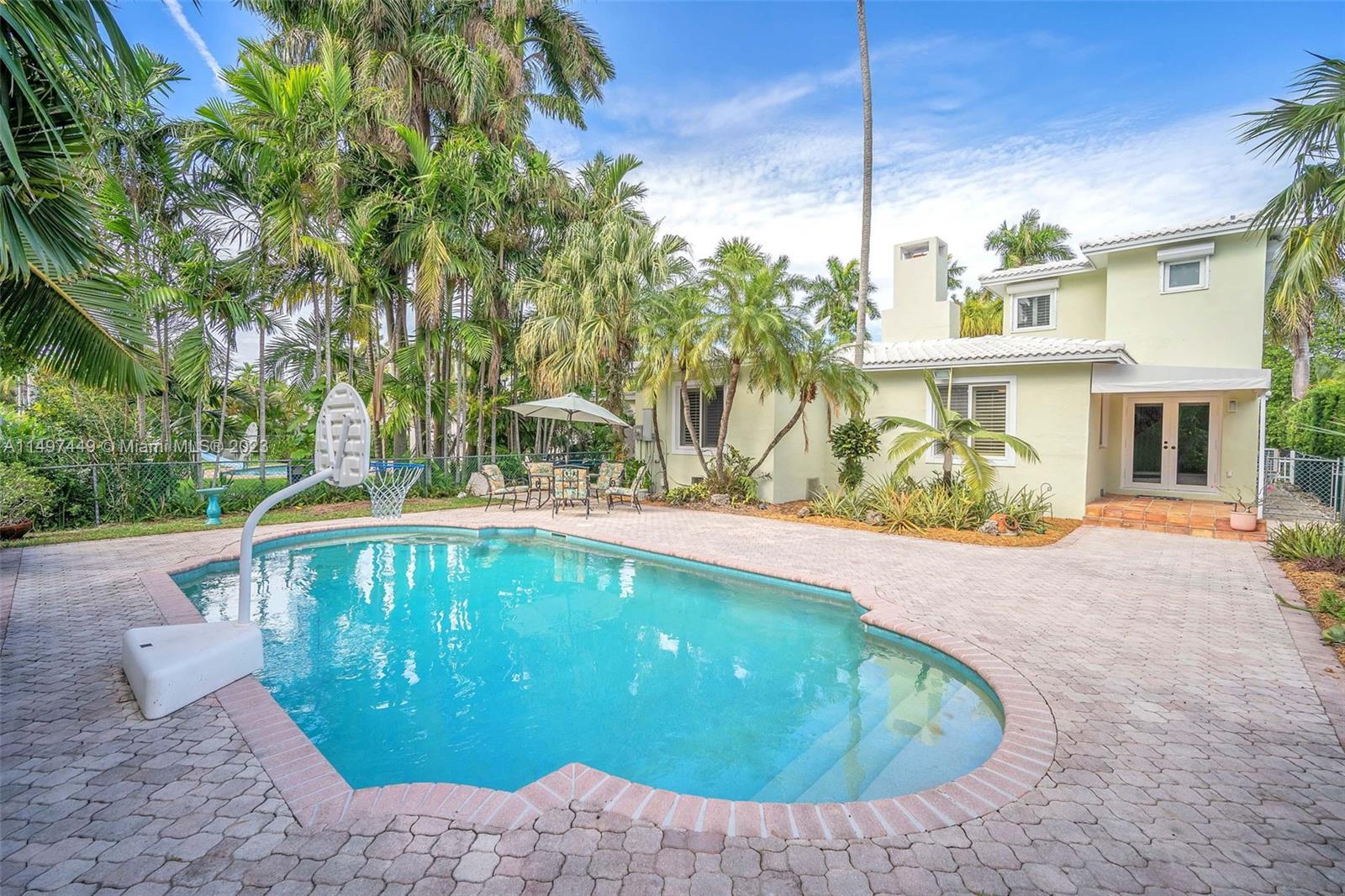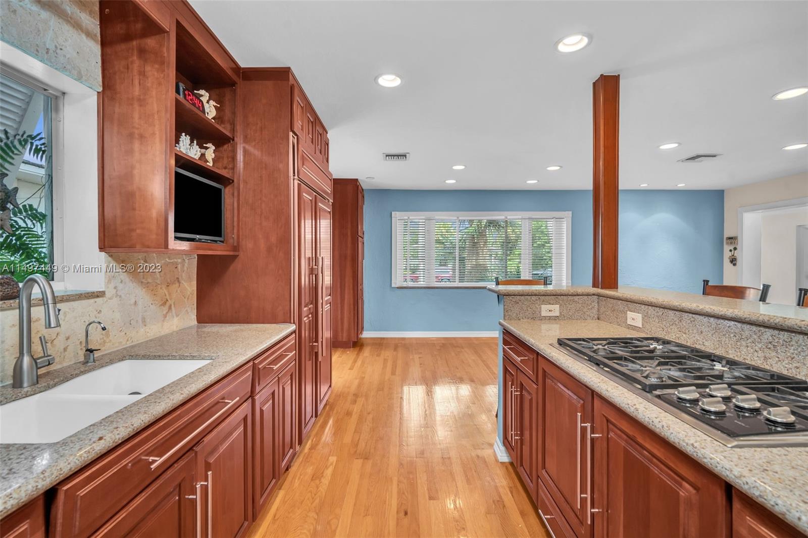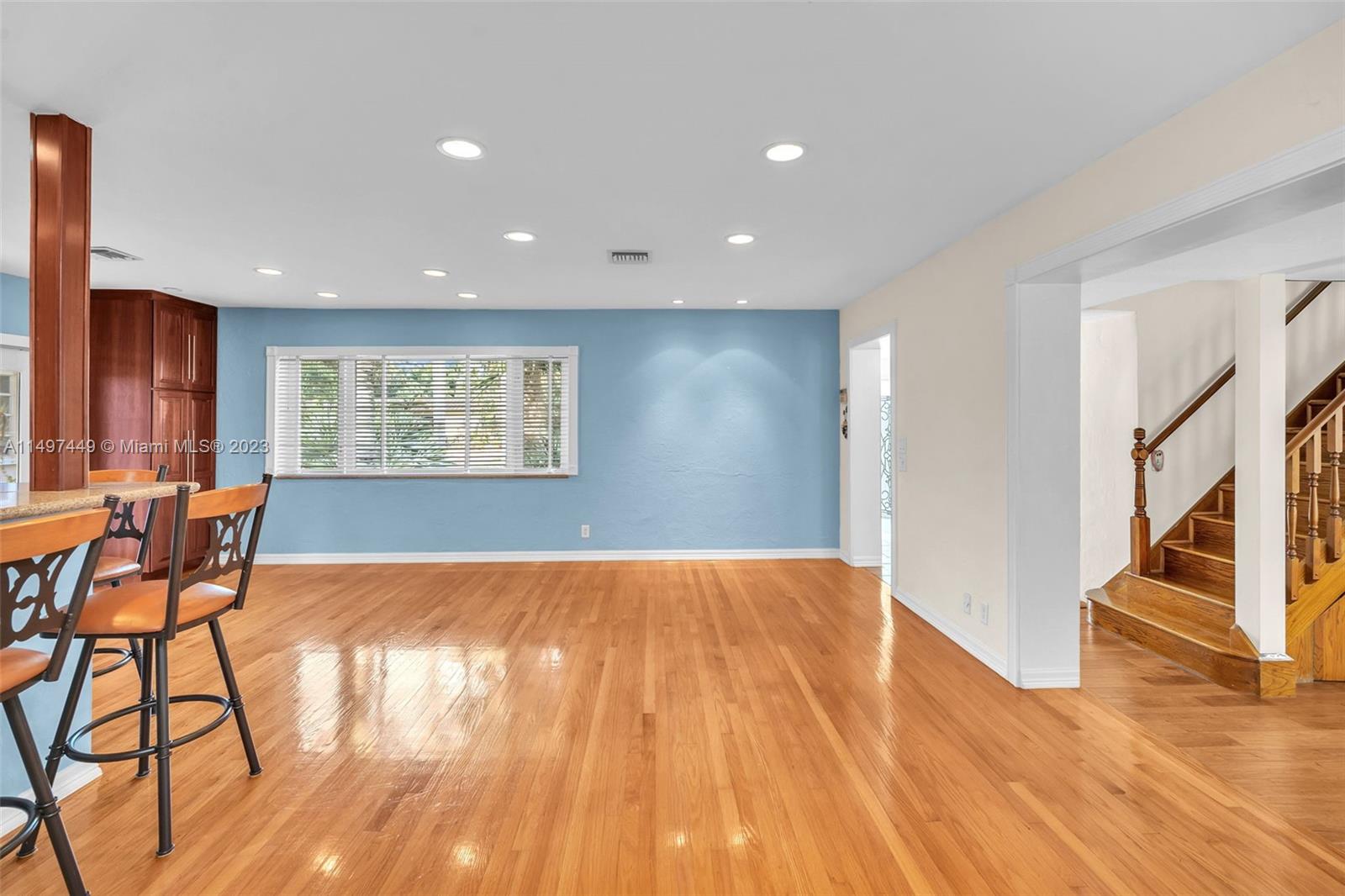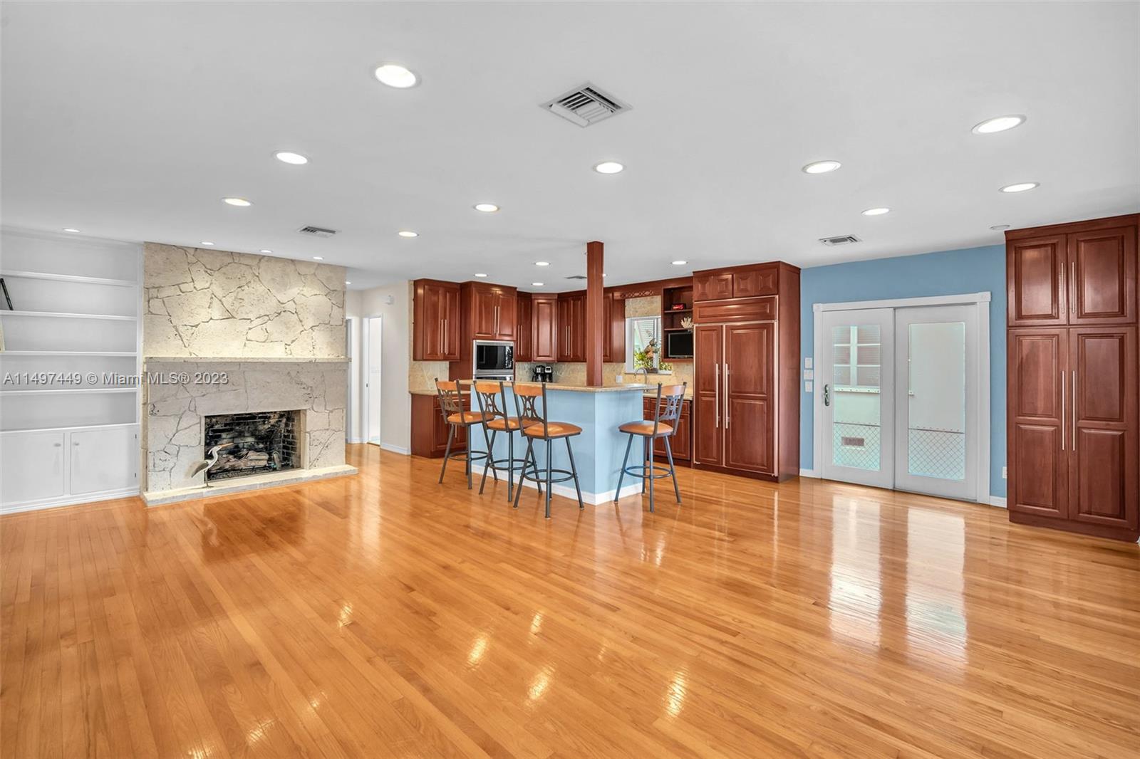 A truly remarkable residence in the heart of Hollywood Lakes. This two-story pool home, with 3 beds, 2 baths, and a 1-car garage, sits on a deep lot, extending to the prestigious north South Lake Drive. Has a unique open floor plan with red oak floors leading you to an open kitchen. Kitchen features are endless with an open island, granite countertops, a Subzero fridge, a Wolf stove top, a wall oven with a built-in microwave, and a warming door. This home offers flexible living space with 2 beds/1 bath downstairs and 1/1 upstairs. A gas fireplace with coral tile adds charm to the living room. The A/C was replaced in 2018 and the home has a connection for a portable generator that will be included.200 amp electrical with a surge protector, and shutter panels for all windows enhance comfort.