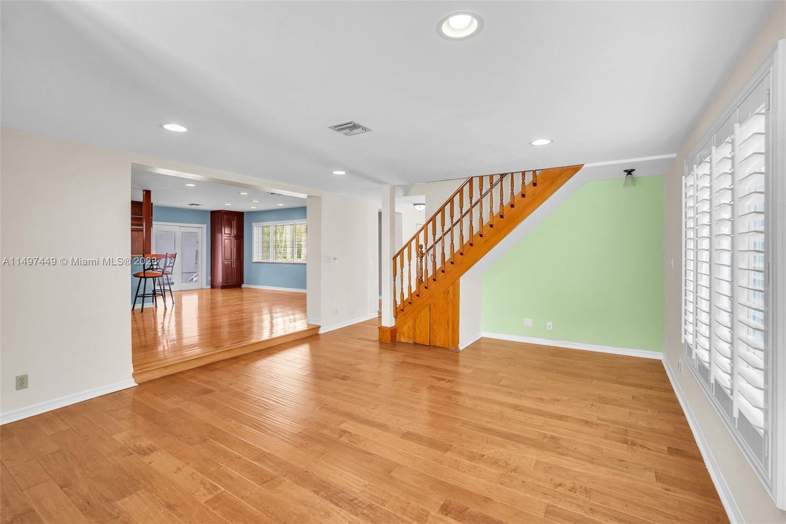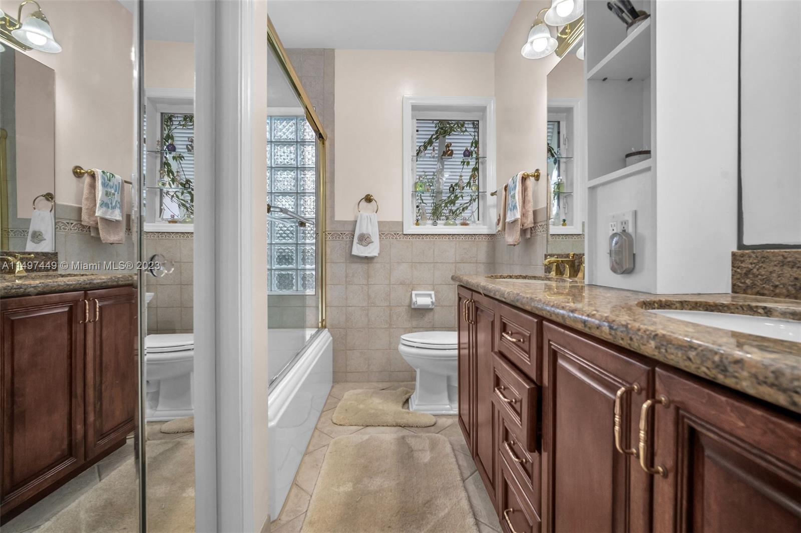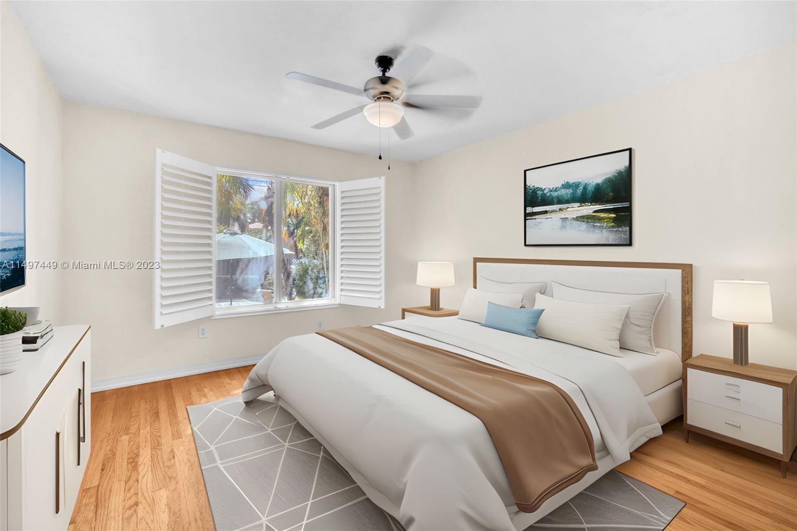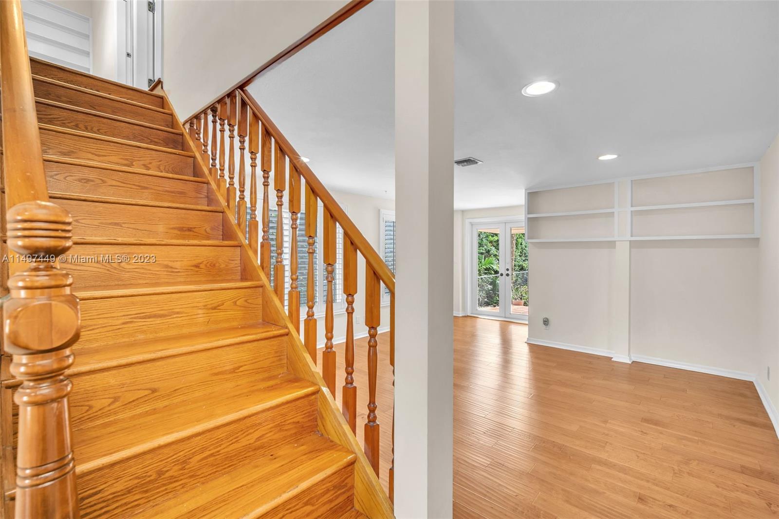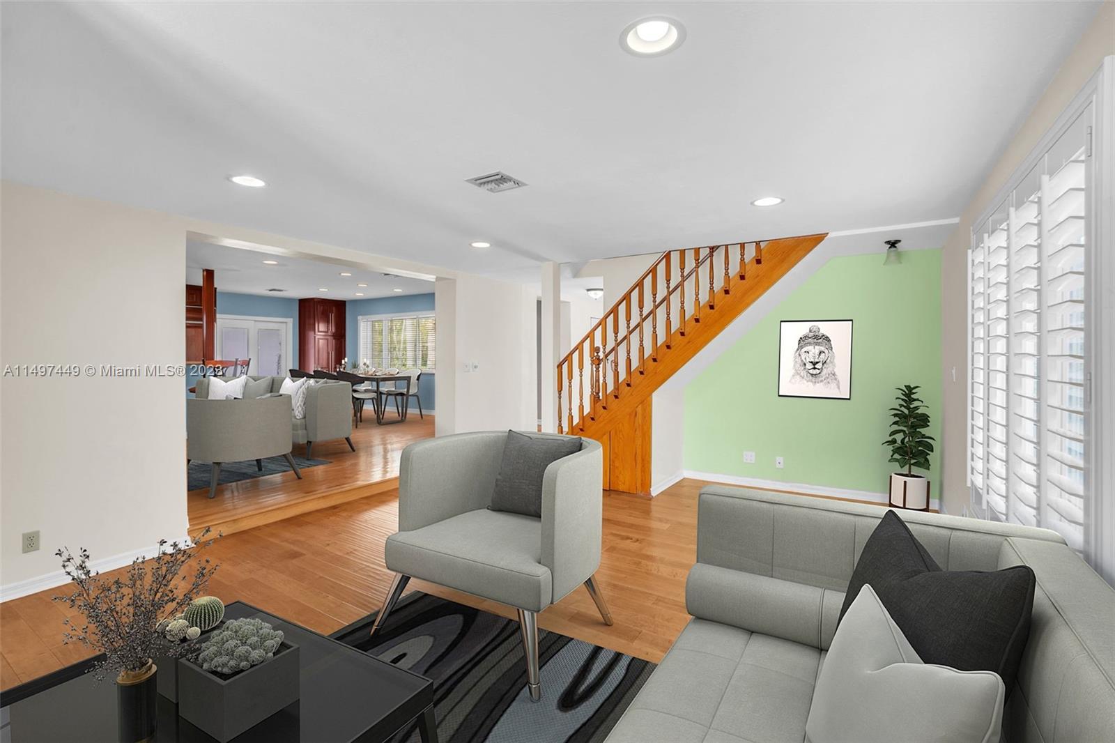A truly remarkable residence in the heart of Hollywood Lakes. This two-story pool home, with 3 beds, 2 baths, and a 1-car garage, sits on a deep lot, extending to the prestigious north South Lake Drive. Has a unique open floor plan with red oak floors leading you to an open kitchen. Kitchen features are endless with an open island, granite countertops, a Subzero fridge, a Wolf stove top, a wall oven with a built-in microwave, and a warming door. This home offers flexible living space with 2 beds/1 bath downstairs and 1/1 upstairs. A gas fireplace with coral tile adds charm to the living room. The A/C was replaced in 2018 and the home has a connection for a portable generator that will be included.200 amp electrical with a surge protector, and shutter panels for all windows enhance comfort.