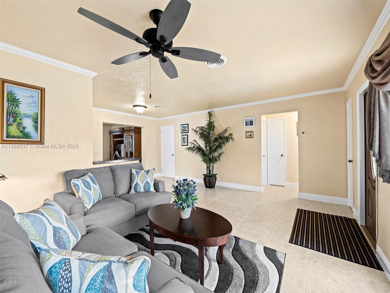 This meticulously maintained residence offers 4 BR, 2 BA, and a spacious split floor plan that is perfect for comfortable living and entertaining. This home is equipped with a 2021 roof, partial impact and accordion shutters and newer appliances! The heart of the home is the expansive living area, where you can relax after a long day. The kitchen is a chef's delight, boasting modern appliances and ample storage space. Step outside to discover the large open backyard, complete with a screened-in covered patio. The outdoor space provides endless possibilities for creating your own oasis! Proximate to I-95 and the turnpike, the beach, airport, Hard Rock, and easy access to Miami and Fort Lauderdale!