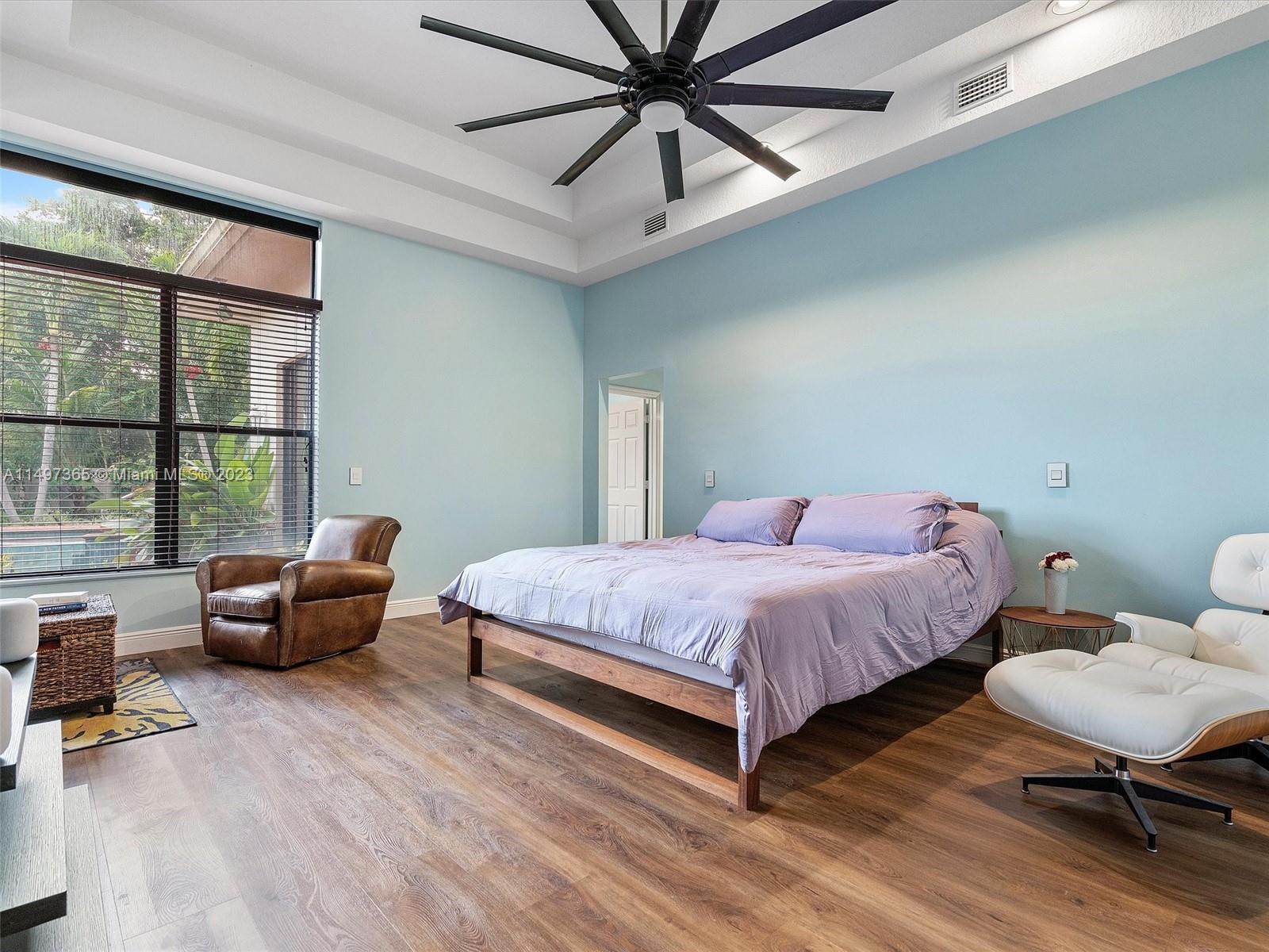 Stunning single-story home with no HOA, 4 bedrooms plus office and 3.5 bathrooms with pool. Located in Springs Pointe. Home features open gourmet kitchen with wood cabinets & granite counters, wood floors throughout, primary bedroom with office and large built-in closet, and renovated bathrooms, including a cabana bathroom. One bedroom with en-suite bathroom. Open floor plan, vaulted ceilings, spacious living, dining and family room surrounded by windows, allowing lots of natural light in. Wet bar perfect for entertaining. Oversize fenced lot, elevate the allure of this home, with convenient screened porch, large pool and plenty space, perfect for enjoying the weather or hosting gatherings with guests. Top rated school district, close distance to parks, shopping, dinning and major highways