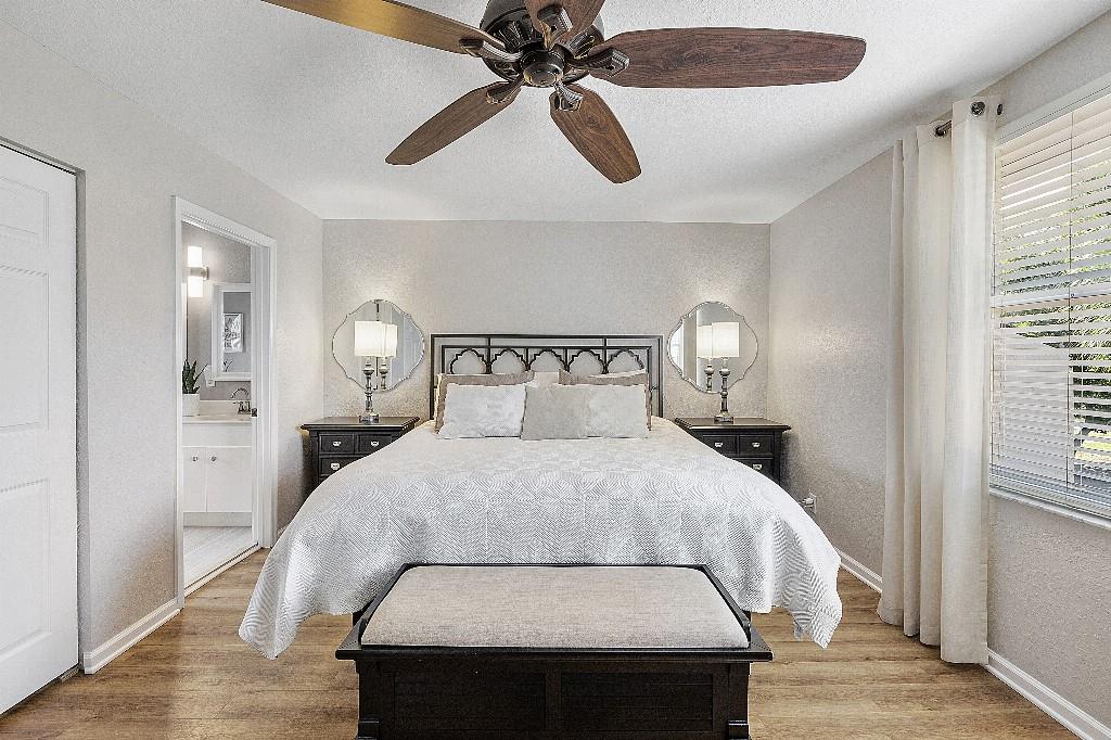 Peaceful oasis on the water, live in nature, in this lovingly maintained Home! 1800 sq ft inside, 2 car garage, tons of storage, updated features through out, new Paint in/out, new roof, driveway/walkway, Gated video entry. screened in patio, on canal. Cabana style/cooled/heated salt water community pool with baths, Pergola newly renovated. HOA Only $265/mo., new roof, paint, roads, garbage, & landscaping.