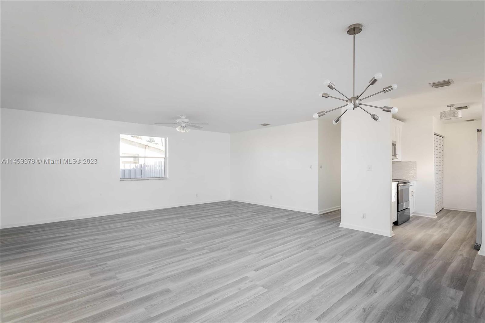 Beautiful home built in 2002 and renovated in 2020. The home features an open living/dining area -- kitchen has quartz countertops, glass backsplash, stainless steel appliances - grey/white vinyl flooring throughout the home. Bathrooms are also remodeled with a modern appeal. Laundry room is strategically placed in the kitchen area for added convenience. One primary bedroom with a bathroom. Other features include a circular driveway, a great yard for family gathering, and a shed. No HOA. Conveniently located near schools, shopping centers, major highways, and the Hard Rock Hotel. ** Photos used are from the time of the seller's initial home purchase.** Bring your offers!