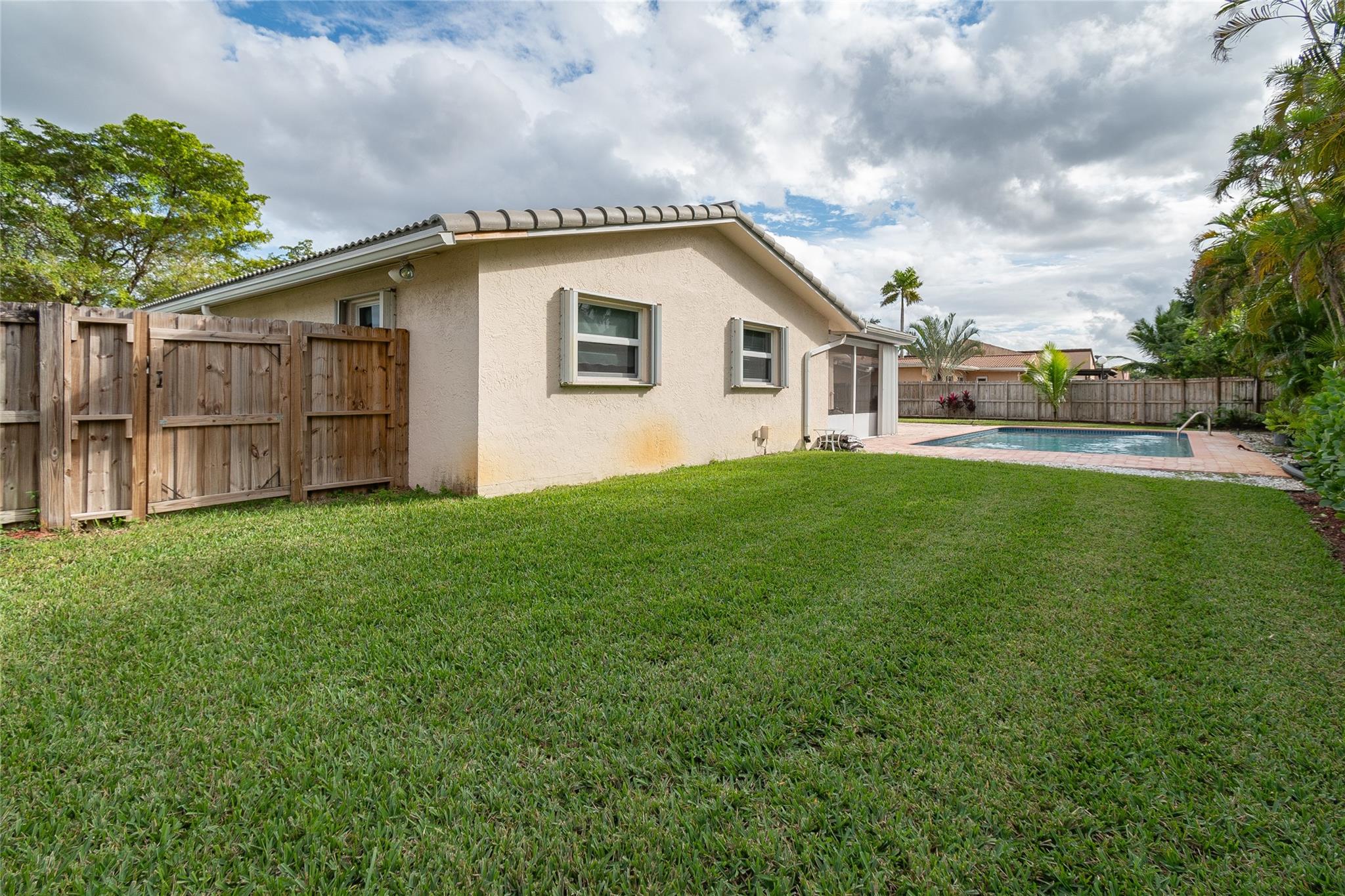 This home is located in the highly desirable Coral Springs Country Club Community. Tile barrel roof installed in 2023 (10 year warranty), corner lot, impact windows and doors throughout plus a Generac propane tank generator. Large lot with backyard pool area fenced in and screened patio. Two garage doors on side of Home & Circular driveway in Front of Home. Split bedroom layout with lots of extra room. Laundry Room with newer washer dryer & water heater. French doors as well as Crown Molding. No Membership or HOA. Easy access to major roads & shopping. Check out the 3D Matterport virtual tour!