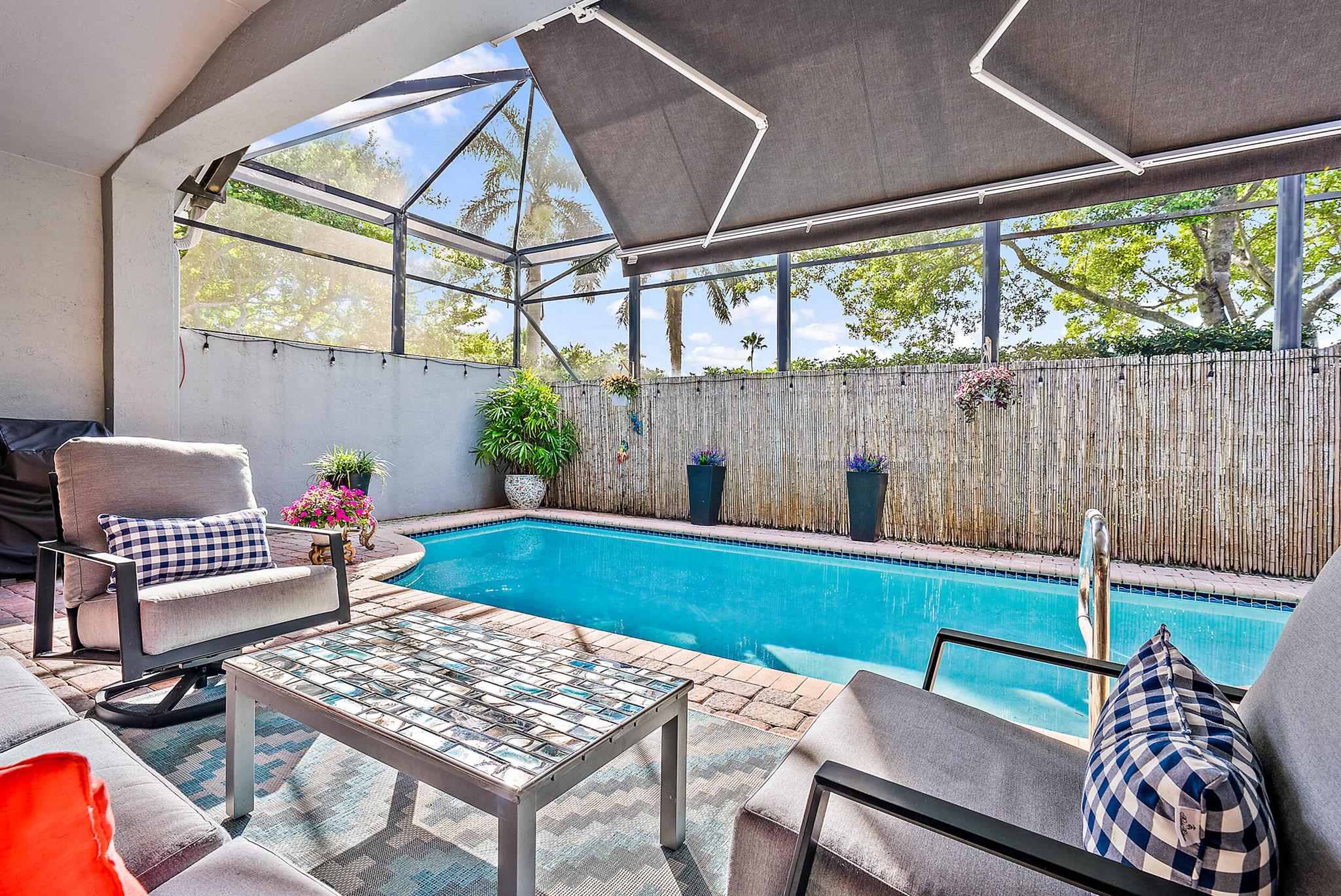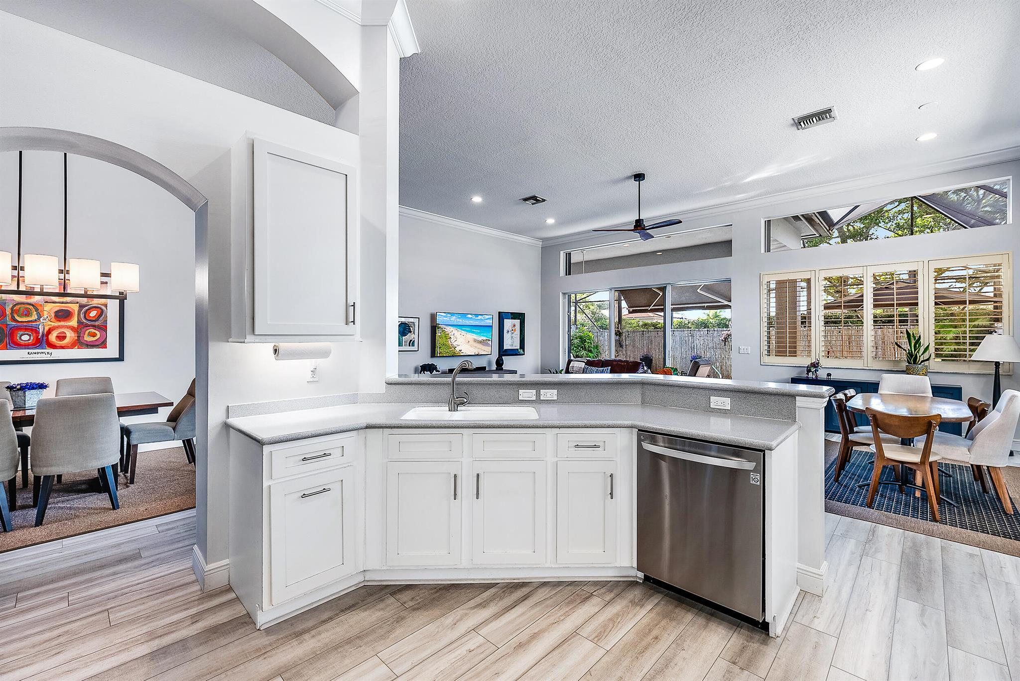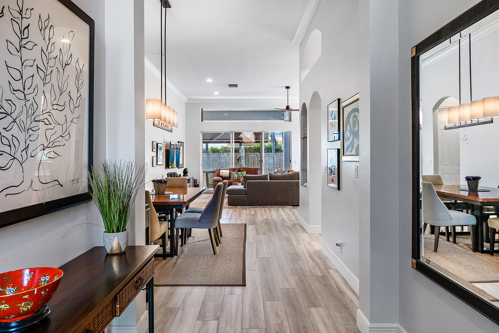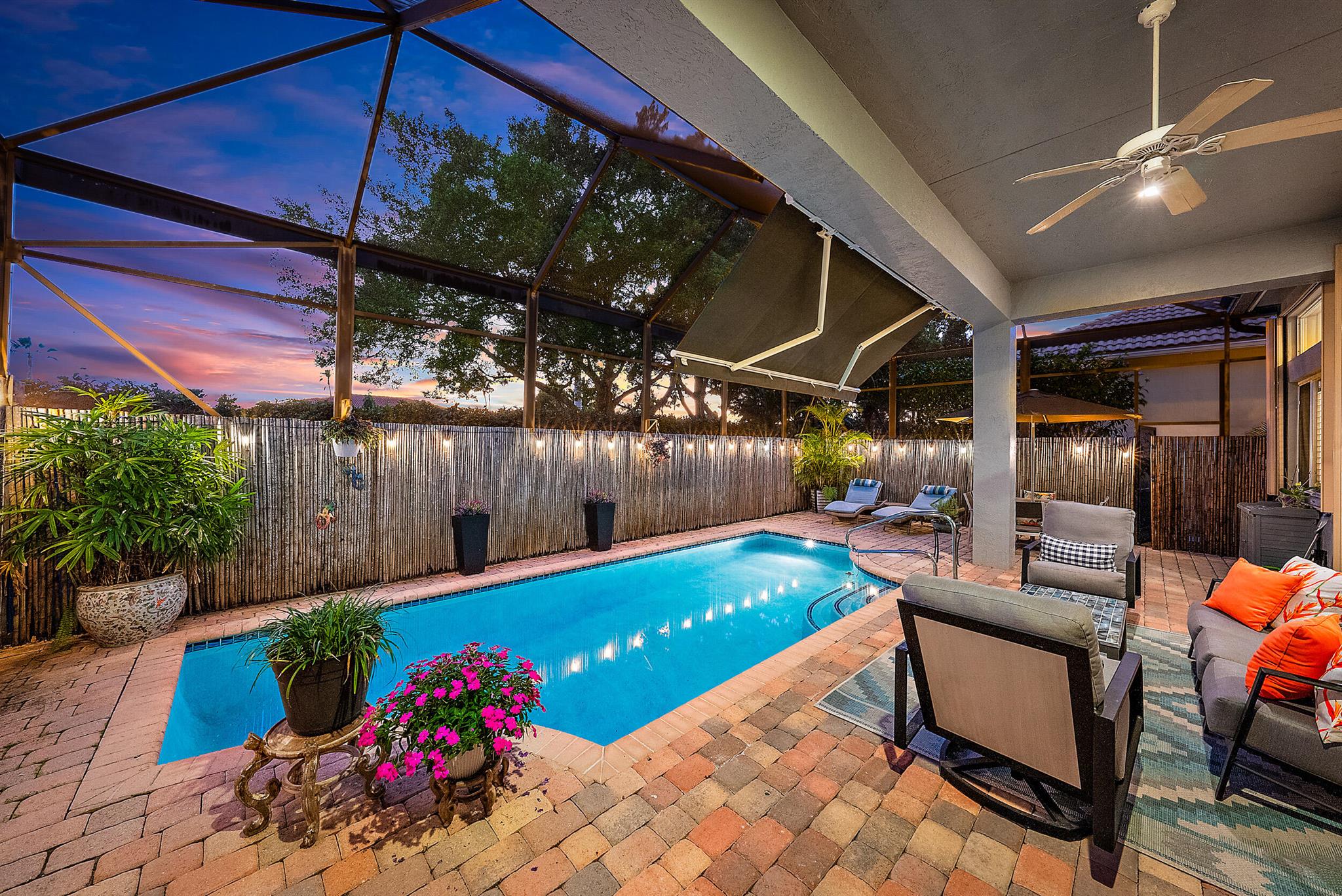 Featuring a BRAND NEW ROOF & GUTTERS (2023), and beautiful renovations throughout, this great room, 3BR/2BA home boasts soaring ceilings, an open floor plan, and a PRIVATE, HEATED, pool. Centrally located within Ibis, and move-in perfect, this home's design gives the feeling of spaciousness, and complete privacy. Enjoy an ideal Southern Exposure in the back of the home, with sunlight shining on the private and fully screened pool throughout the day. The NEW, sleek, contemporary flat tile roof was installed in late 2023, along with NEW gutters. In 2022, NEW LUXURY VINYL flooring was installed throughout. Both bathrooms feature renovations and an updated transitional look.