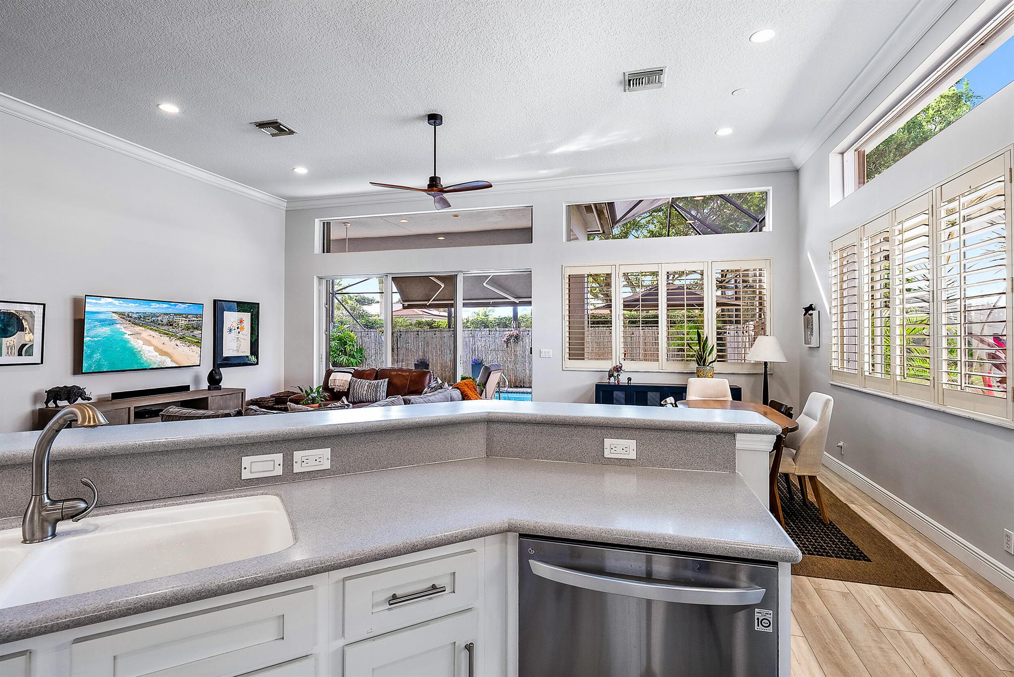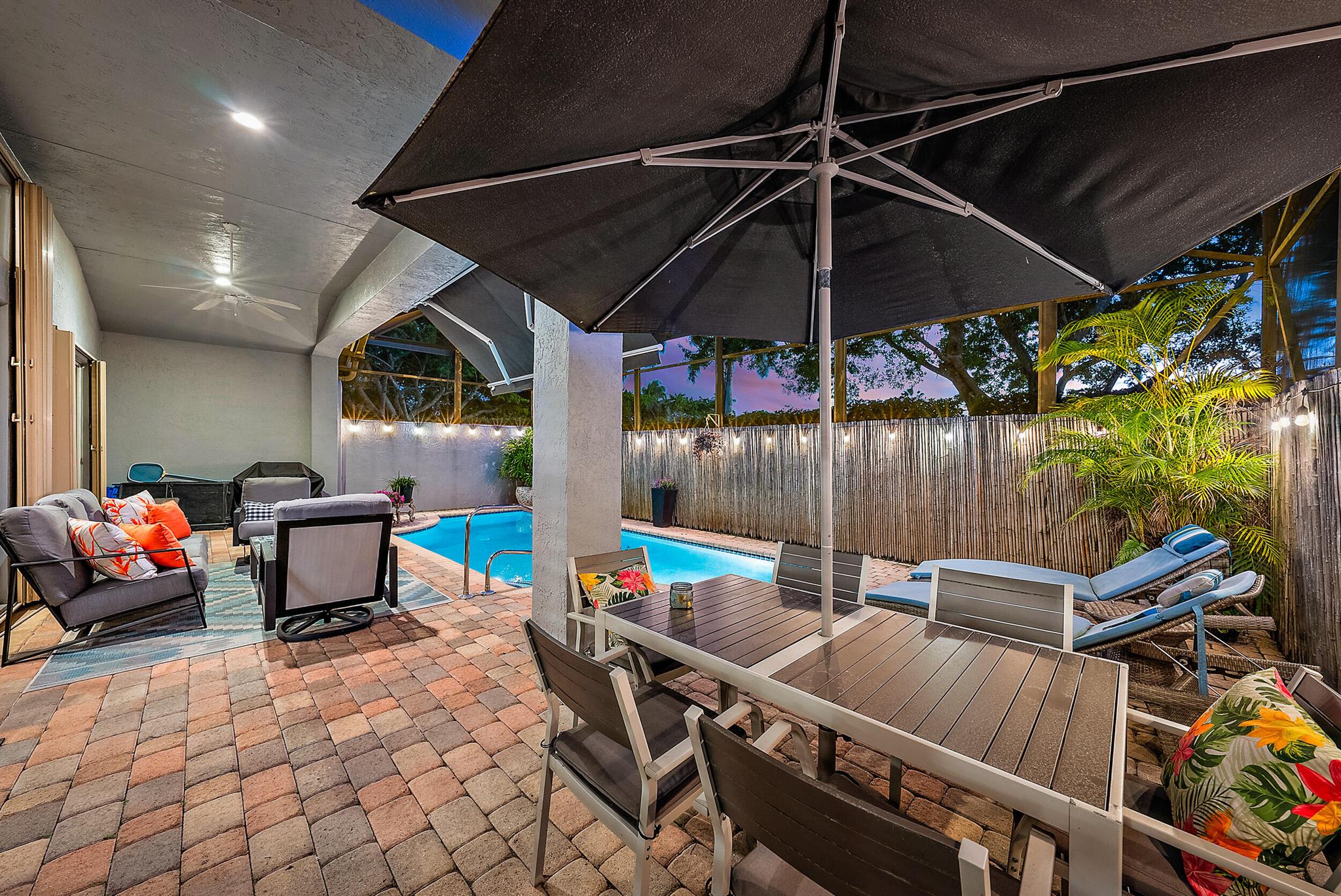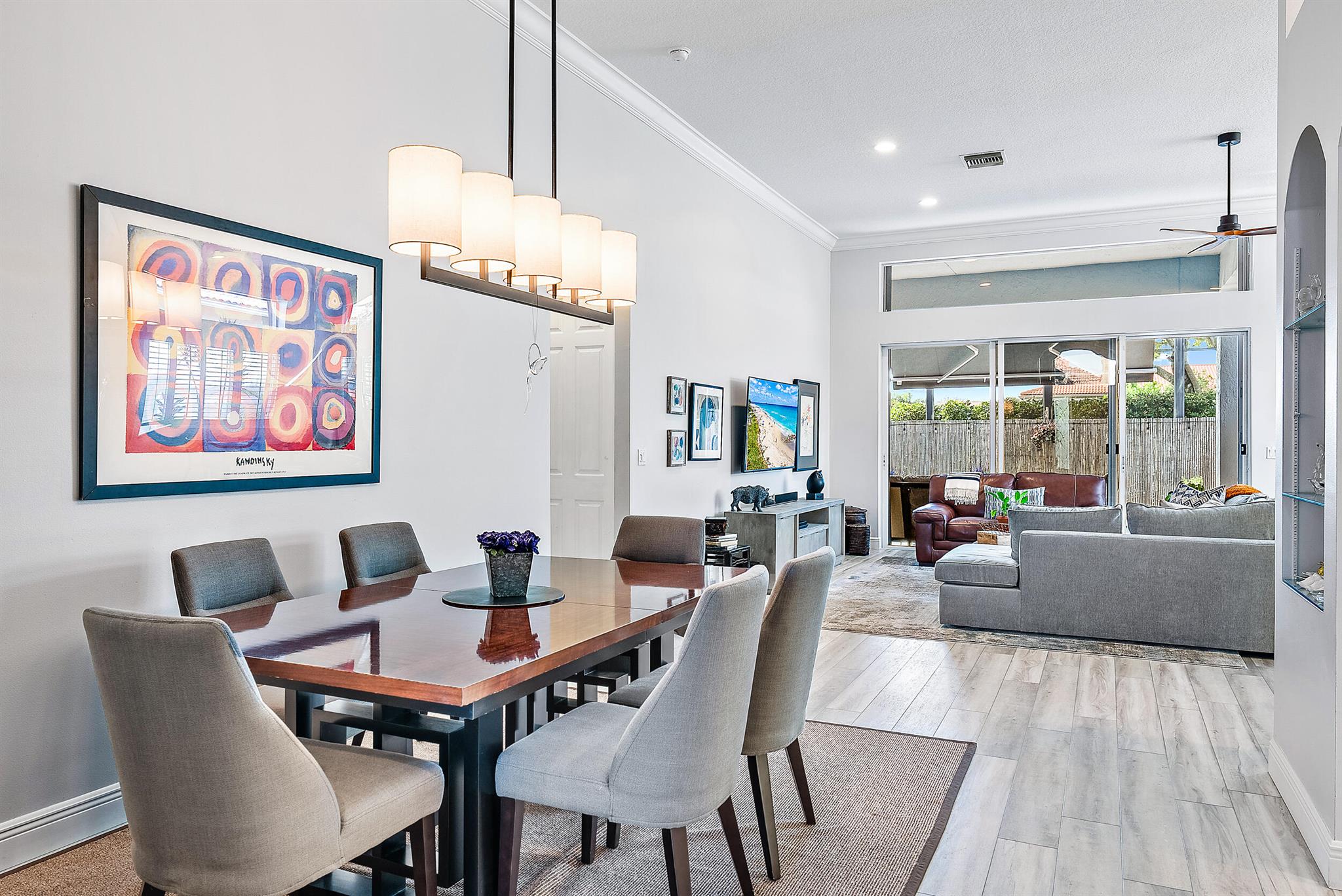 Featuring a BRAND NEW ROOF & GUTTERS (2023), and beautiful renovations throughout, this great room, 3BR/2BA home boasts soaring ceilings, an open floor plan, and a PRIVATE, HEATED, pool. Centrally located within Ibis, and move-in perfect, this home's design gives the feeling of spaciousness, and complete privacy. Enjoy an ideal Southern Exposure in the back of the home, with sunlight shining on the private and fully screened pool throughout the day. The NEW, sleek, contemporary flat tile roof was installed in late 2023, along with NEW gutters. In 2022, NEW LUXURY VINYL flooring was installed throughout. Both bathrooms feature renovations and an updated transitional look.