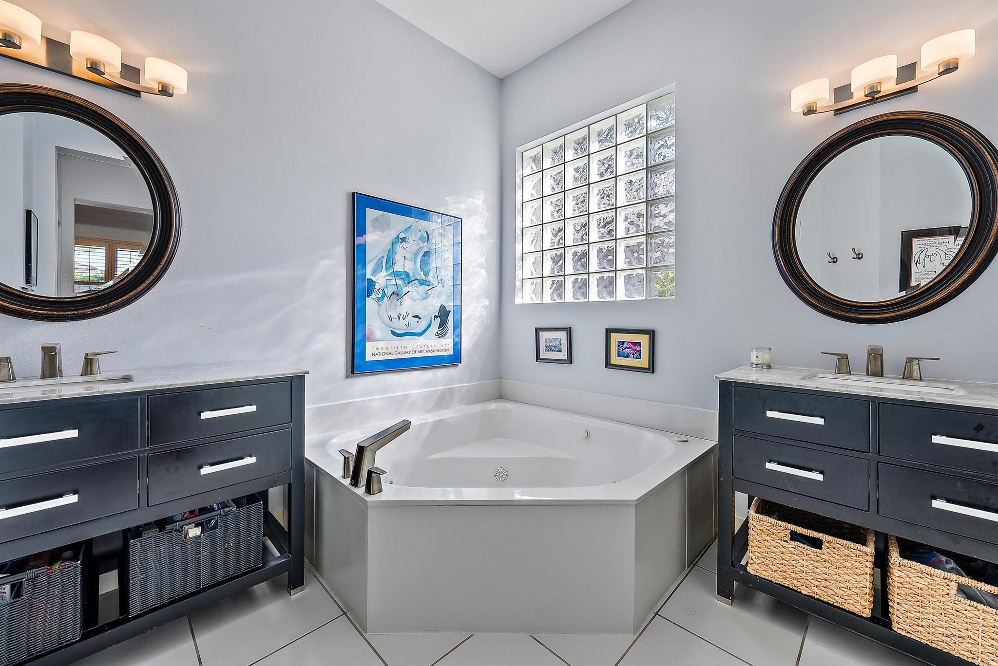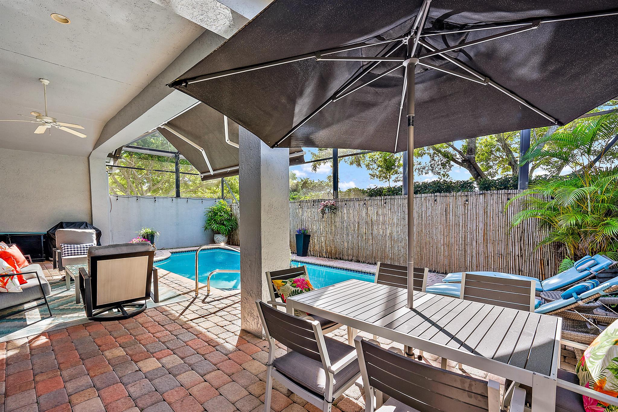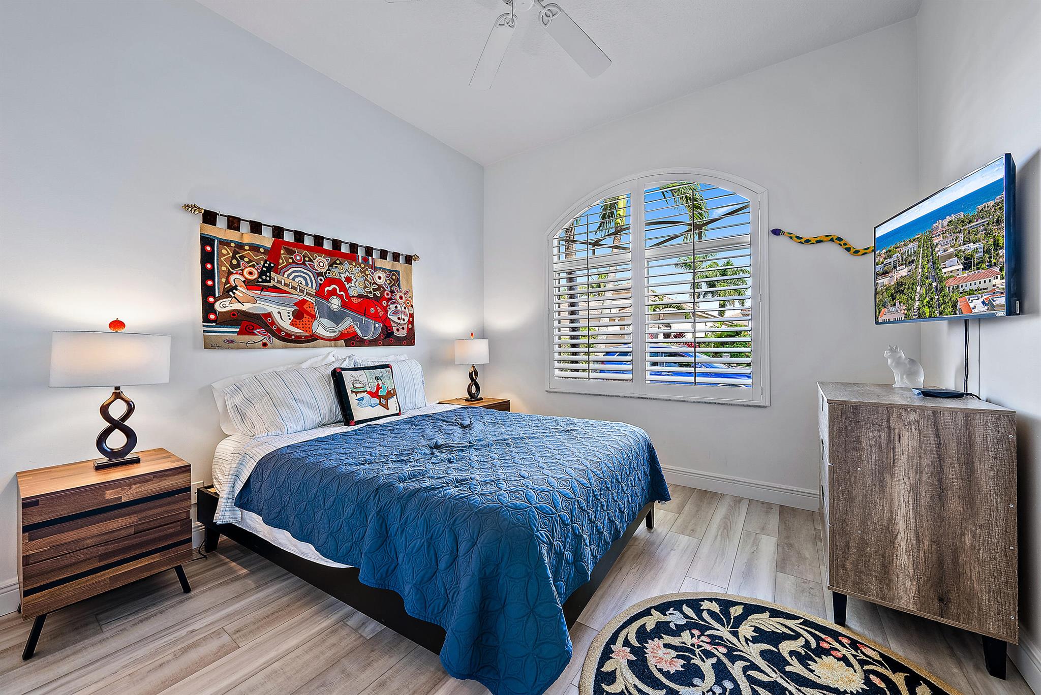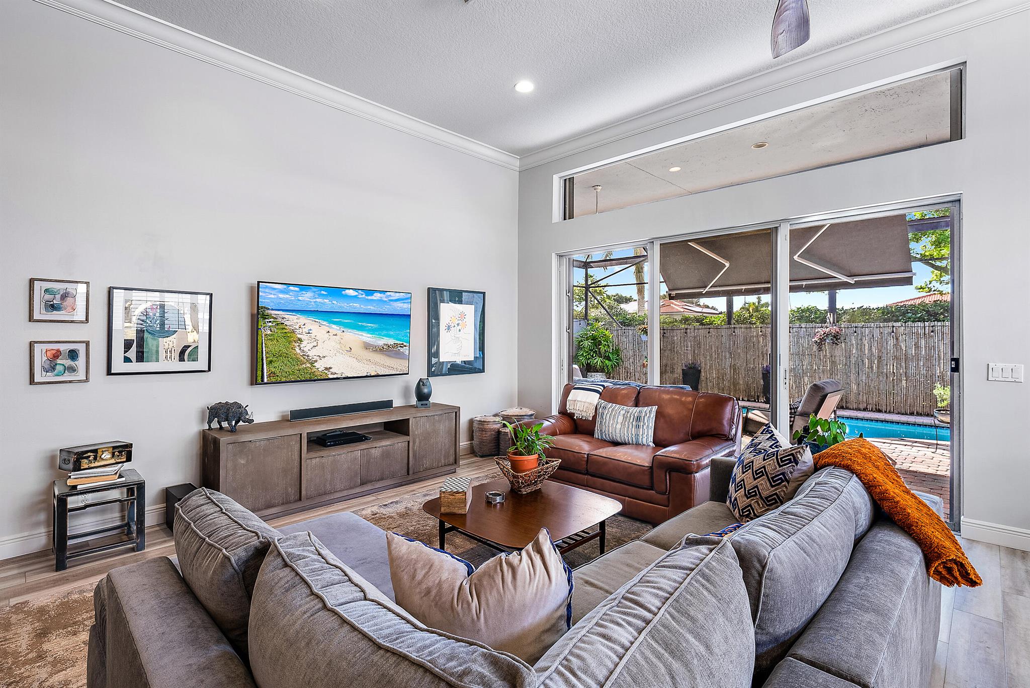 Featuring a BRAND NEW ROOF & GUTTERS (2023), and beautiful renovations throughout, this great room, 3BR/2BA home boasts soaring ceilings, an open floor plan, and a PRIVATE, HEATED, pool. Centrally located within Ibis, and move-in perfect, this home's design gives the feeling of spaciousness, and complete privacy. Enjoy an ideal Southern Exposure in the back of the home, with sunlight shining on the private and fully screened pool throughout the day. The NEW, sleek, contemporary flat tile roof was installed in late 2023, along with NEW gutters. In 2022, NEW LUXURY VINYL flooring was installed throughout. Both bathrooms feature renovations and an updated transitional look.