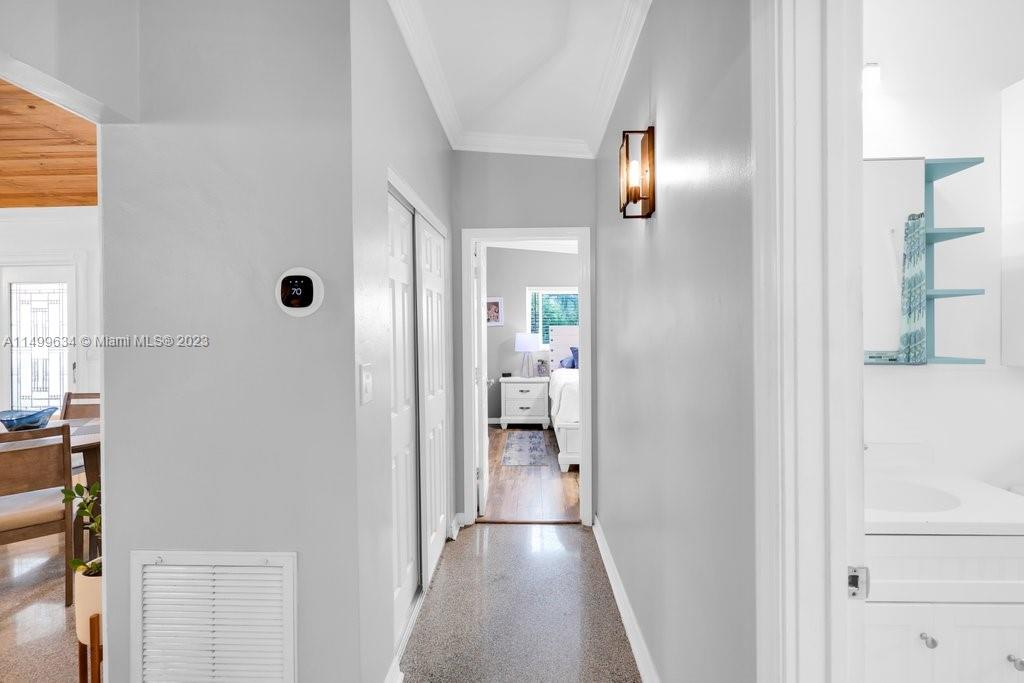 Come enjoy this great home. Contemporary yet retro. Open-concept kitchen ideal for gatherings. Beautiful terrazzo floors in the main part of the house and the lovely cedar wood ceilings in the living room. This is a 2/2 with a huge Florida room currently being used as a second living room,. This home is bright and open. The backyard is perfect for dogs and kids with its fenced yard. A/C 2019, Impact Window throughout the house (except for the Florida Room). Close to shopping, beach and I-95.0. NO HOA